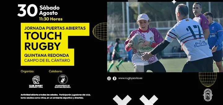 El Ingenieros de Soria Club de Rugby celebrará el próximo sábado 31 de agosto, a partir de las 11:30 horas, una jornada de puertas abiertas de Touch Rugby y escuela en el Campo Municipal El Cántaro de Quintana Redonda.
