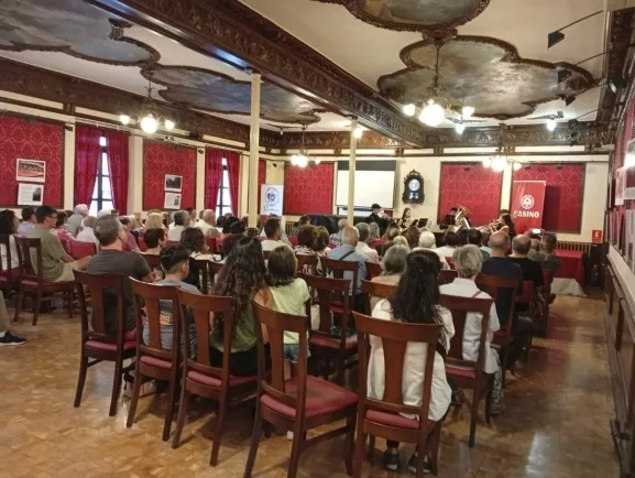 El emblemático salón Gerardo Diego del Círculo Amistad Numancia fue el marco elegido para este concierto. El espacio, conocido por acoger numerosos eventos culturales a lo largo del año, vio cómo sus butacas se ocupaban en su totalidad, demostrando el gran interés de los sorianos por propuestas musicales de calidad como la que se presentaba.