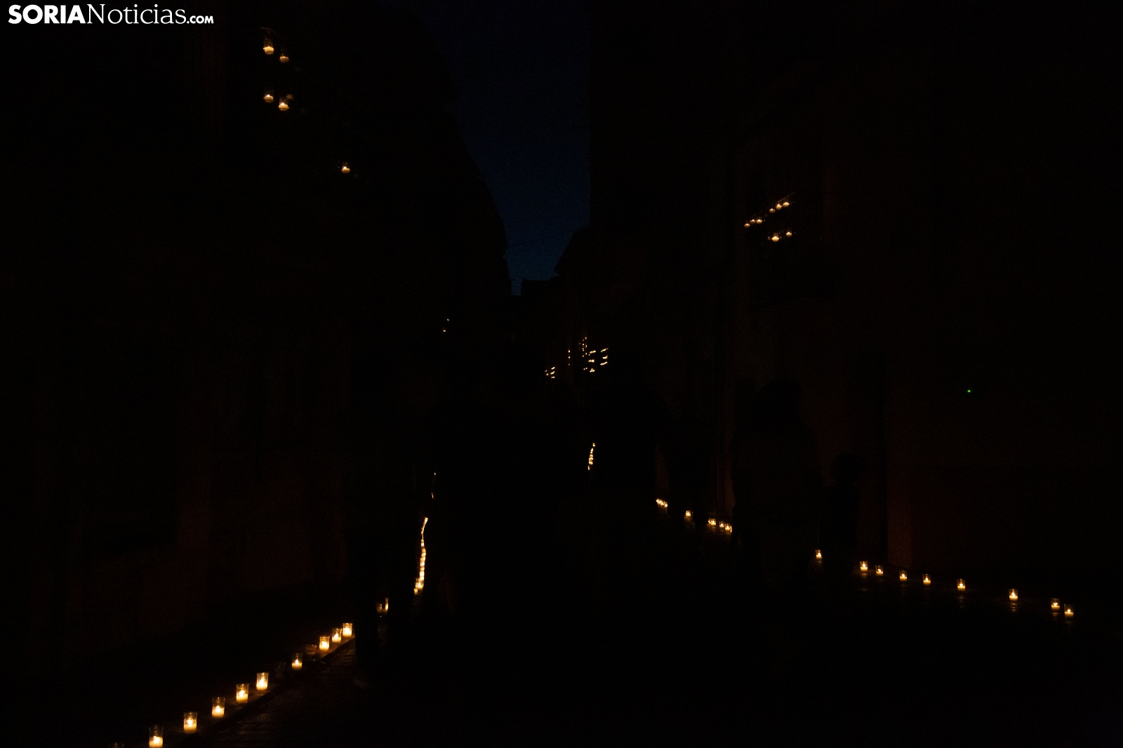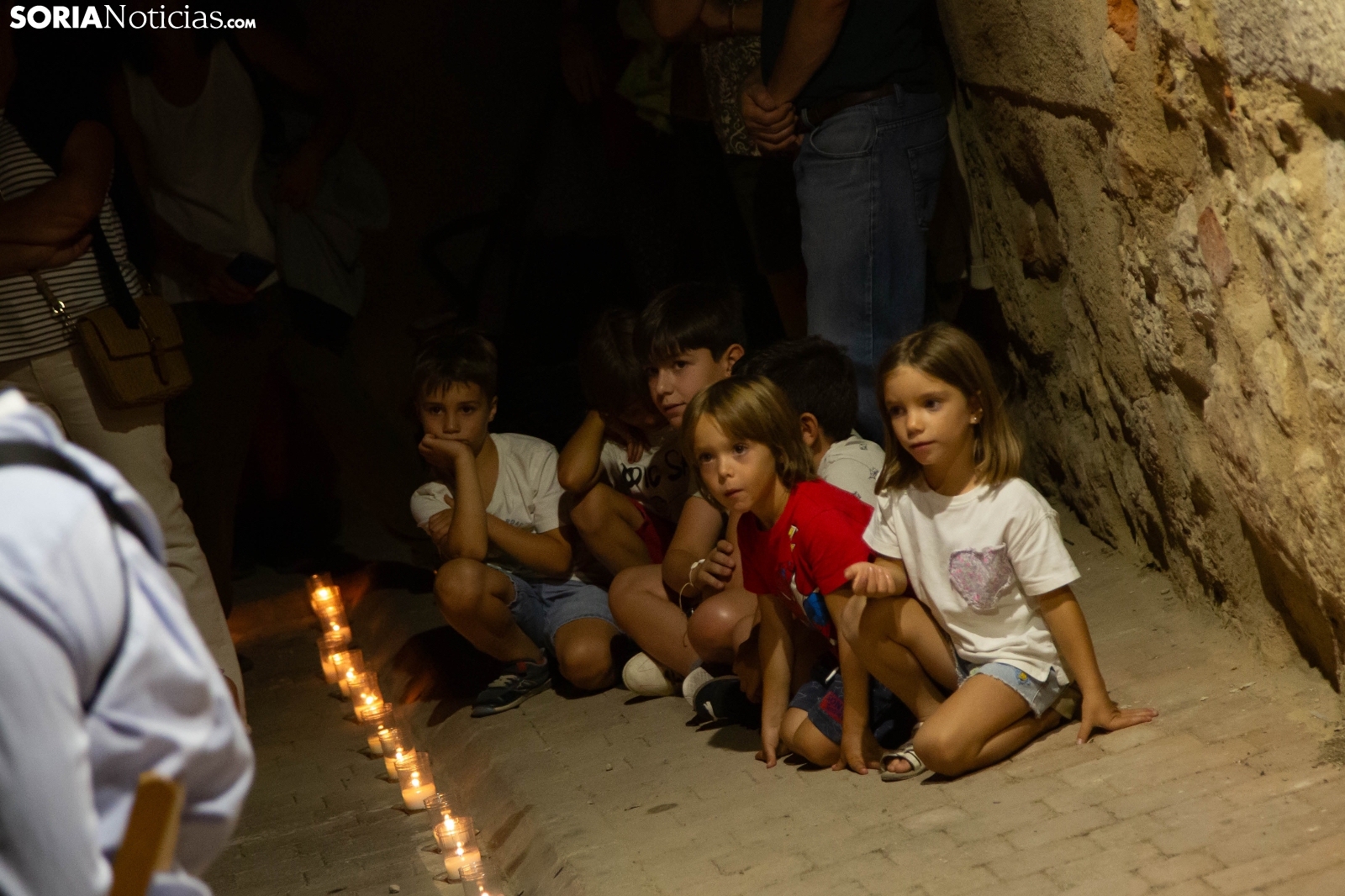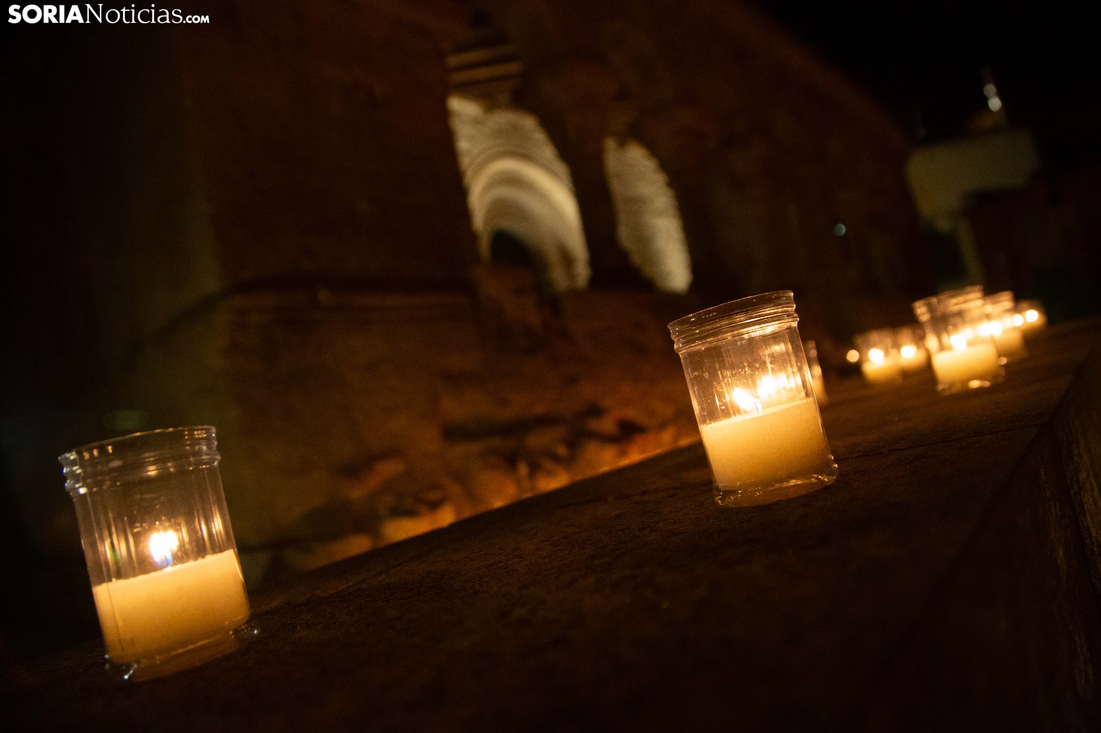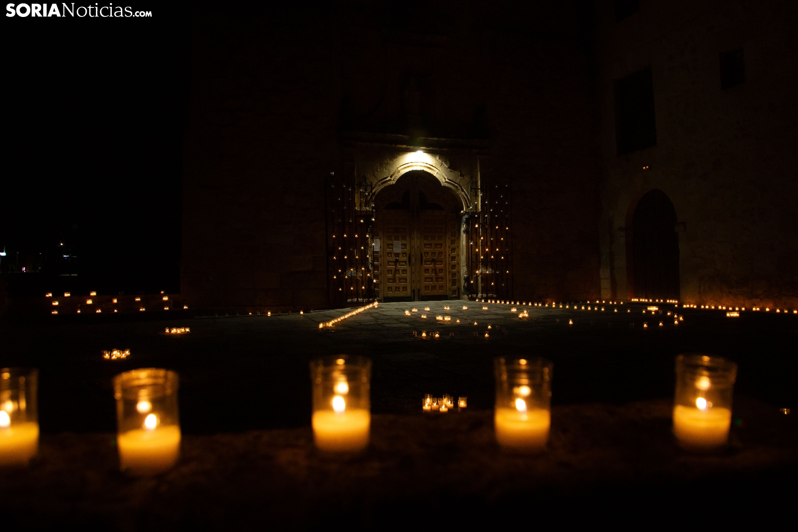 San Esteban de Gormaz ha vivido esta noche una de sus citas más especiales con la celebración de su tradicional Noche de Música y Velas, un evento que ha vuelto a demostrar su gran poder de convocatoria. Miles de candelas han creado una atmósfera única, iluminando con su luz tenue y cálida el imponente patrimonio monumental de la villa y generando un ambiente íntimo que ha cautivado a los asistentes. El recorrido, que ha guiado a un numeroso público por enclaves tan emblemáticos como la galería porticada de San Miguel o la escalinata de Santa María del Rivero, se ha convertido en un auditorio al aire libre donde el talento de los jóvenes músicos de la Joven Orquesta Sinfónica de Soria (JOSS) ha sido el gran protagonista. Las agrupaciones Dúo Undine, Triunvirato y Dúo Hamartía han demostrado una notable calidad interpretativa con repertorios cuidadosamente seleccionados que abarcaron desde la solemnidad del Barroco hasta la emoción de bandas sonoras contemporáneas, fusionándose a la perfección con la solemnidad de la piedra y el parpadeo de las llamas.