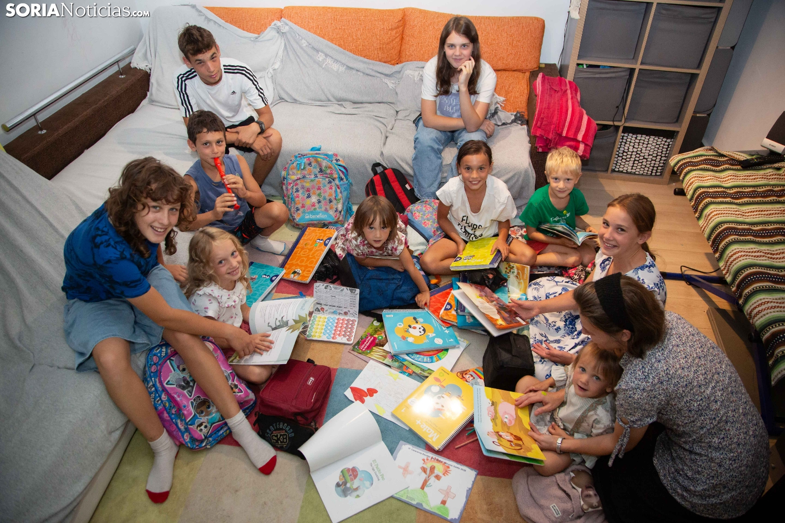 En total, son once hermanos, con edades de entre los 18 y los 2 años. Los mayores estudian en el IES Politécnico y los pequeños en el colegio de Almarza, que se encuentra a tan solo dos kilómetros de su casa. En ambos centros ya conocen bien a esta familia numerosa, que nunca pasa desapercibida.