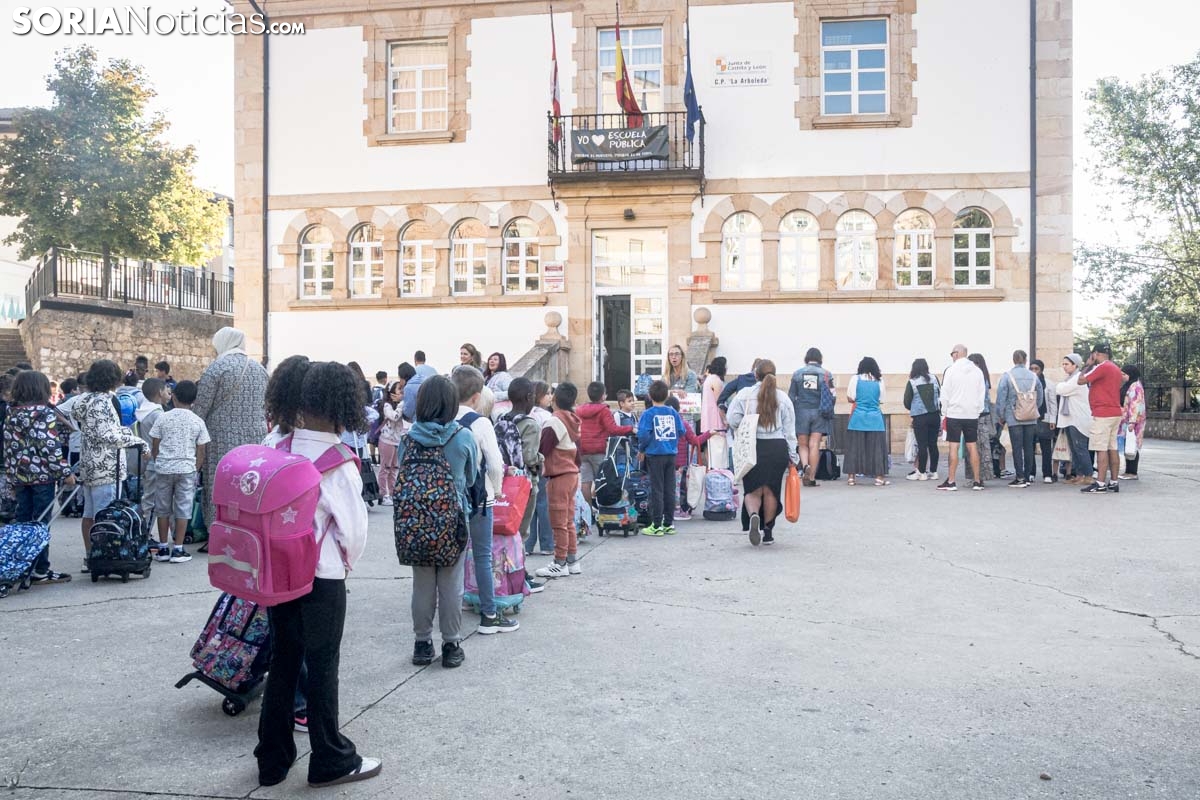 Unos 4.230 alumnos han regresado hoy a las aulas en los centros de Educación Infantil y Primaria de Soria capital. Aunque el inicio oficial del curso escolar está previsto para el lunes 8 de septiembre, en la capital soriana los pasillos ya se han llenado de voces, carreras y mucha emoción.