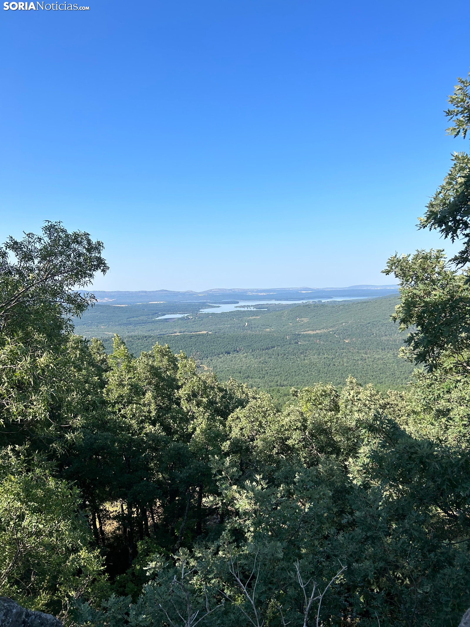 La ermita de Nuestra Señora del Castillo nos regala unas magníficas vistas al embalse y a la presa de la Cuerda del Pozo. Además, también visitamos el espectacular chorrón de El Royo.