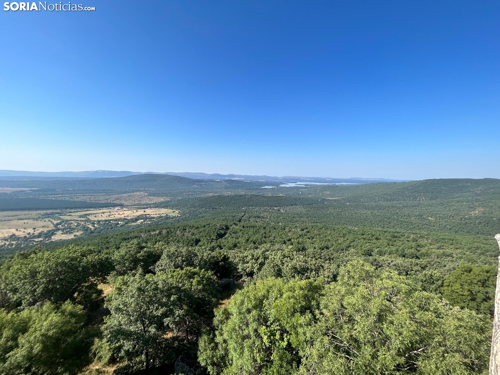 Según cuenta la leyenda, fue construido en pleno monte de la Roñañuela para que sus campanas fueran escuchadas por todos los pastores de la comarca. Precisamente, tenemos la posibilidad de subir a la espadaña -una especie de campanario- por una escalera de caracol que está abierta a todo el mundo. Desde las alturas, divisamos el Pico Frentes, El Royo, Langosto, Vilviestre de los Nabos o el embalse de la Cuerda del Pozo, entre otros lugares. Justo en la entrada a este campanario, también existe una especie de mirador a través del cual se puede ver a la perfección la presa del pantano.