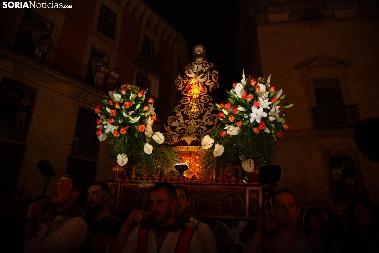 Almazán ha celebrado esta noche la procesión de la Bajada de Jesús de Nazareno, un momento que sus vecinos llevan esperando todo el año. Aunque en esta ocasión no ha contado con el espectáculo pirotécnico, por el riesgo de incendios, el acto ha sido muy emocionante, sacando las lágrimas de emoción a más de uno de los presentes.