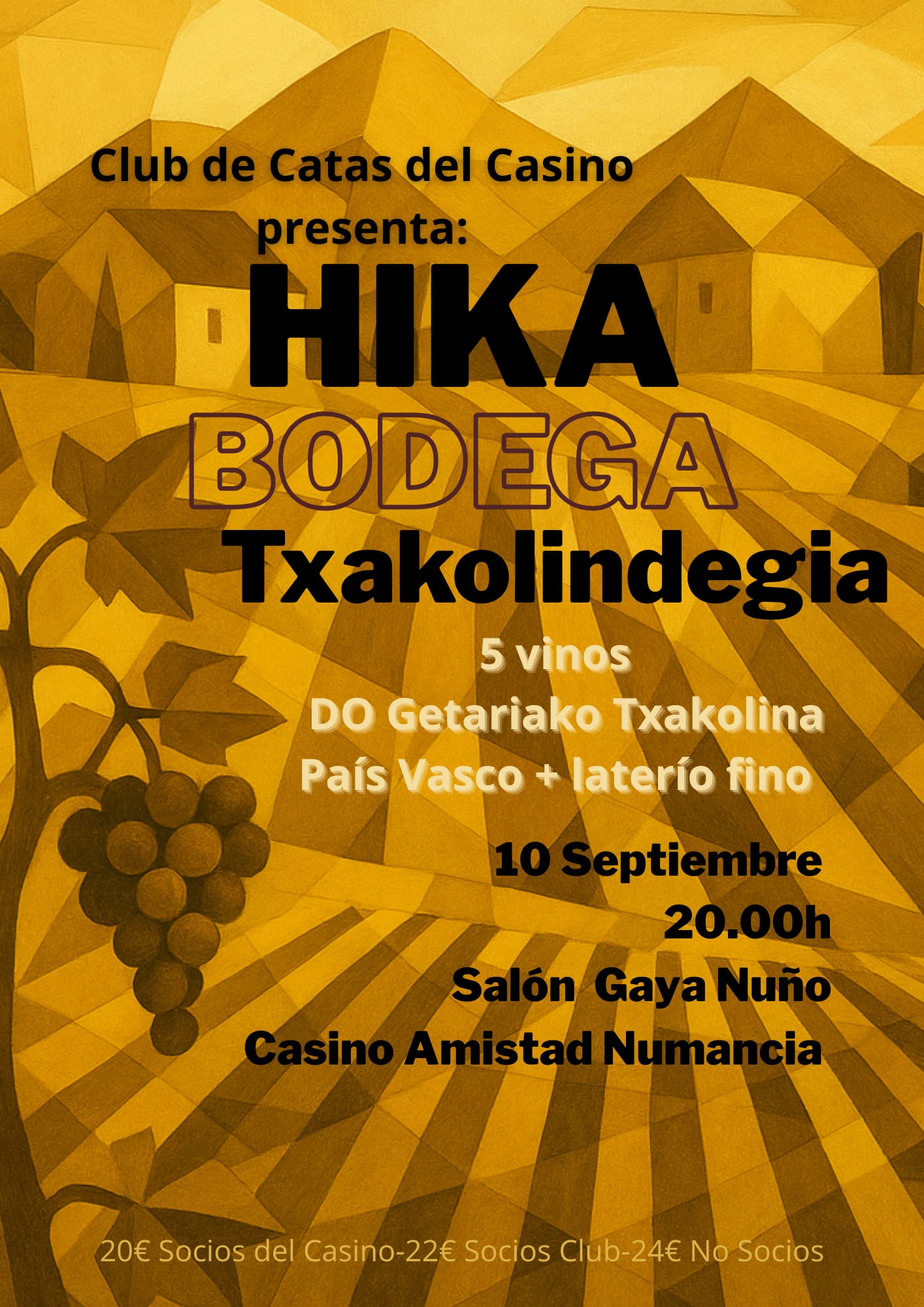 El Círculo Amistad Numancia prepara una nueva experiencia sensorial para los amantes del vino en Soria. Su consolidado Club de Catas organiza este miércoles una sesión dedicada a los txakolis de la bodega Hika, que se maridarán para la ocasión con una selección de conservas de alta calidad.