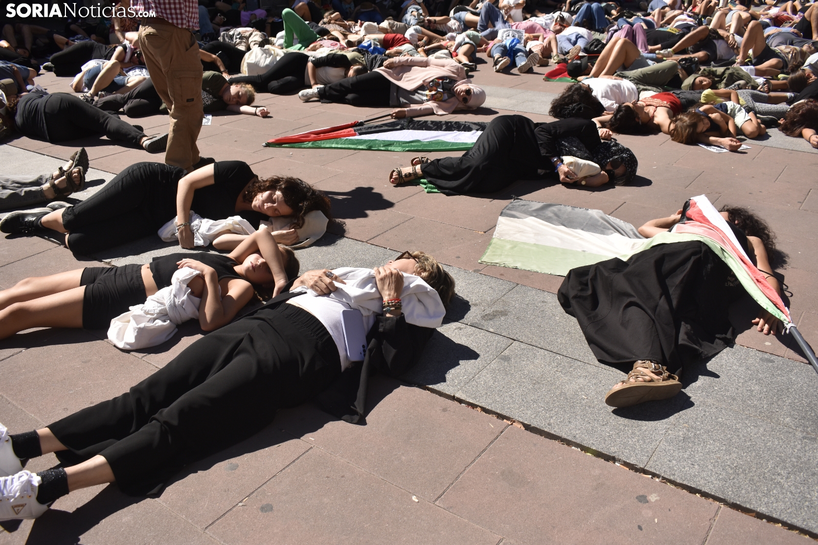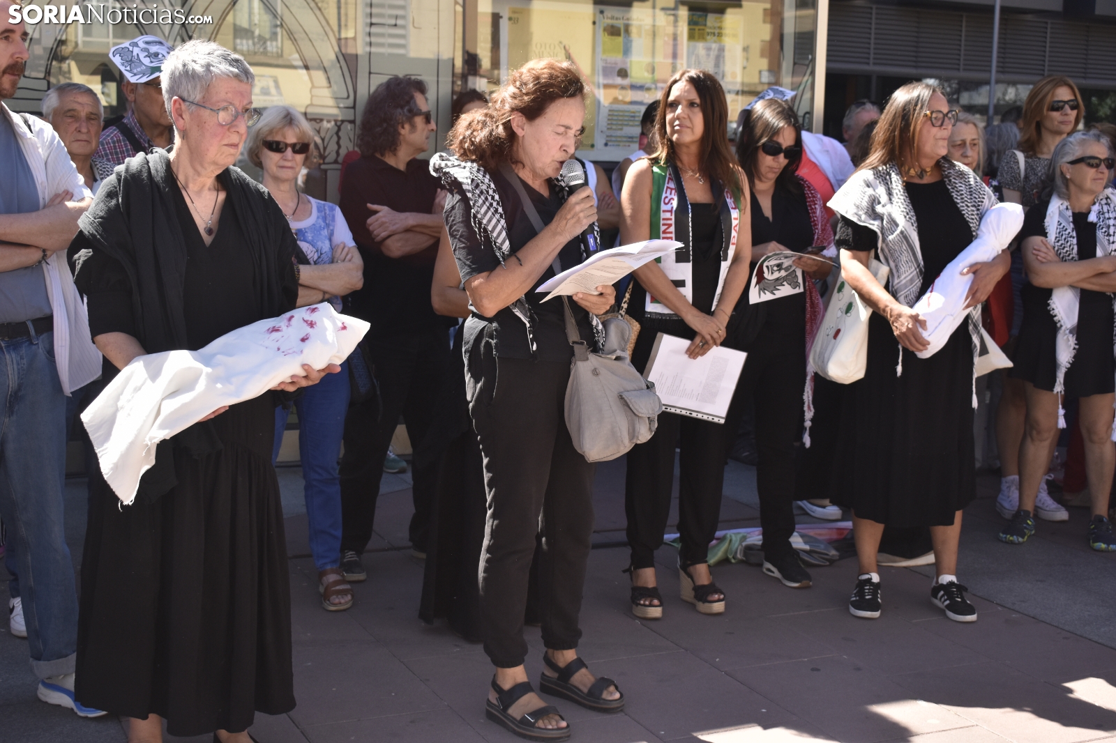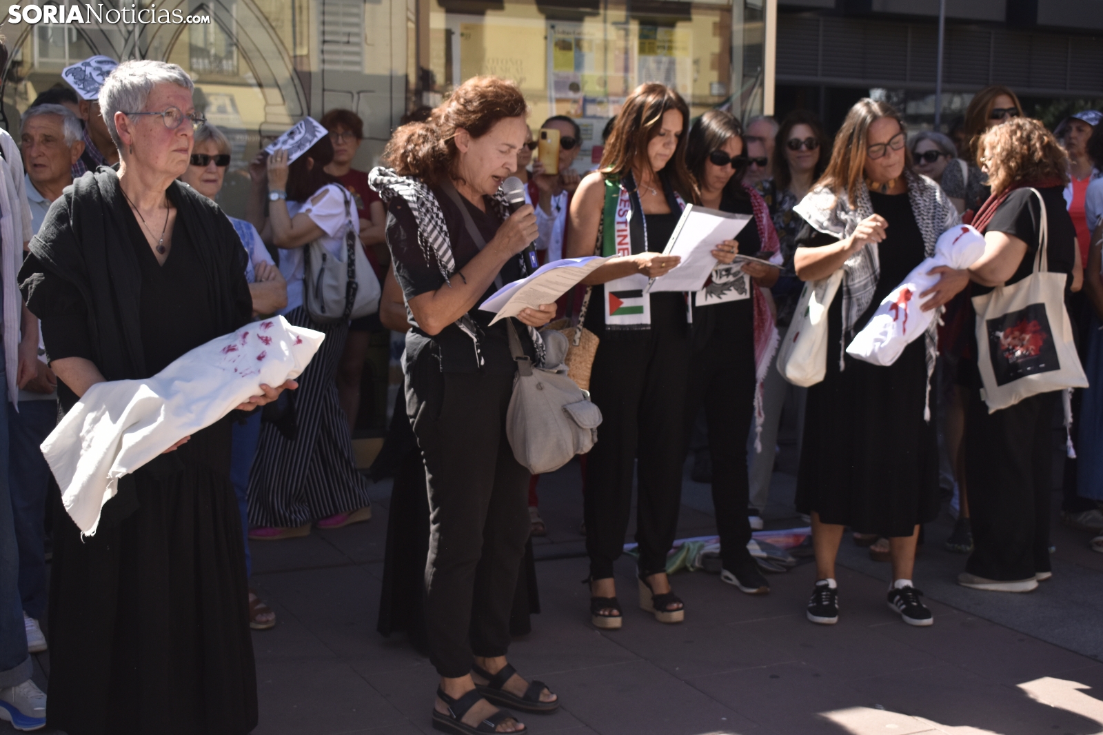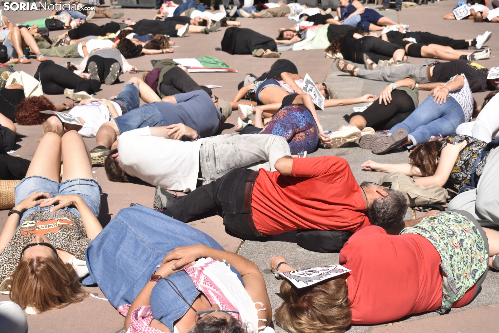 El centro de Soria ha sido escenario este domingo de una emotiva concentración en solidaridad con el pueblo palestino. Convocada por el Movimiento Ciudadano por la Paz, la jornada ha combinado la performance artística, la poesía y la reivindicación para "movilizar conciencias" y exigir el fin de lo que sus organizadores han calificado como un "genocidio".