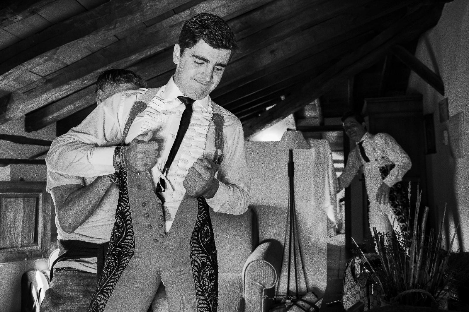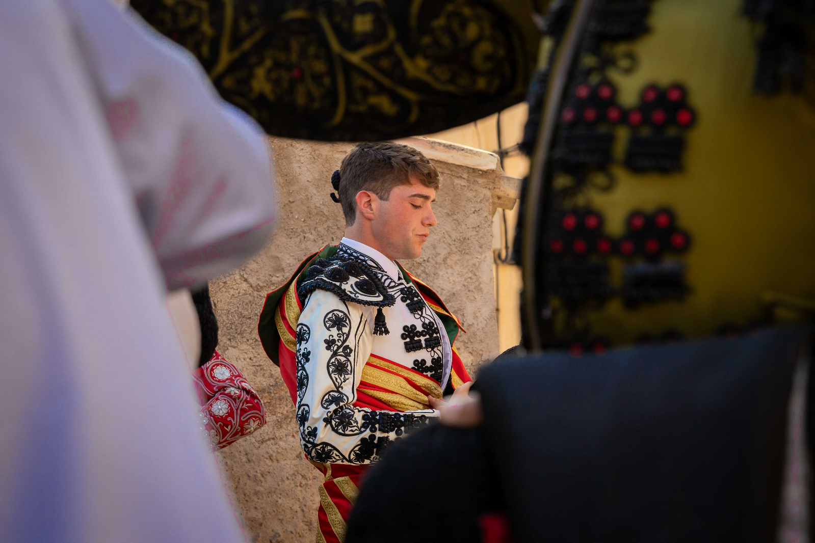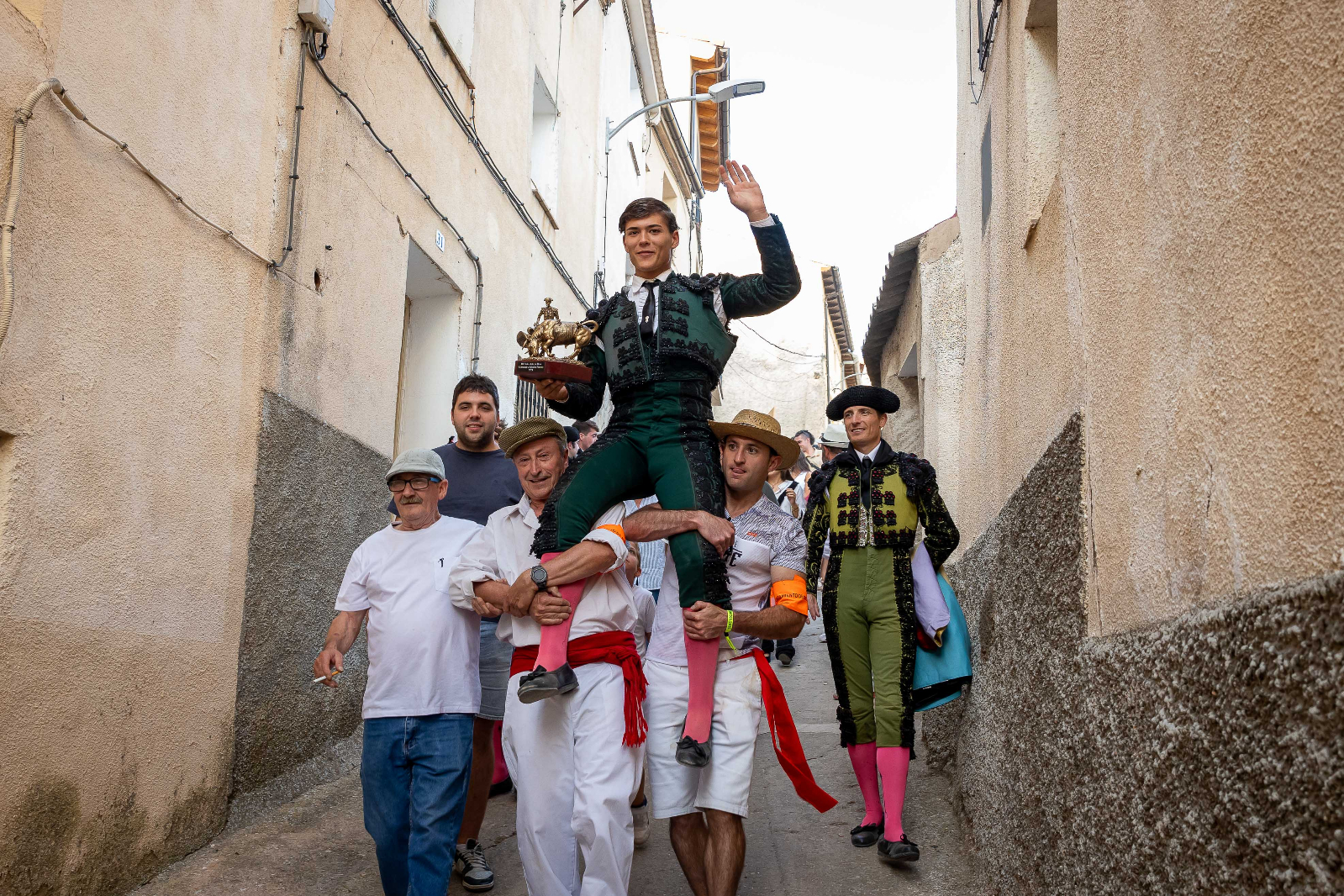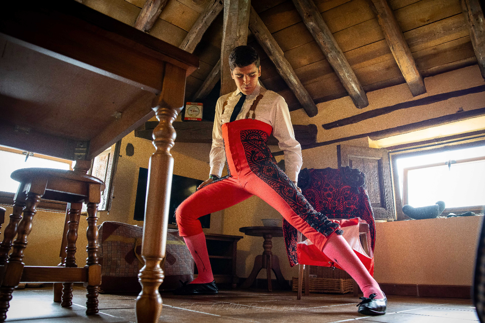 El 'III Trofeo Villa de Deza, homenaje a Salvador Portero' tiene como protagonistas a Juanmi Vidal, Miguel Remiro y el soriano David Espejón, que en este caso actúa como sobresaliente y debe esperar para saber si saltará al ruedo. Los artistas bajan hacia el peculiar ruedo acompañados de su cuadrilla, que arrastra los bártulos propios del toreo por el empedrado, amigos y vecinos, también de otros artistas que inmortalizan el momento. Ellos son Sara y Víctor, Viksar Fotografía, y este es su trabajo que hace justicia a Deza, a su novillada y a su plaza.