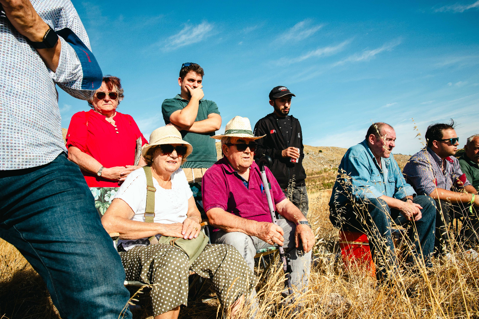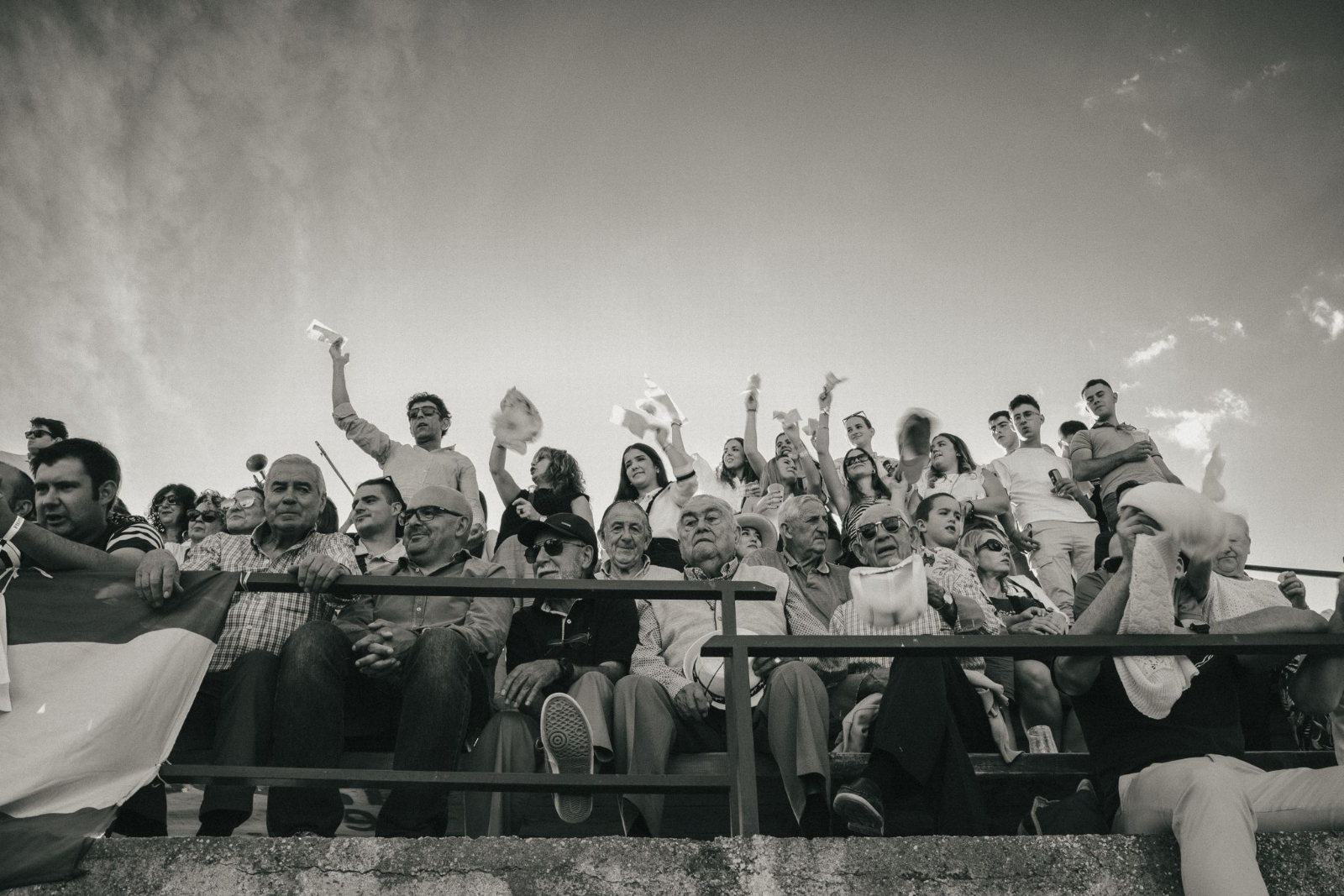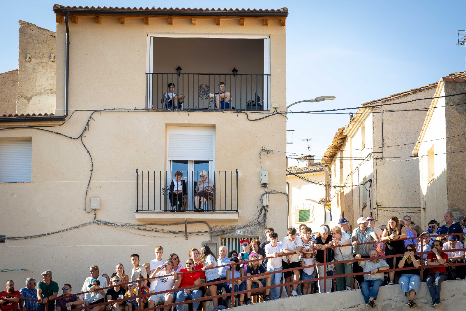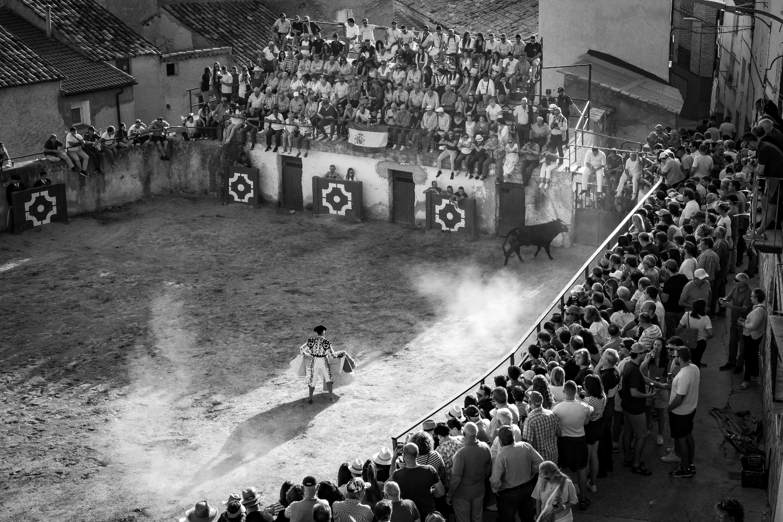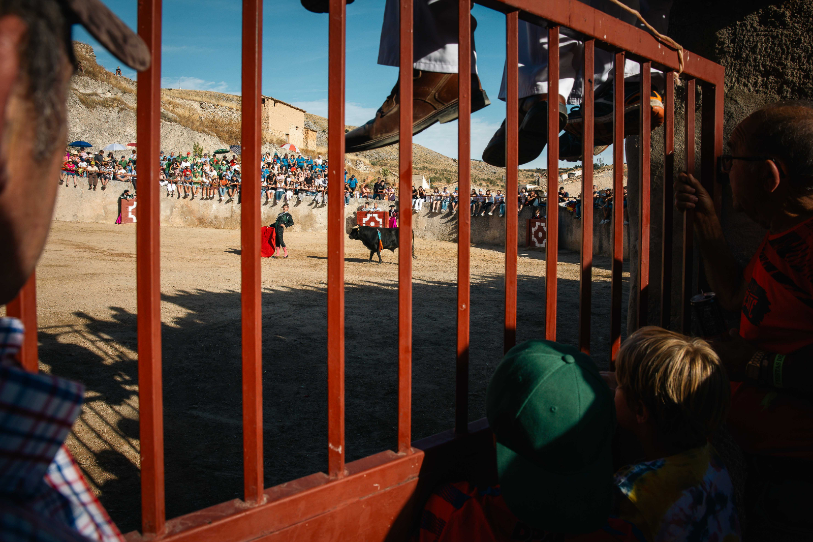 Hacia el peculiar coso enclavado en la roca y de forma irregular se dirigen los novilleros, jóvenes que luchan por cumplir su sueño mientras cabalgan en contradicciones y batallan contra el inexorable paso del tiempo y de las modas. Allí esperan sobre la paletilla lugareños y allegados, también algún que otro curioso. La paletilla y la roca son las gradas improvisadas, más glamurosas en Deza que el papos. También los balcones contiguos se pueblan, aunque solo algunos, pues los volanderos de las casas deshabitadas se convierten en un peligro que pudiera resultar mortal.