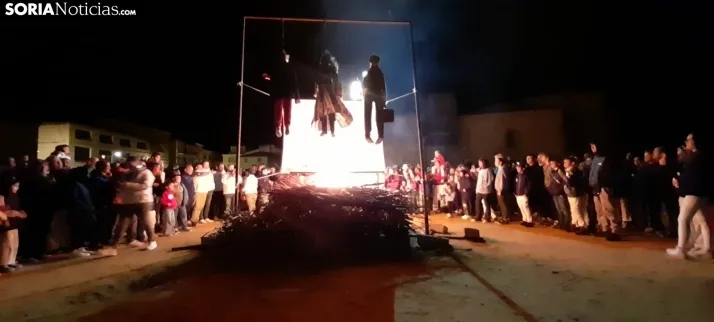 Al caer la noche, se celebrará la tradicional quema de estos tres muñecos, un hombre una mujer y el demonio. Estas figuras, elaboradas artesanalmente por un grupo de mujeres de la localidad que mantienen viva esta costumbre, son prendidas en una hoguera para quemar con ellas todo lo negativo acumulado durante el año y dar paso a un nuevo ciclo.