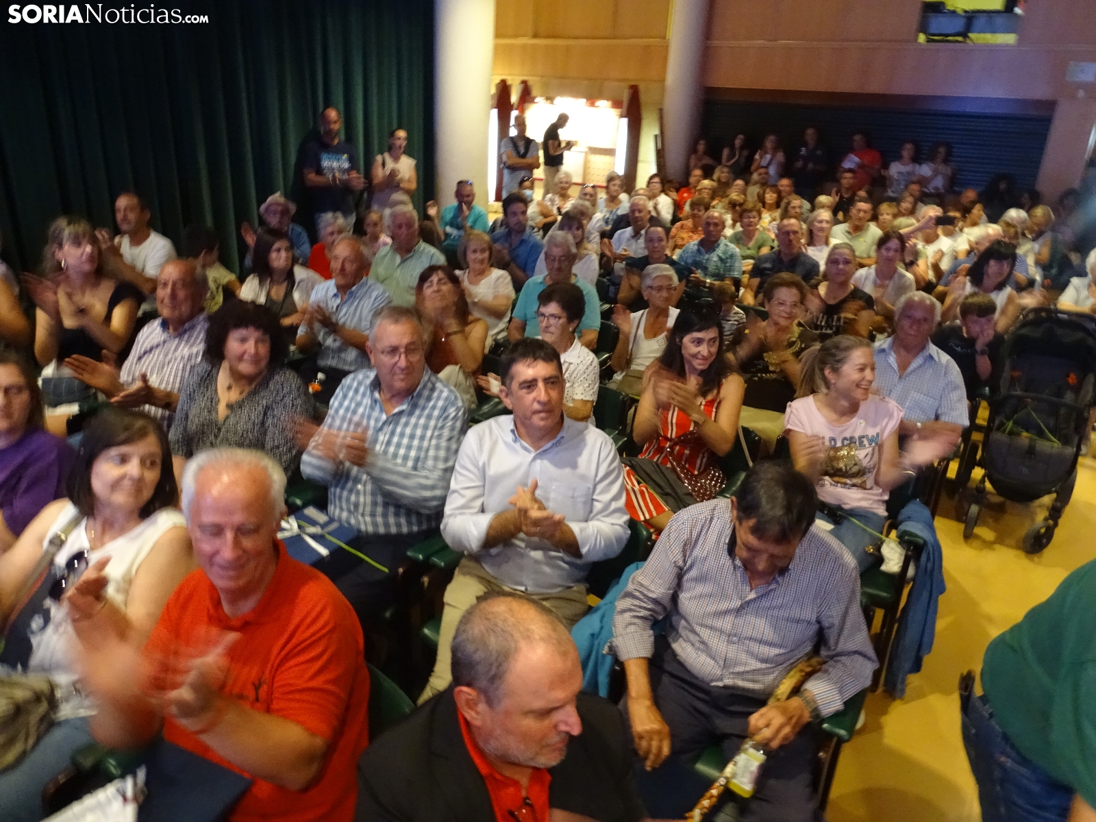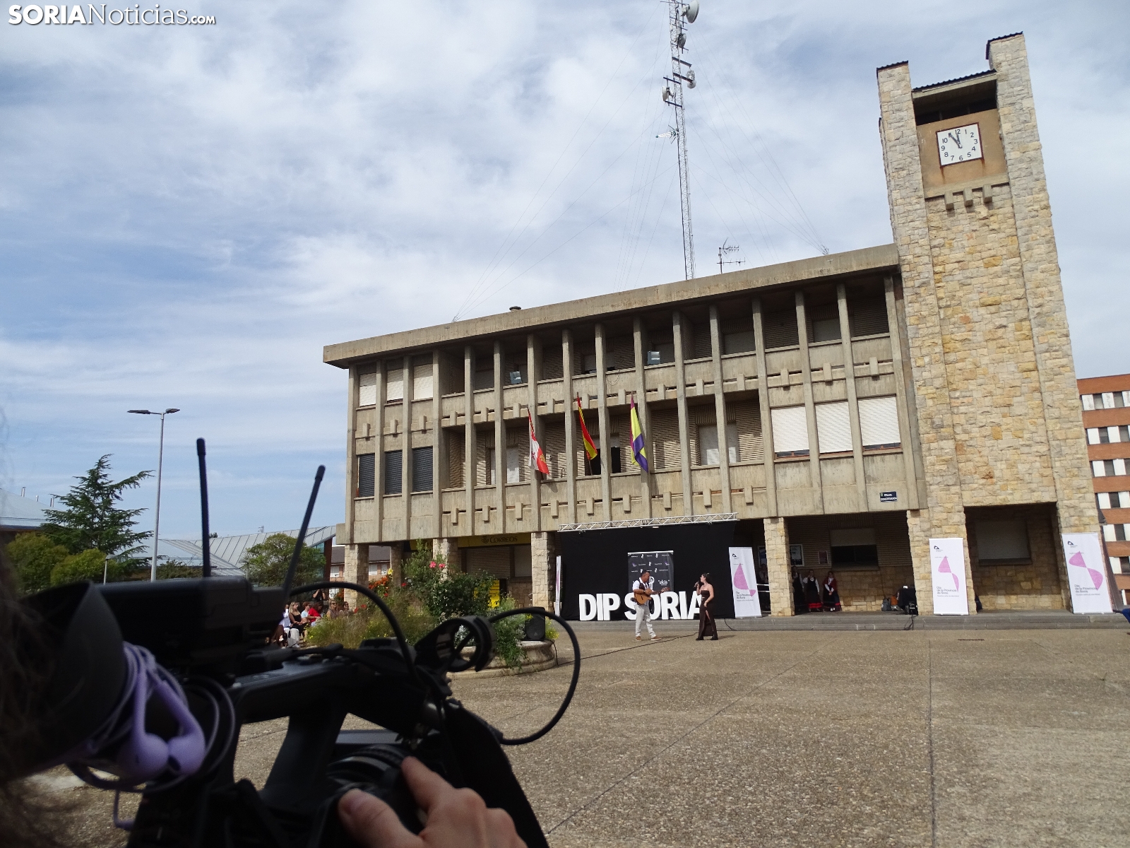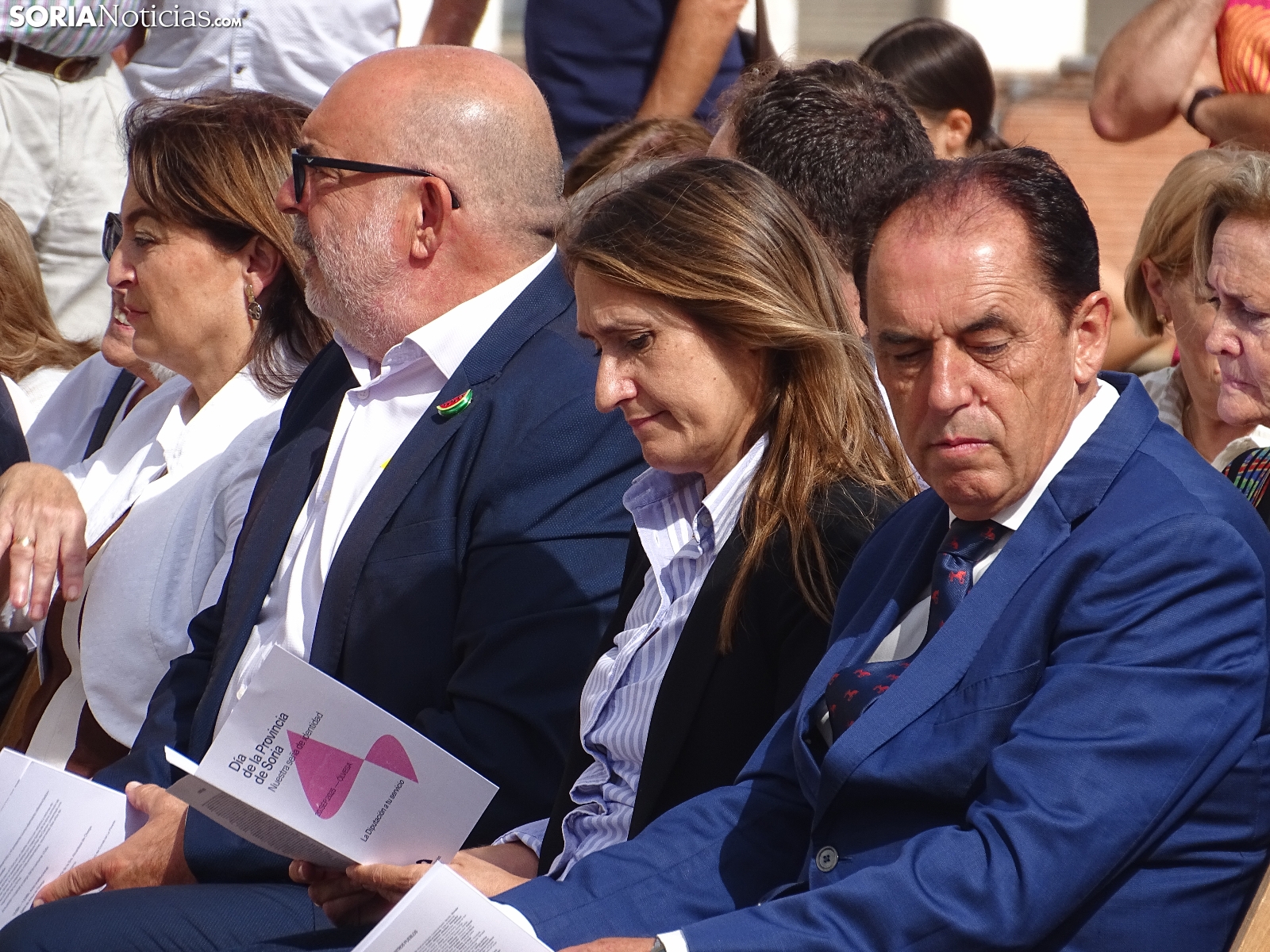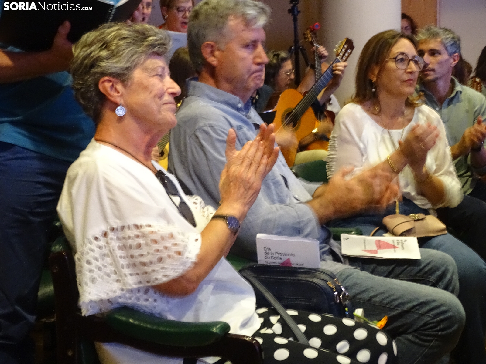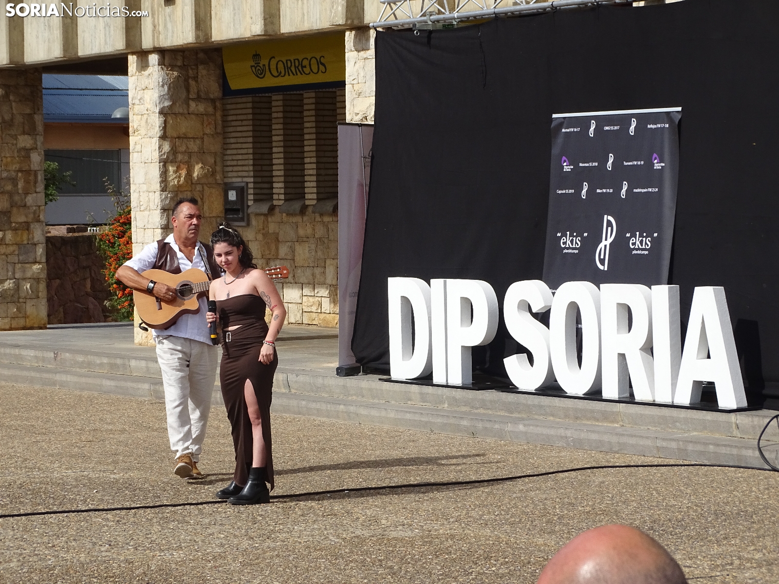 Este sábado Ólvega ha acogido una nueva edición del Día de la Provincia, organizada por la Diputación en una jornada en la que se busca reivindicar el espíritu soriano y poner en valor, cada año, las riquezas de cada localidad donde se celebra. Actuación musical, pase de moda de la diseñadora Pilar del Campo, premios a asociaciones y municipios por su labor identitaria que suma al patrimonio cultural del territorio, magia y mentalismo (este con la ayuda de teléfonos móviles), y homenaje —el más aplaudido— a Trovadores de la Paz, agrupación musical de la localidad que lleva 53 años de andadura. Colofón con un vino español, con casetas de establecimientos locales en una soleada y más que multitudinariara jornada en la demarcación del Moncayo.