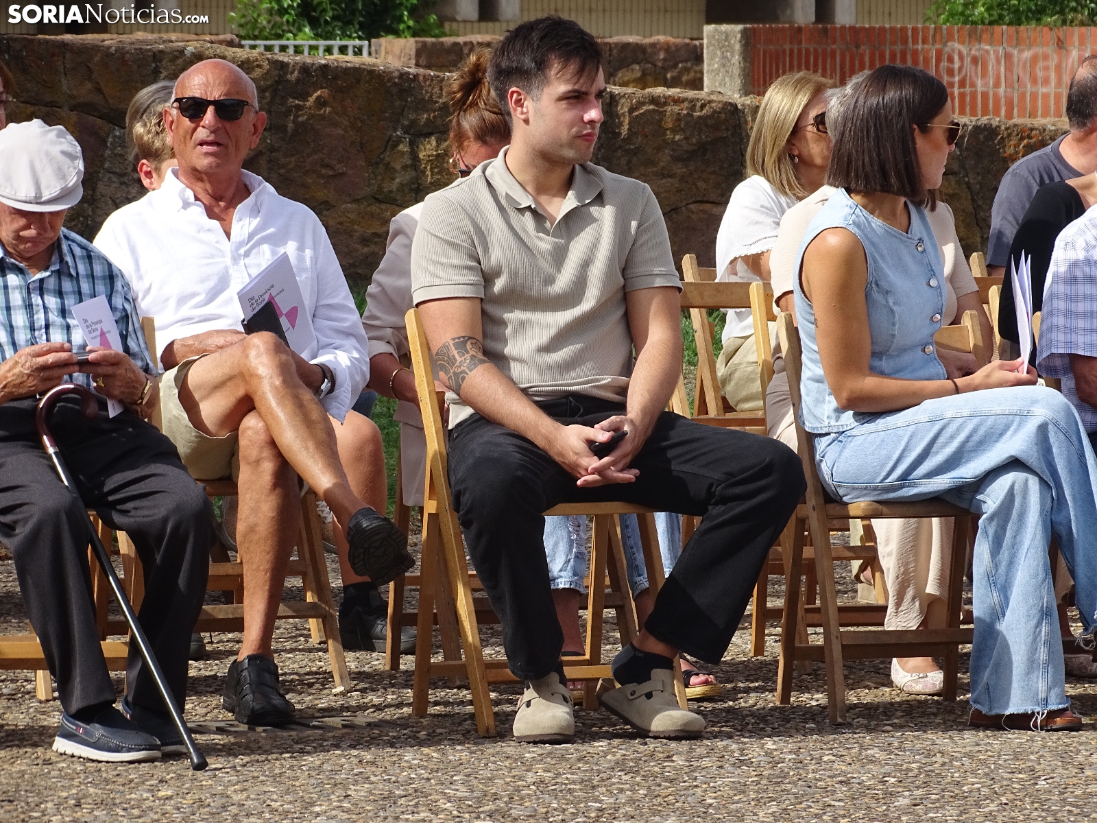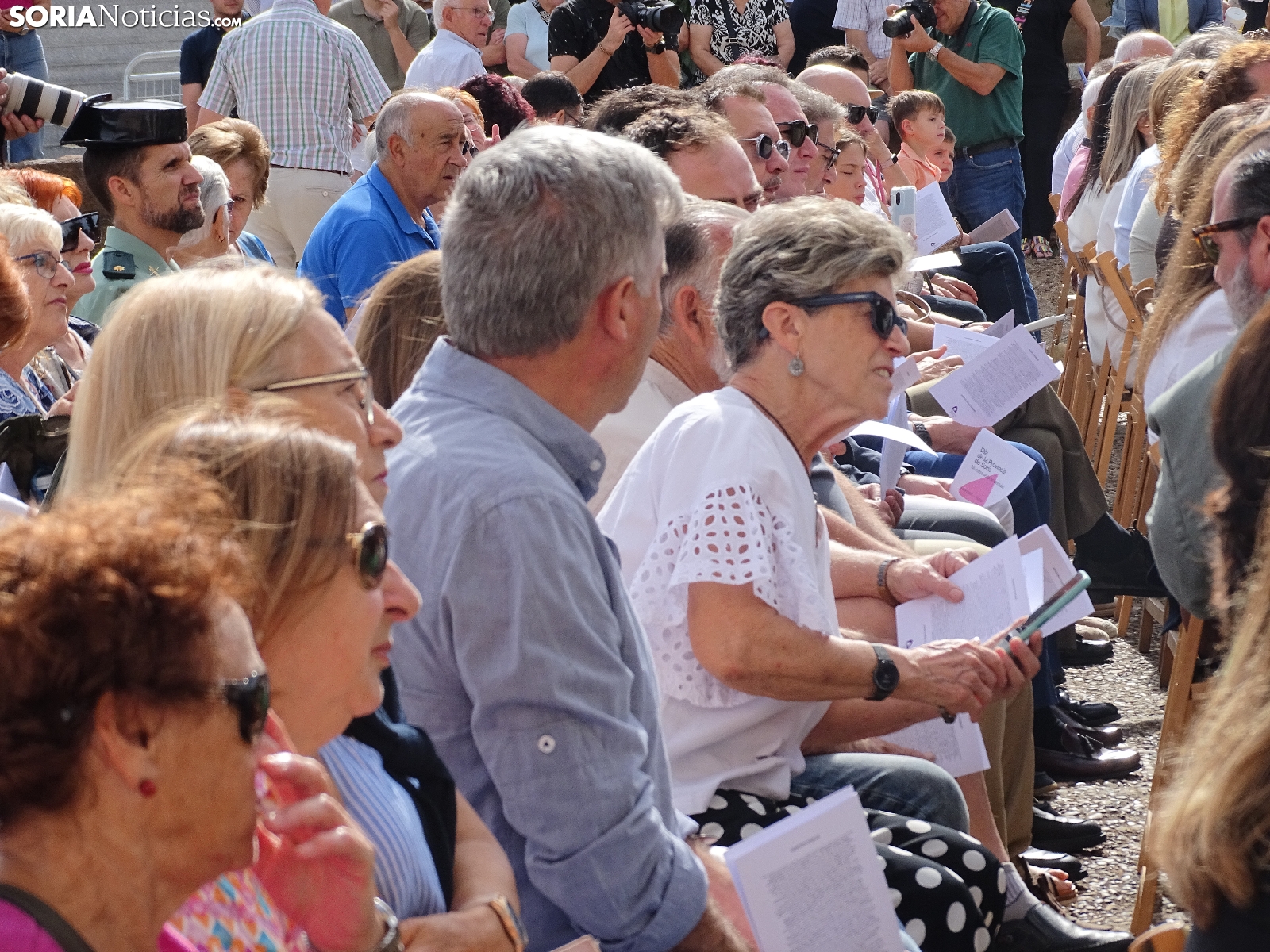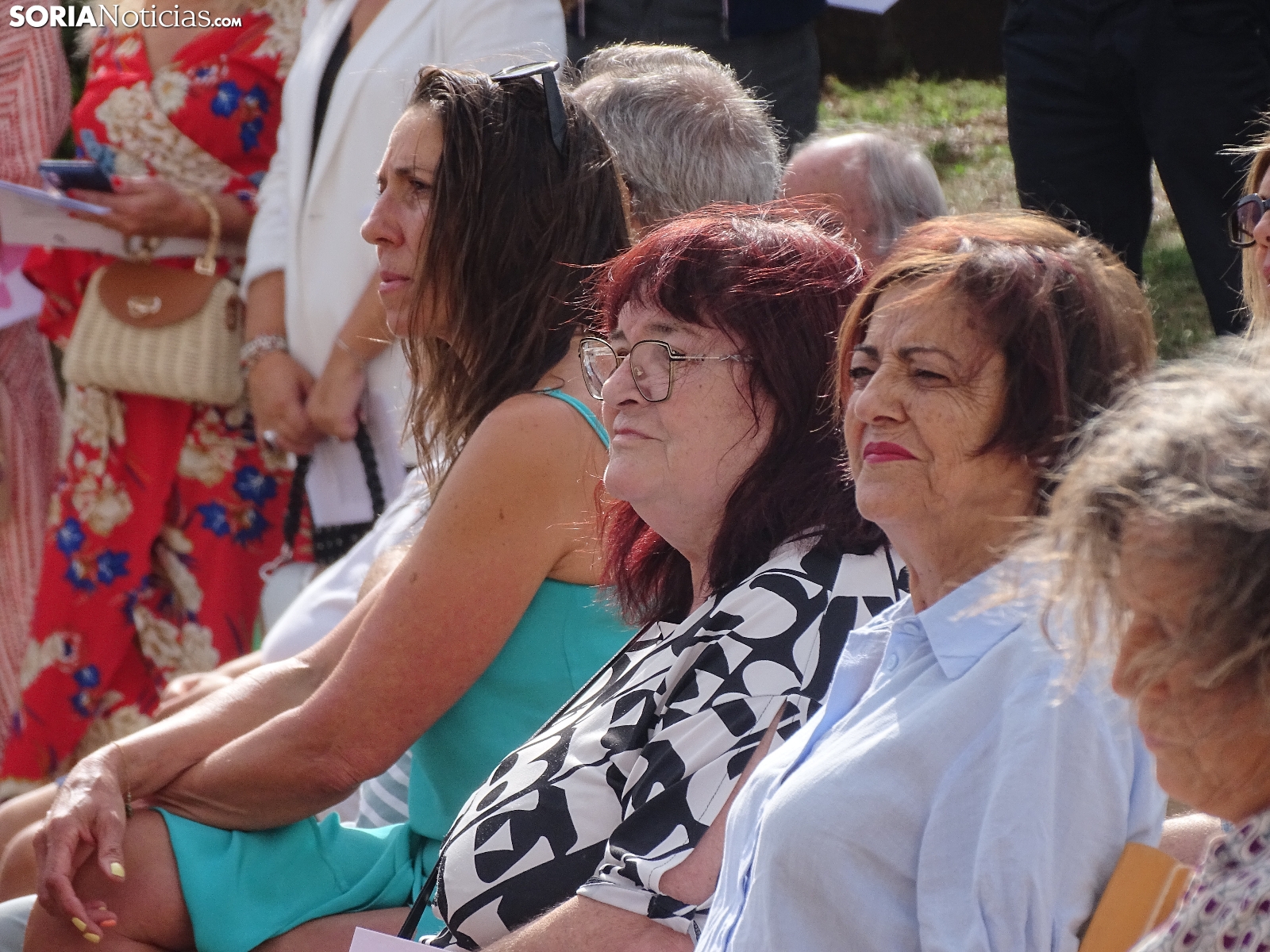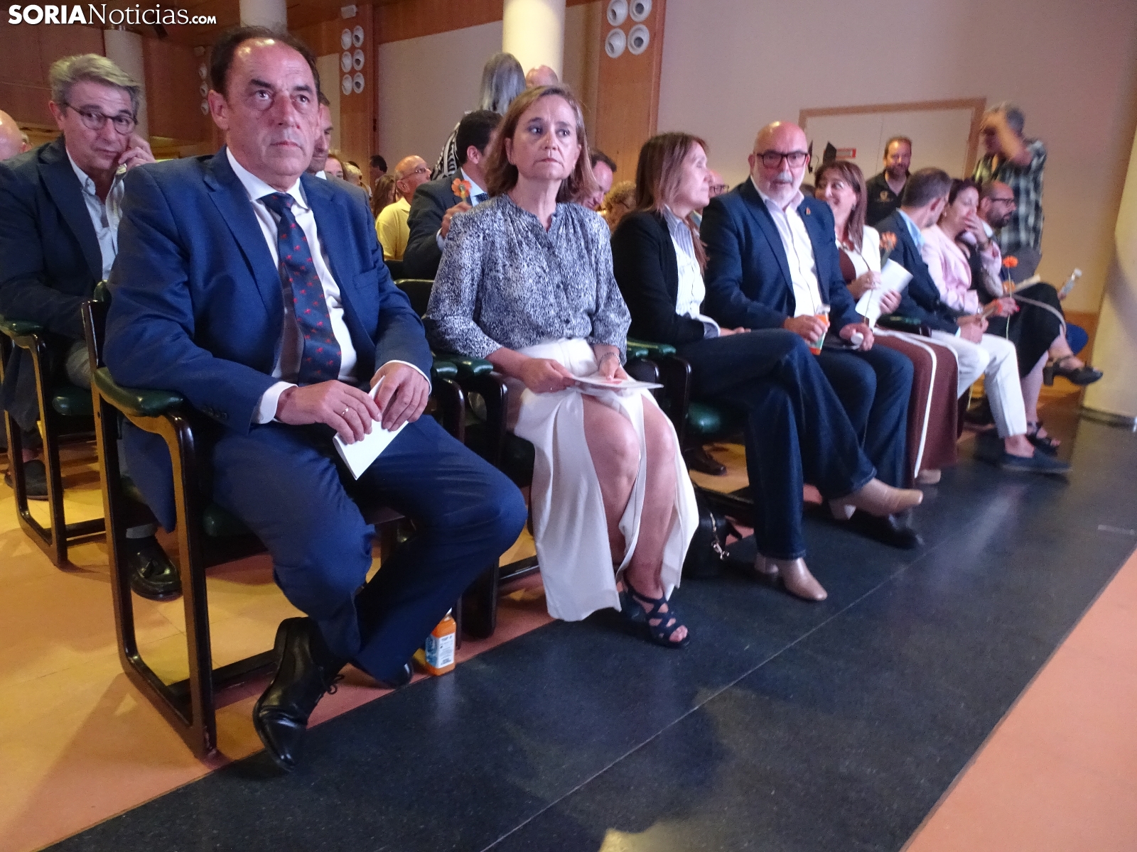 Este sábado Ólvega ha acogido una nueva edición del Día de la Provincia, organizada por la Diputación en una jornada en la que se busca reivindicar el espíritu soriano y poner en valor, cada año, las riquezas de cada localidad donde se celebra. Actuación musical, pase de moda de la diseñadora Pilar del Campo, premios a asociaciones y municipios por su labor identitaria que suma al patrimonio cultural del territorio, magia y mentalismo (este con la ayuda de teléfonos móviles), y homenaje —el más aplaudido— a Trovadores de la Paz, agrupación musical de la localidad que lleva 53 años de andadura. Colofón con un vino español, con casetas de establecimientos locales en una soleada y más que multitudinariara jornada en la demarcación del Moncayo.