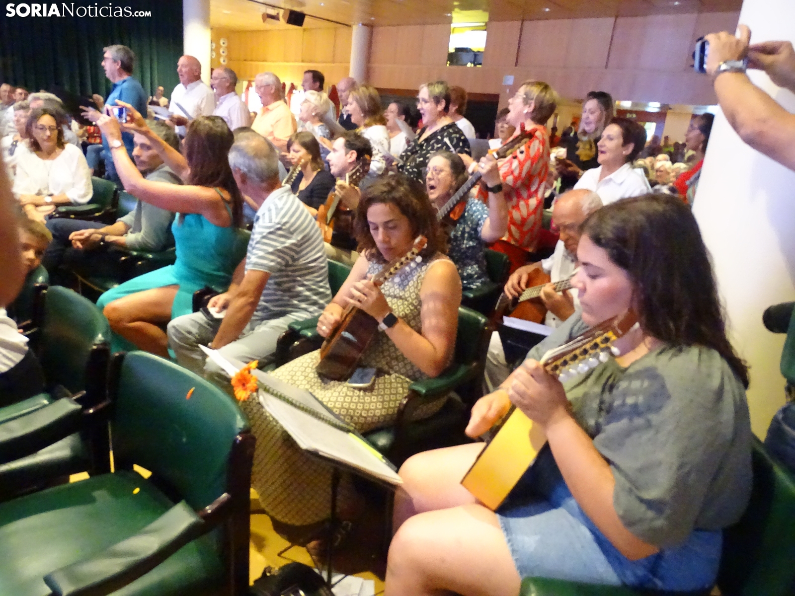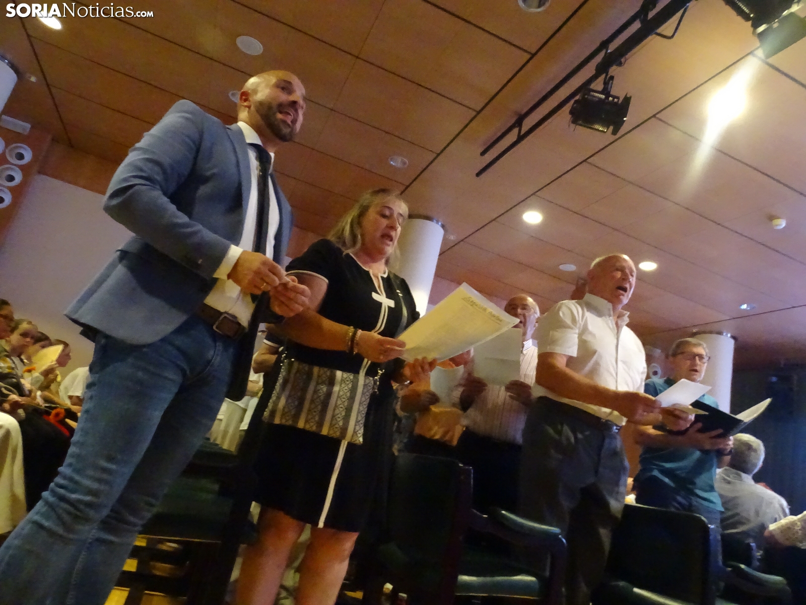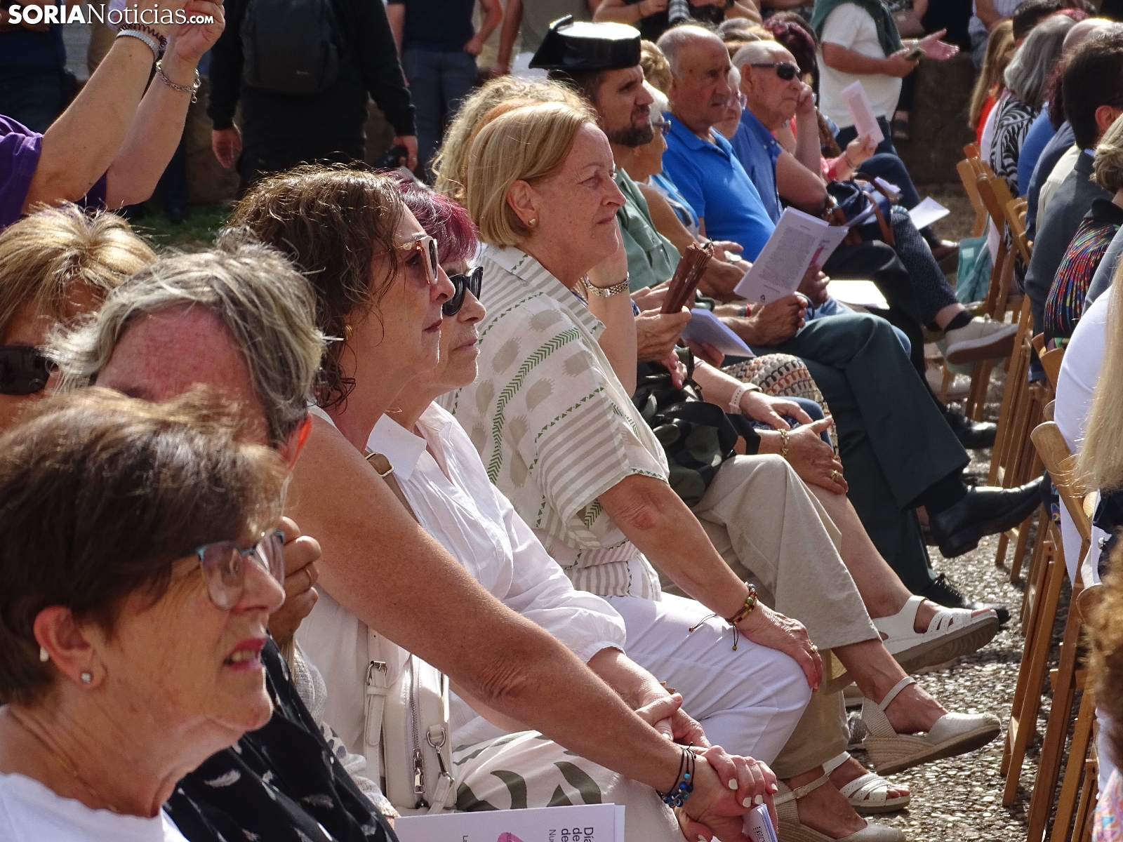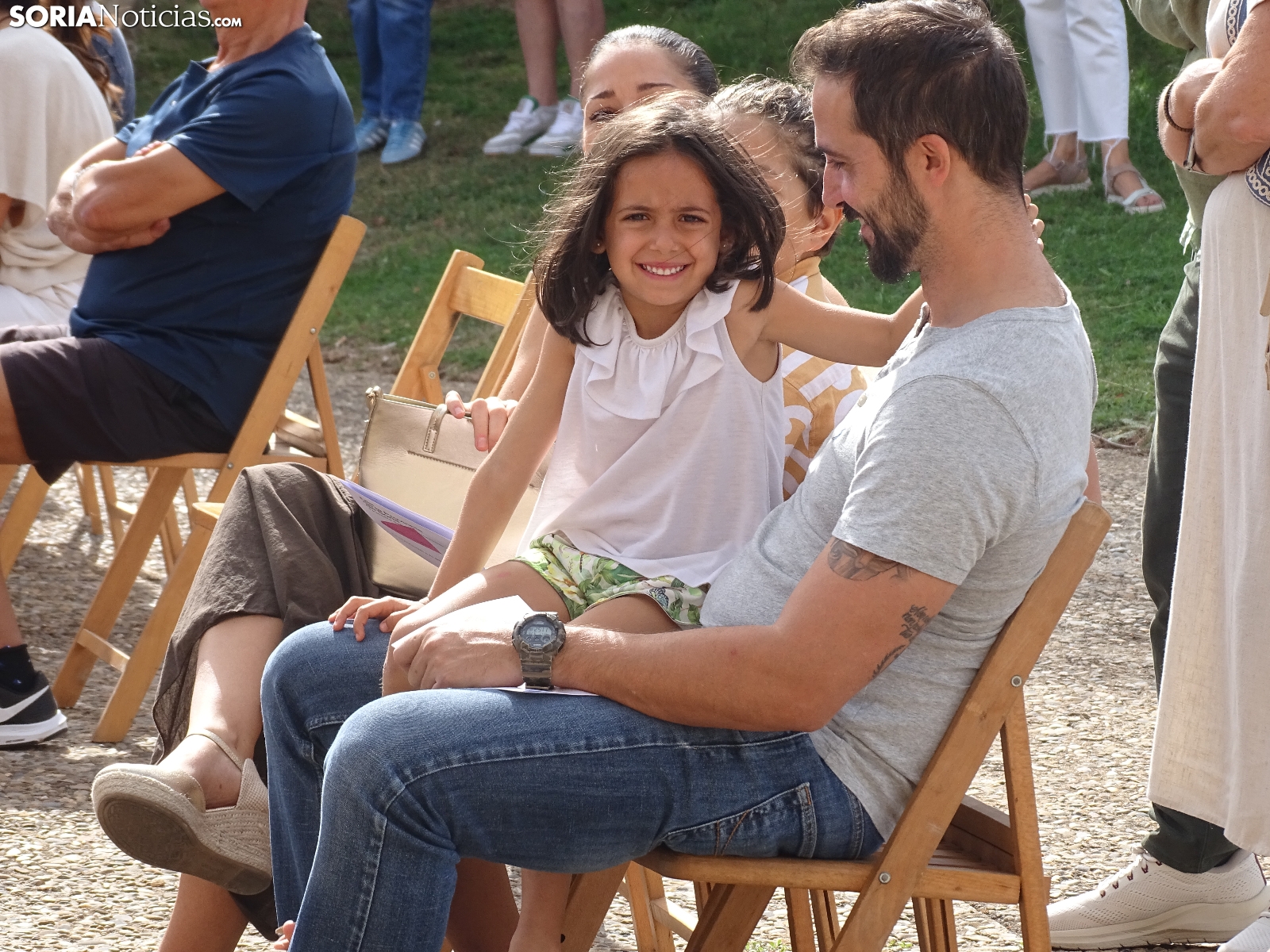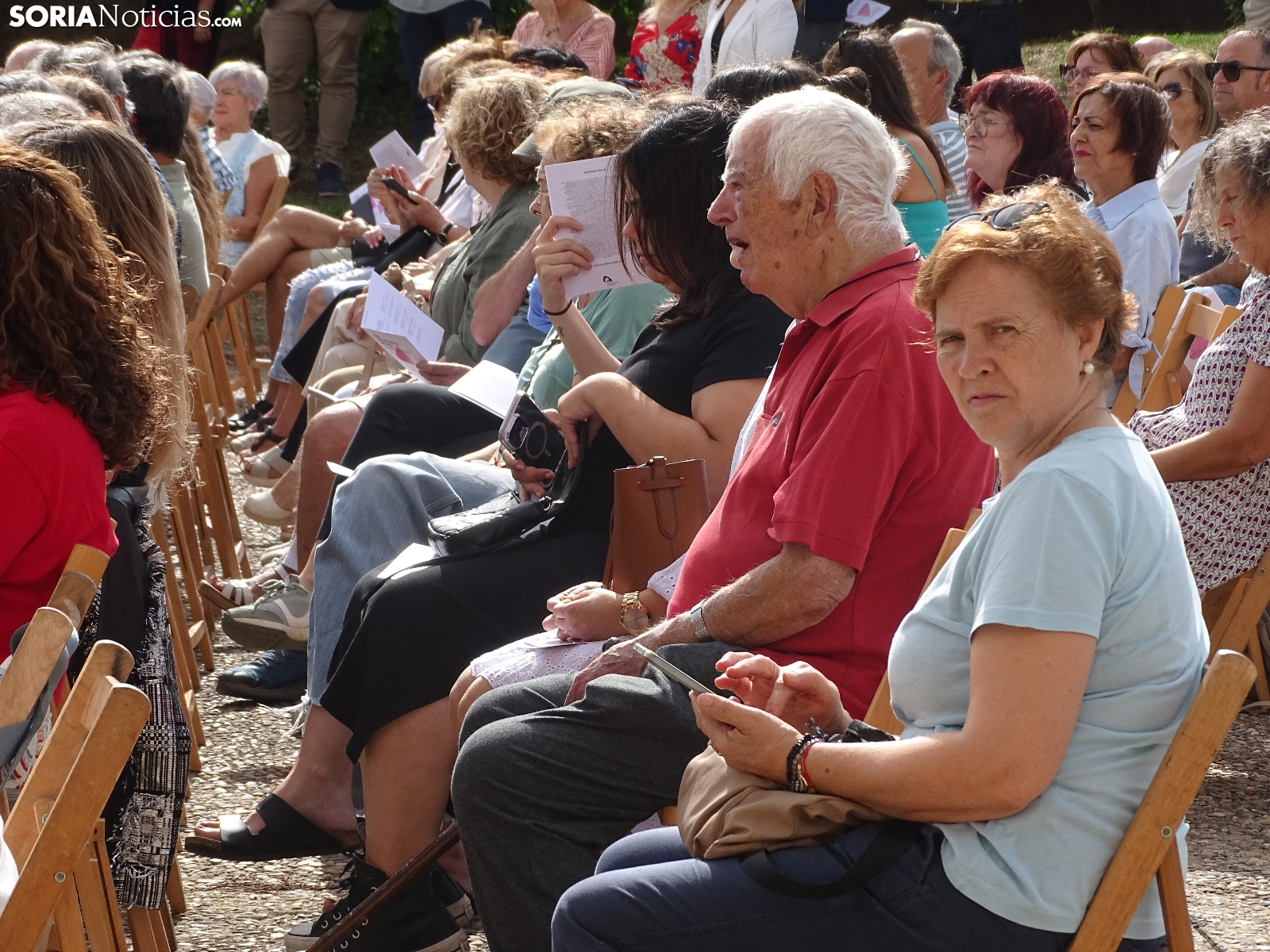 Este sábado Ólvega ha acogido una nueva edición del Día de la Provincia, organizada por la Diputación en una jornada en la que se busca reivindicar el espíritu soriano y poner en valor, cada año, las riquezas de cada localidad donde se celebra. Actuación musical, pase de moda de la diseñadora Pilar del Campo, premios a asociaciones y municipios por su labor identitaria que suma al patrimonio cultural del territorio, magia y mentalismo (este con la ayuda de teléfonos móviles), y homenaje —el más aplaudido— a Trovadores de la Paz, agrupación musical de la localidad que lleva 53 años de andadura. Colofón con un vino español, con casetas de establecimientos locales en una soleada y más que multitudinariara jornada en la demarcación del Moncayo.