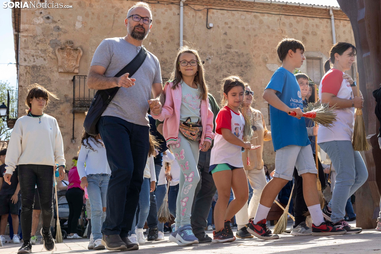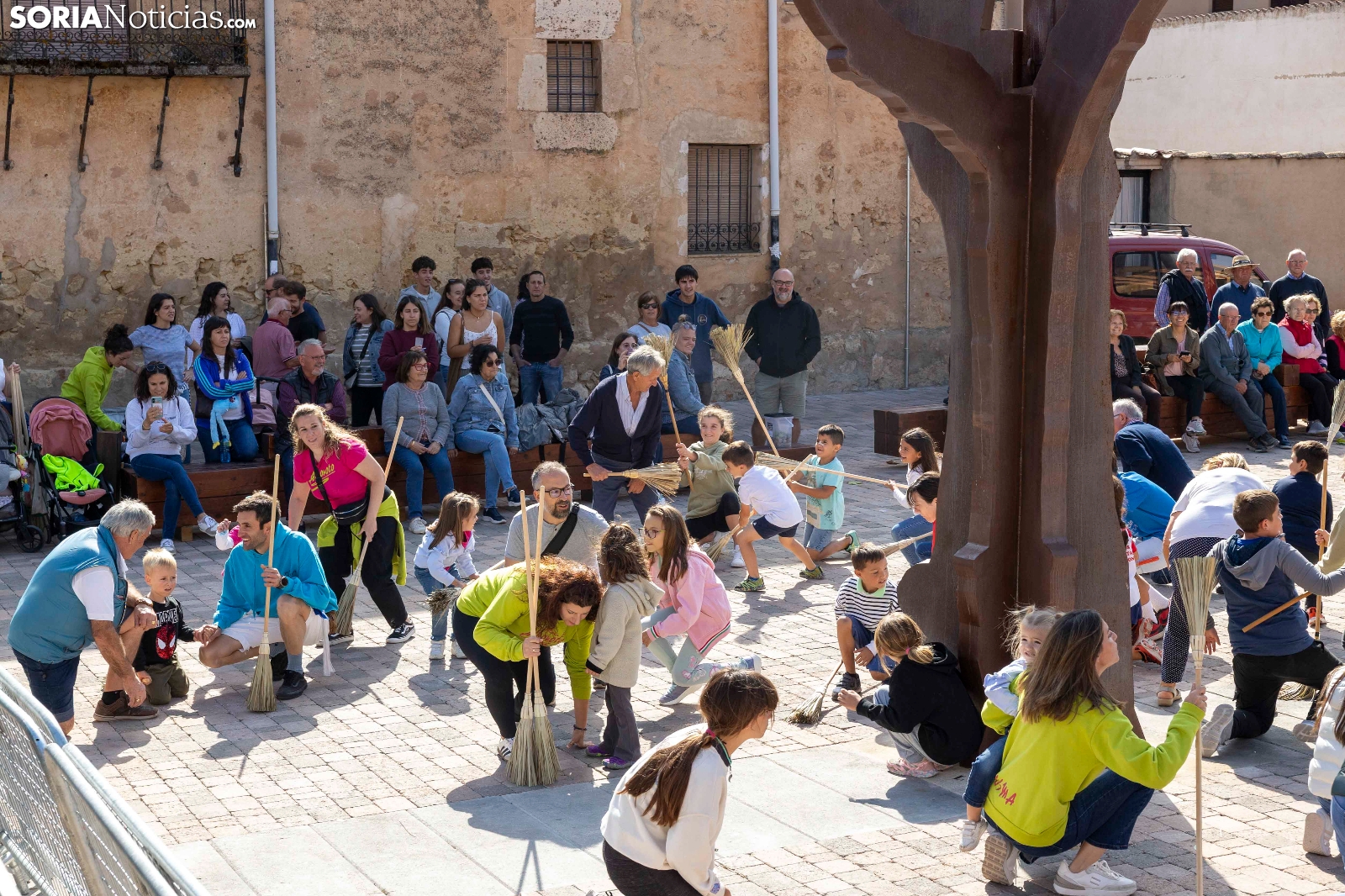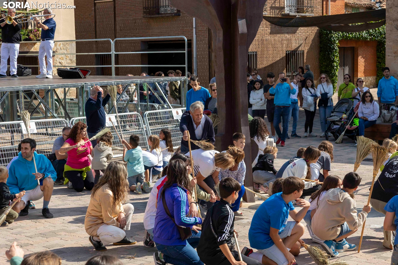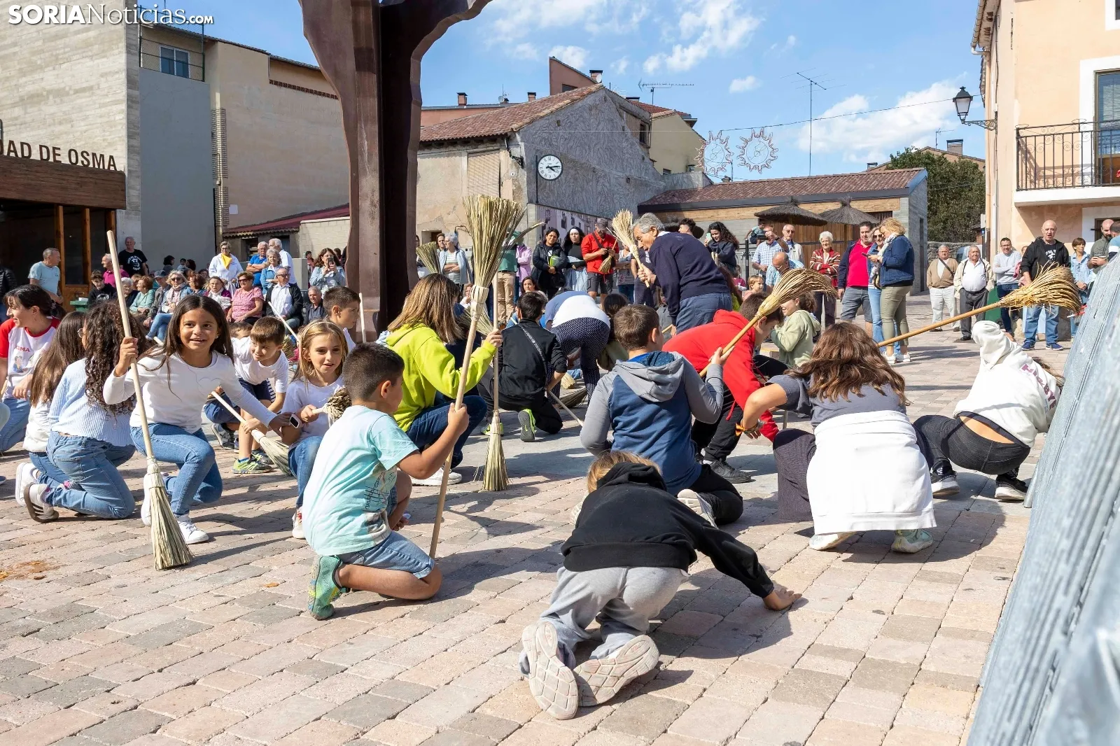 Las fiestas de San Mateo en Osma llegaban este domingo a su día final con el tradicional 'Baile de la escoba'. Tras la multitudinaria caldereta popular, la charanga ha sonado para que los pequeños, principalmente, hayan vuelto a celebrar esta peculiar manifestación festiva en la que en cada pieza musical se hace una pausa y nadie puede quedarse de pie. Quien lo hace recibe un escobazo para 'poner orden' al ritmo que suena, bajo el regocijo de los mayores. Diversión y desenfado, como cada año, para poner el punto y final a esta festividad que se conmemora hoy y que tenía su prólogo ya el viernes.