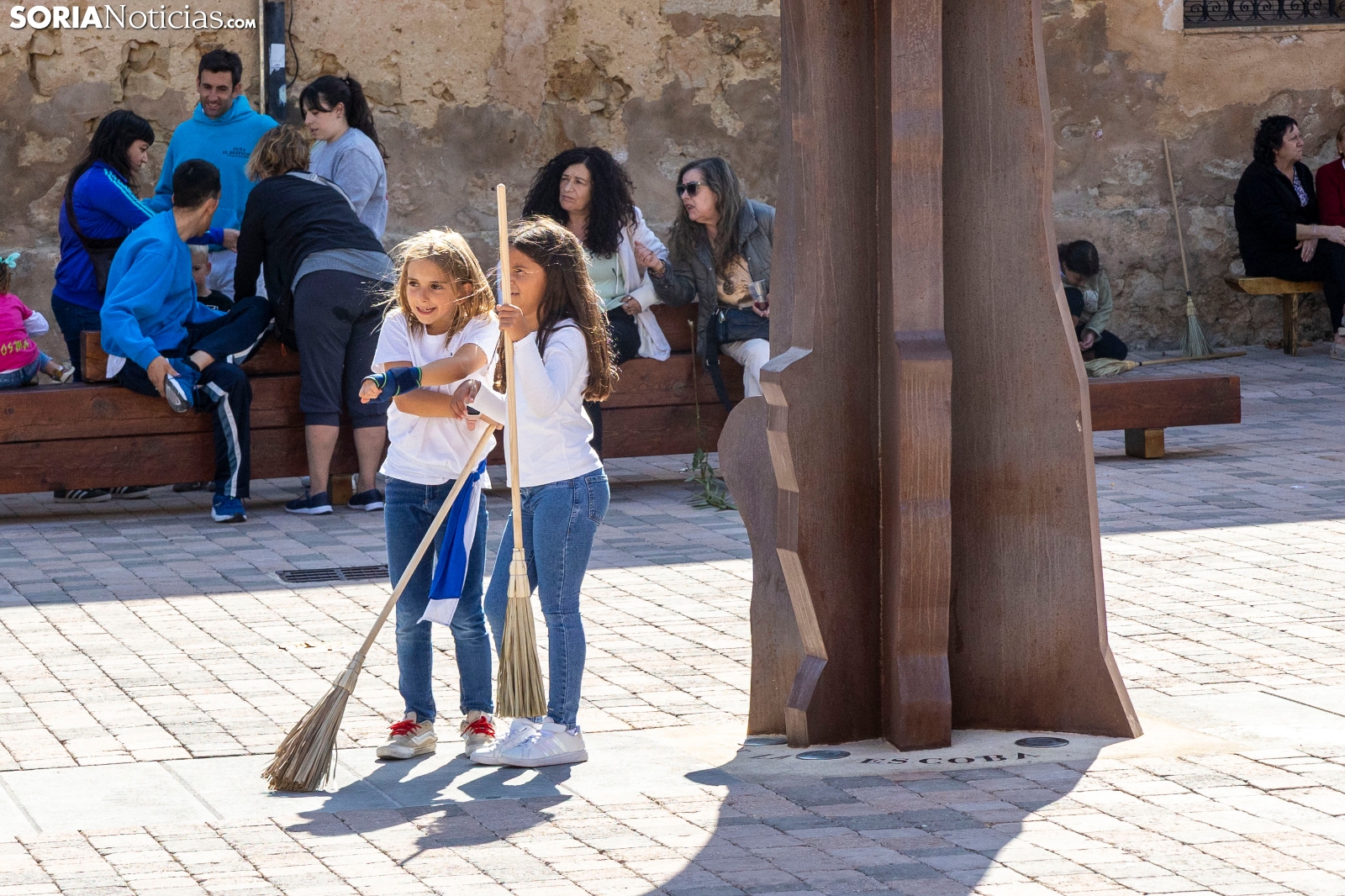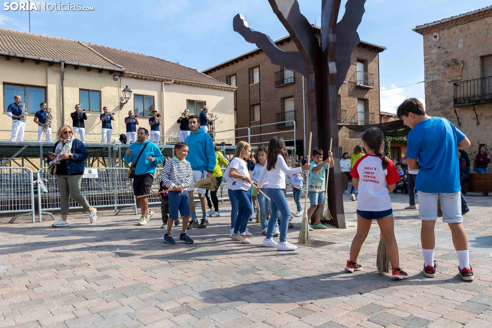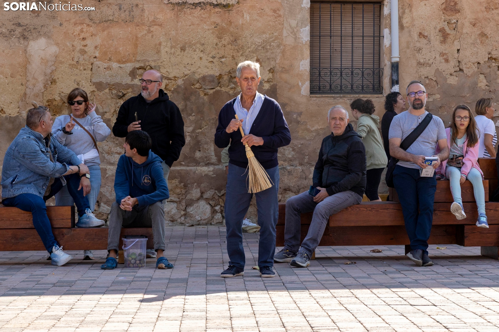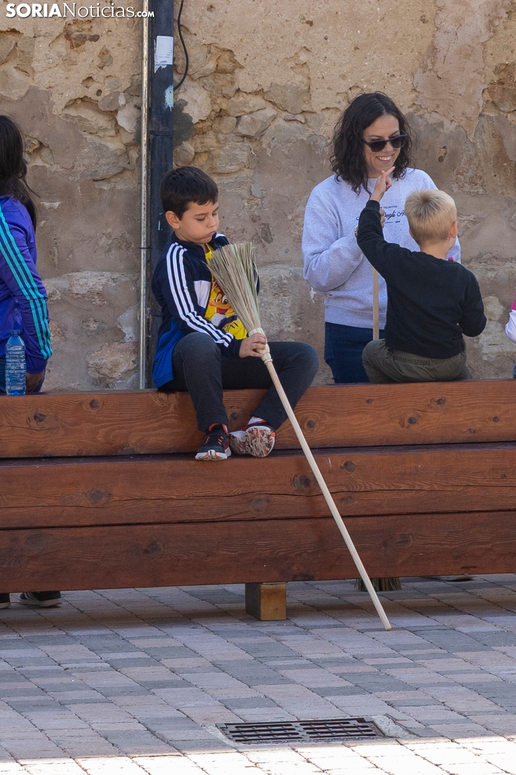 Las fiestas de San Mateo en Osma llegaban este domingo a su día final con el tradicional 'Baile de la escoba'. Tras la multitudinaria caldereta popular, la charanga ha sonado para que los pequeños, principalmente, hayan vuelto a celebrar esta peculiar manifestación festiva en la que en cada pieza musical se hace una pausa y nadie puede quedarse de pie. Quien lo hace recibe un escobazo para 'poner orden' al ritmo que suena, bajo el regocijo de los mayores. Diversión y desenfado, como cada año, para poner el punto y final a esta festividad que se conmemora hoy y que tenía su prólogo ya el viernes.
