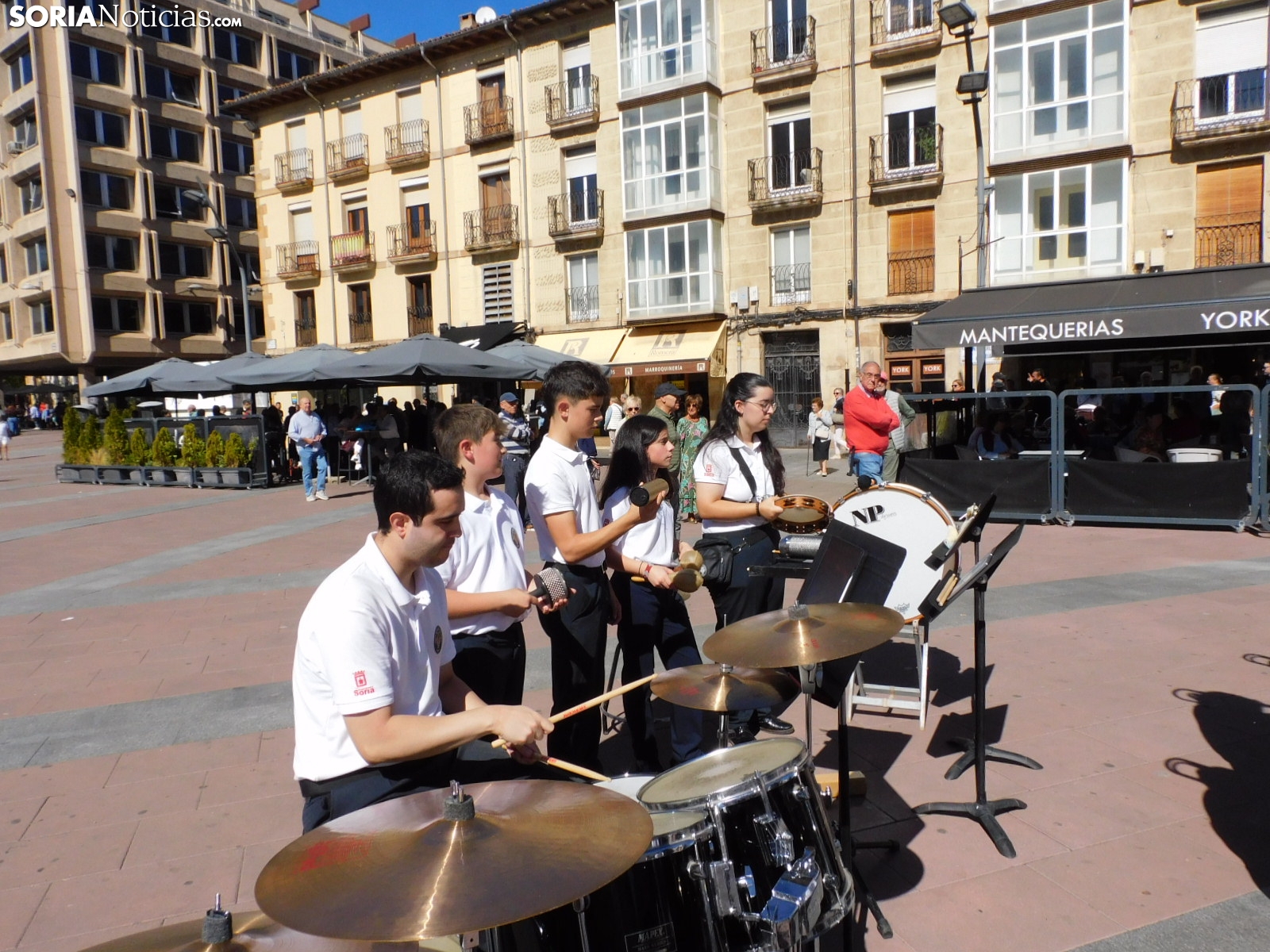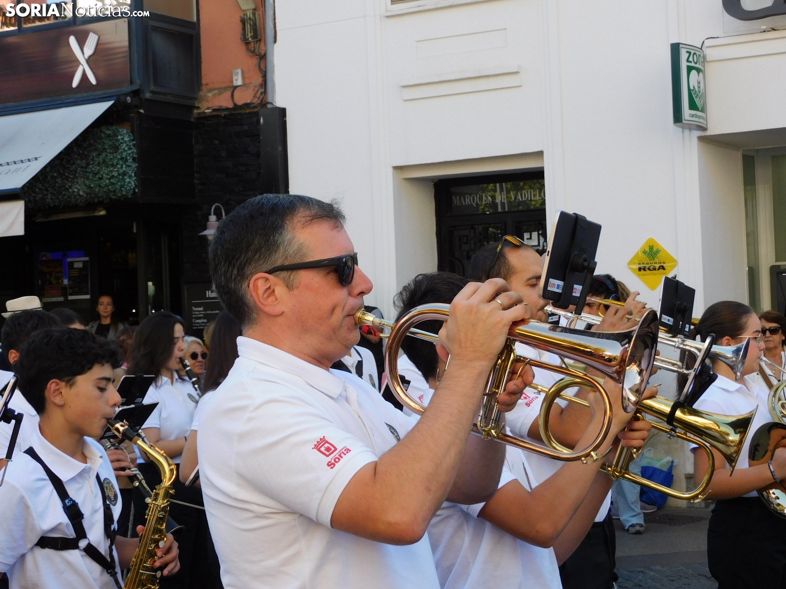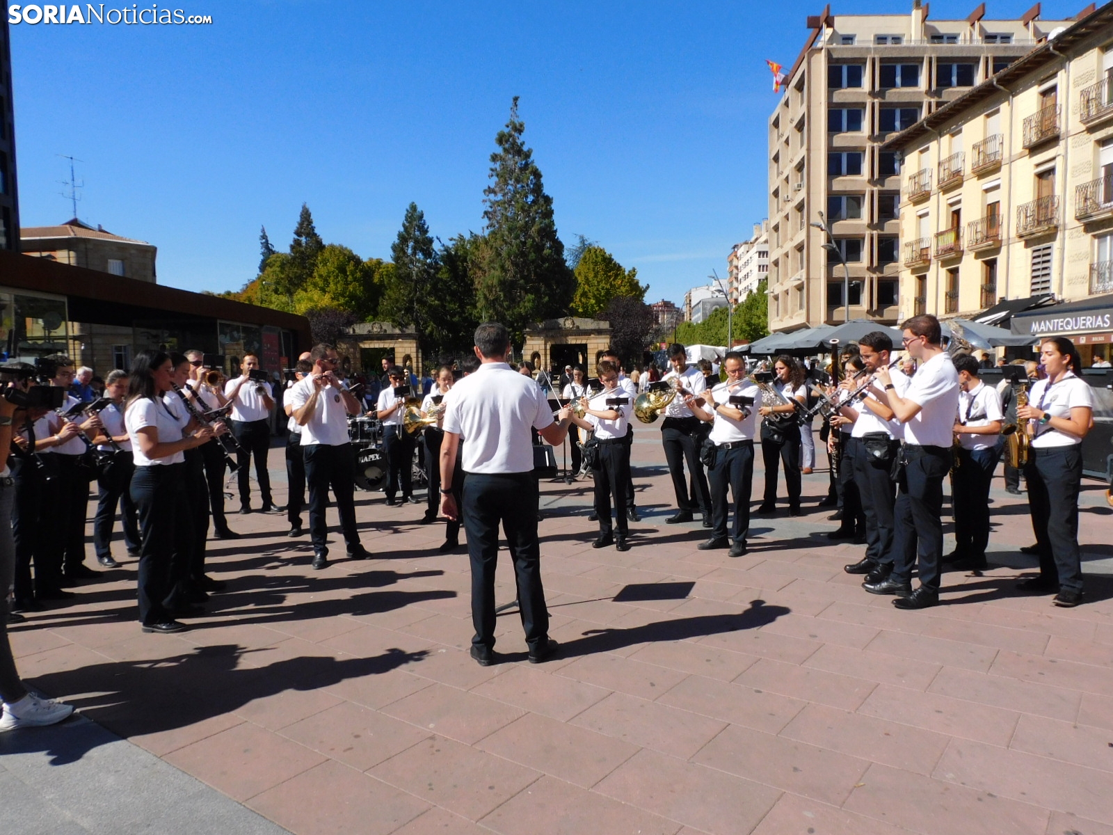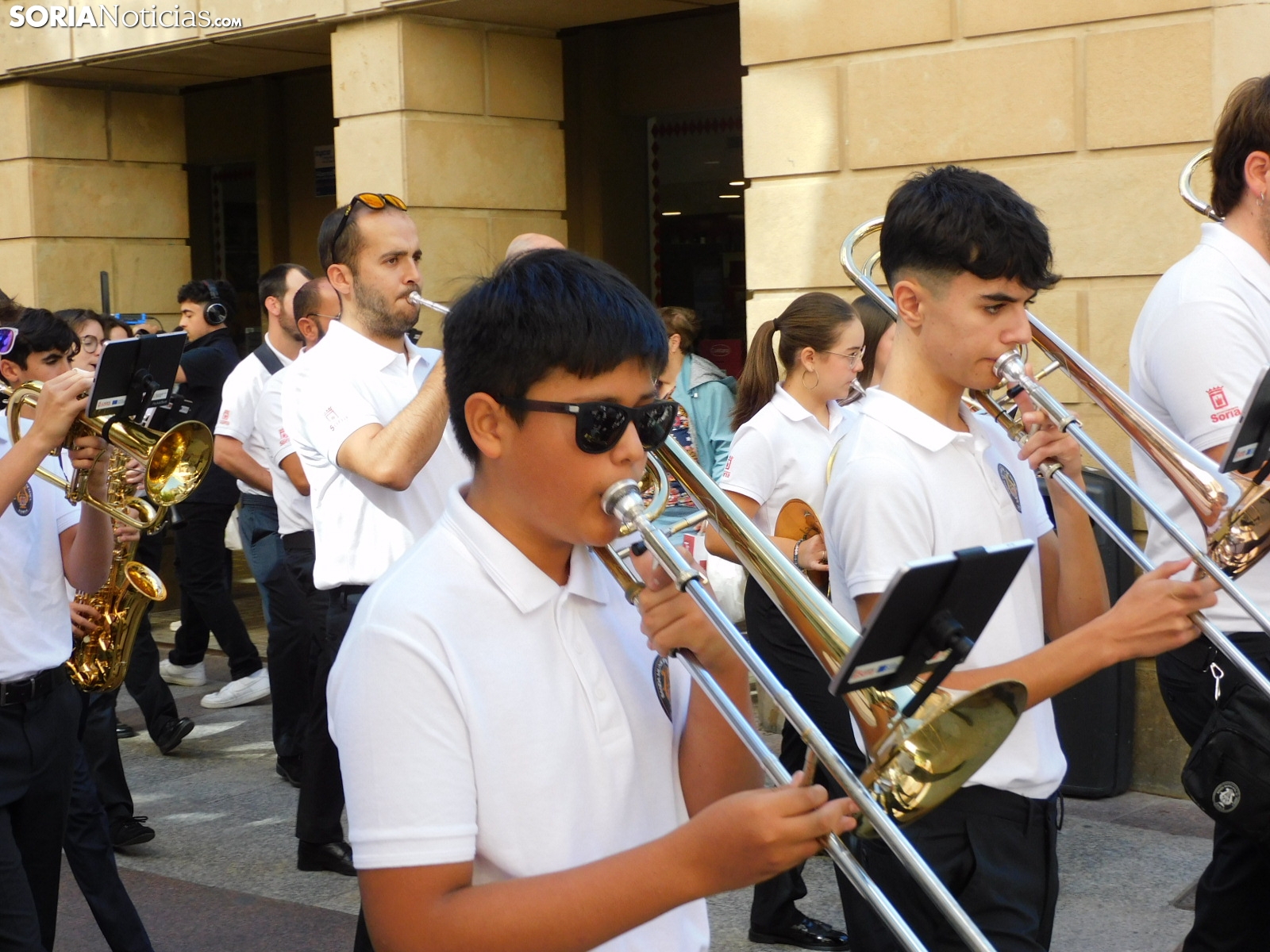 La Banda Municipal de Música ha dado la bienvenida a las fiestas de San Saturio con su tradicional pasacalles. Partiendo desde la Plaza Mayor, la música ha acompañado a los sorianos este mediodía, desde las 13:00h. Los músicos, engalanados en el uniforme de la Banda, han reunidio a vecinos y curiosos en el pistoletazo de salida de las fiestas del patrón de la capital. Desde lo más jóvenes a los más veteranos, han tocado sus mejores notas de una forma muy alegre. Tras este primer acto, la ciudad se va a ver envuelta en cinco días de fiesta ininterrumpida, con protagonismo de la música, los toros, el deporte y los actos religiosos.