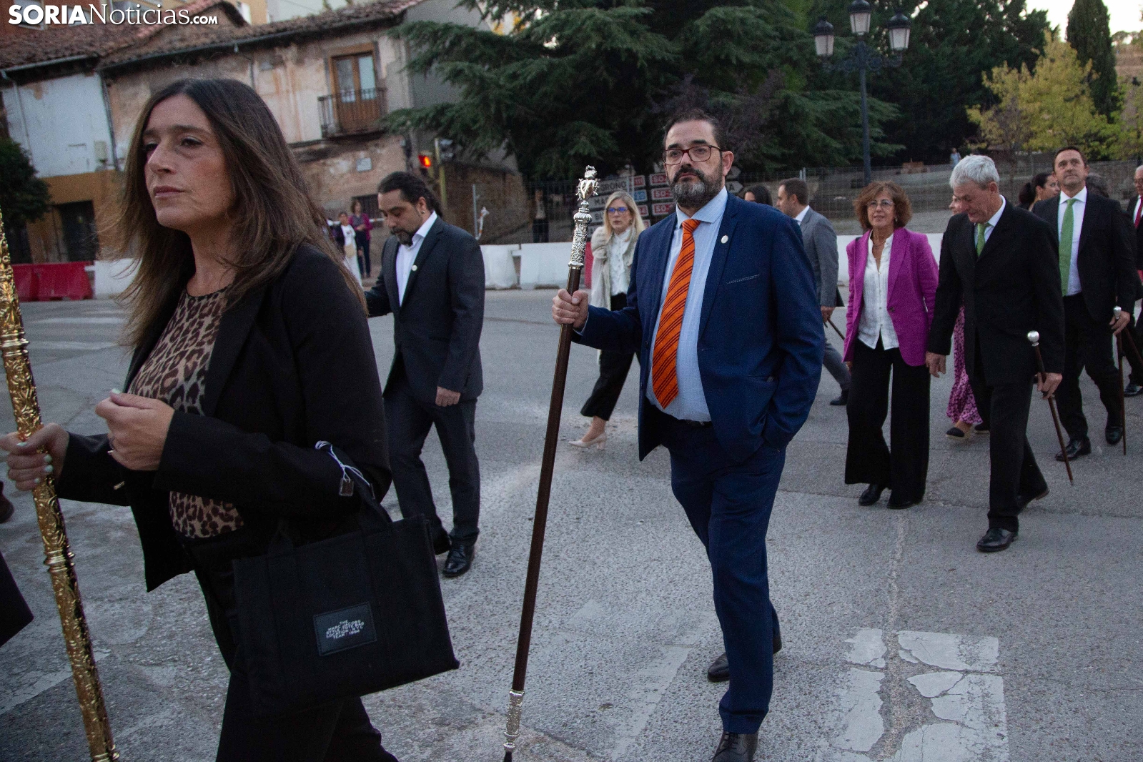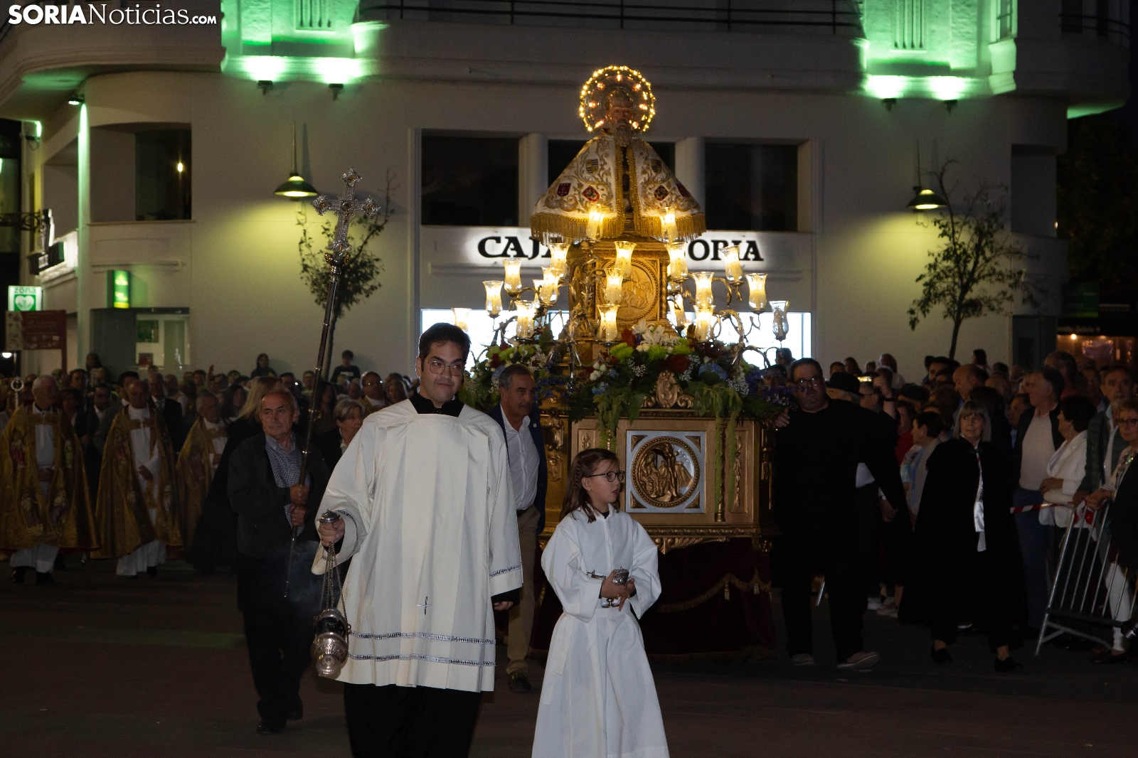 Soria ha celebrado este jueves, 2 de octubre, el día grande de sus fiestas patronales en honor a San Saturio. Como marca la tradición, cientos de sorianos y visitantes se han congregado en el entorno de la concatedral de San Pedro para acompañar la imagen del Santo en su solemne procesión. Un acto cargado de devoción y emoción que ha culminado con el estruendo de la tradicional Quema de la Traca, con el Santo puesto en la Plaza Mariano Granados encarado hacia el Collado, un momento que pone el broche sonoro a la jornada más especial para la capital.