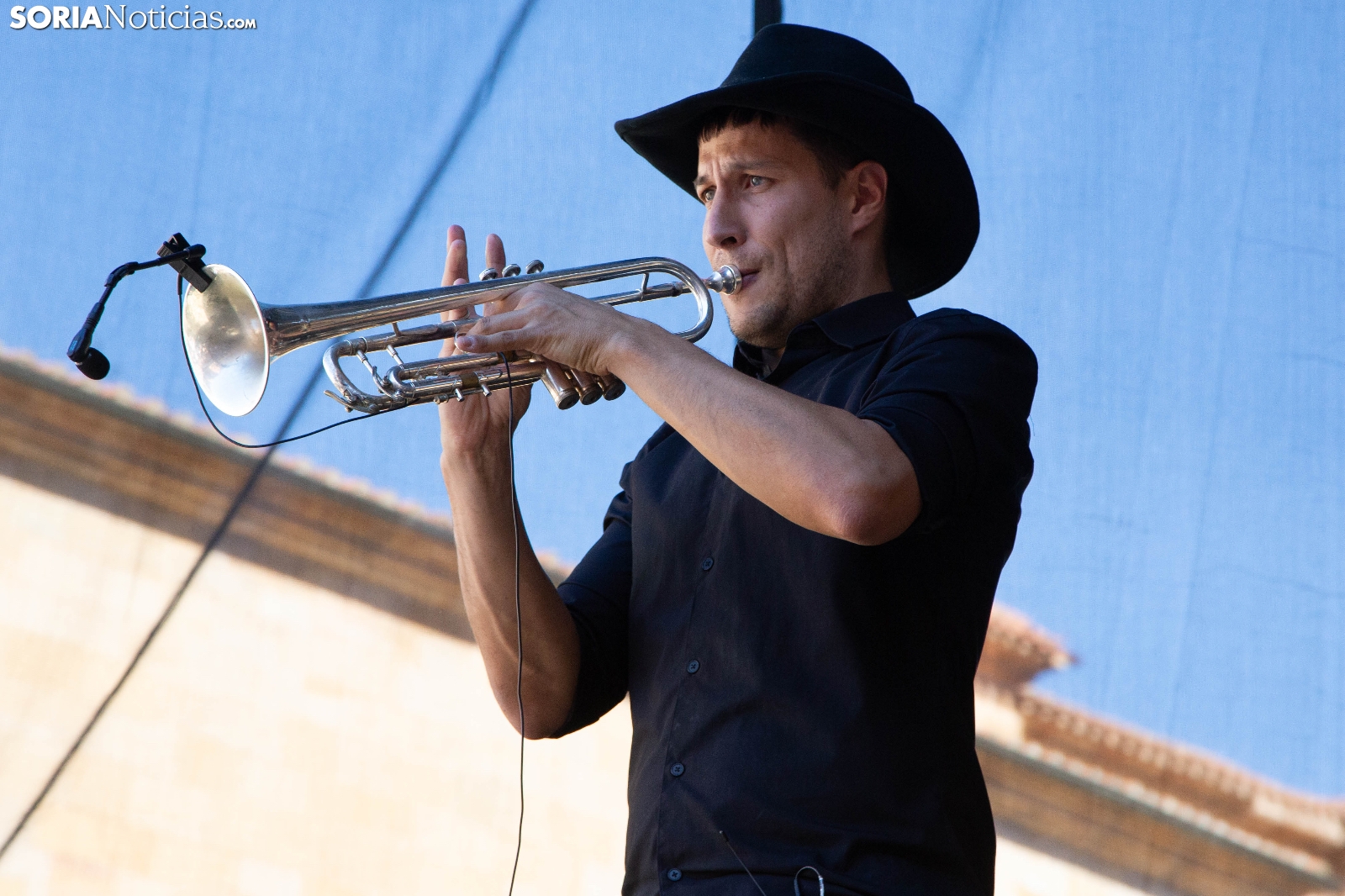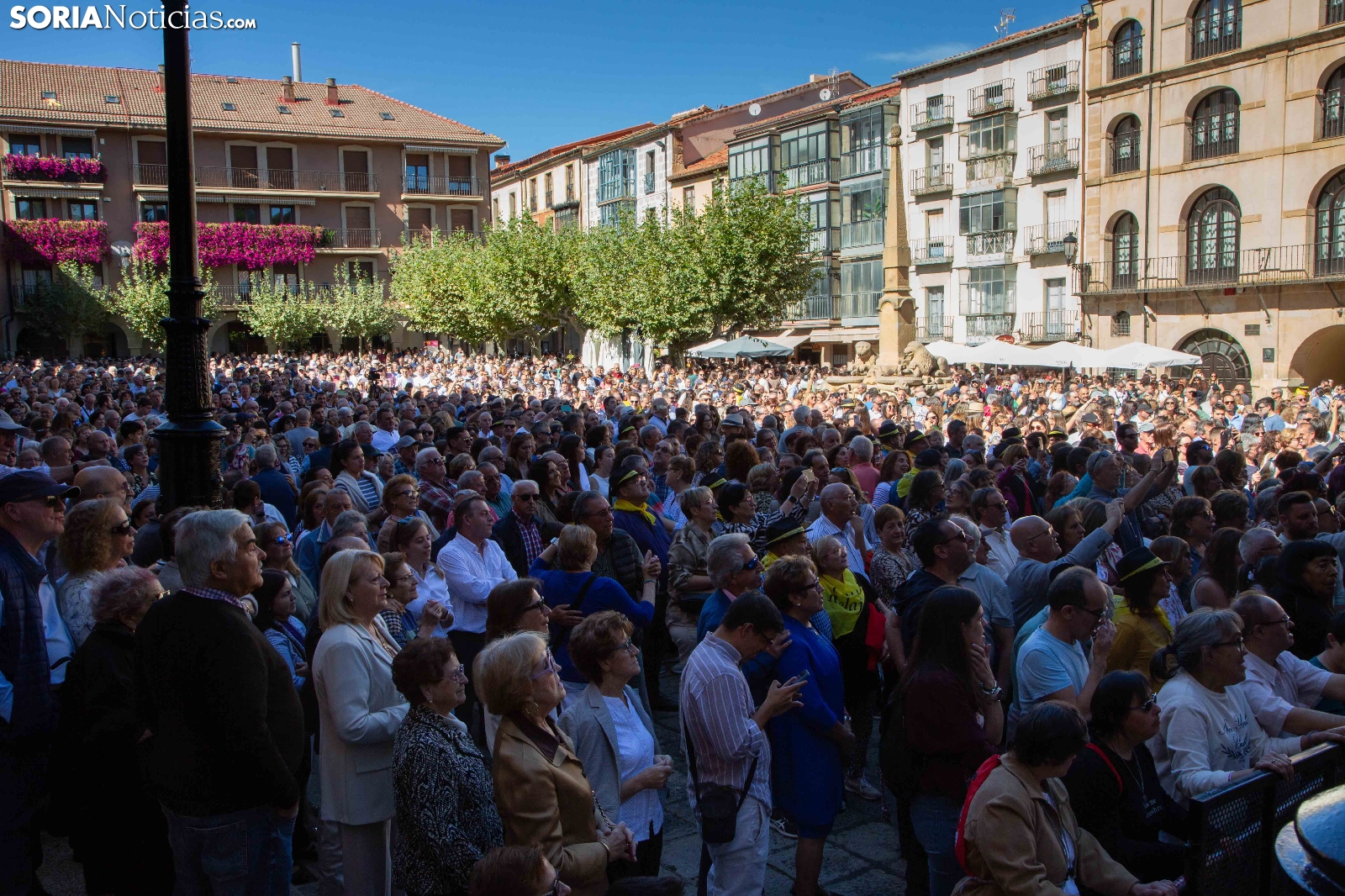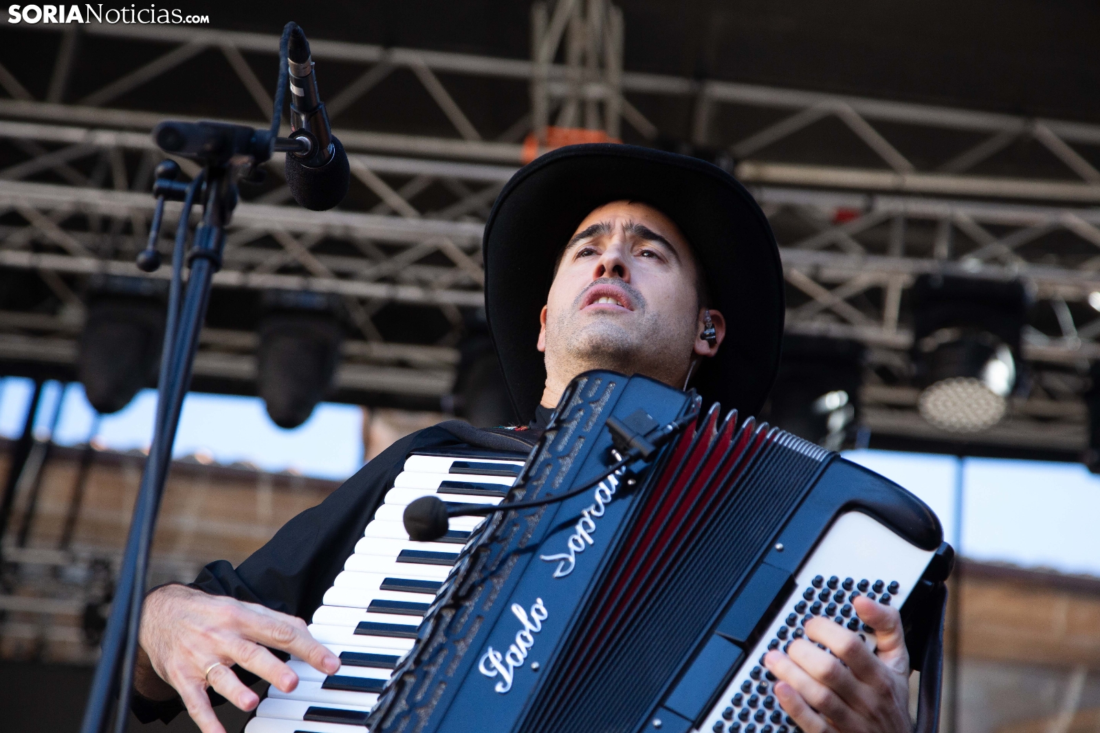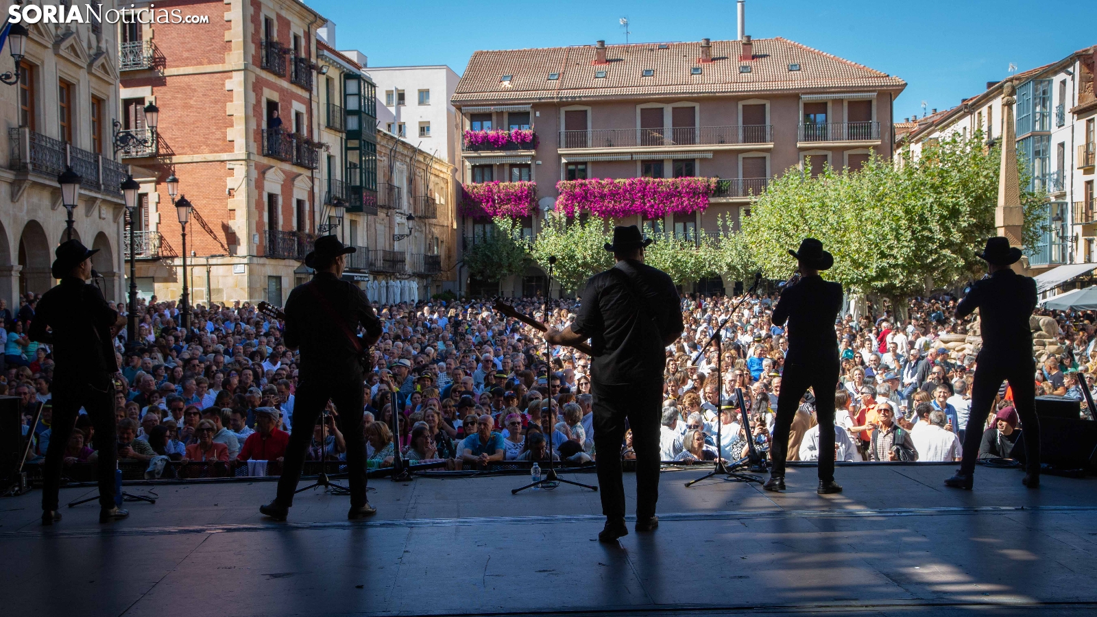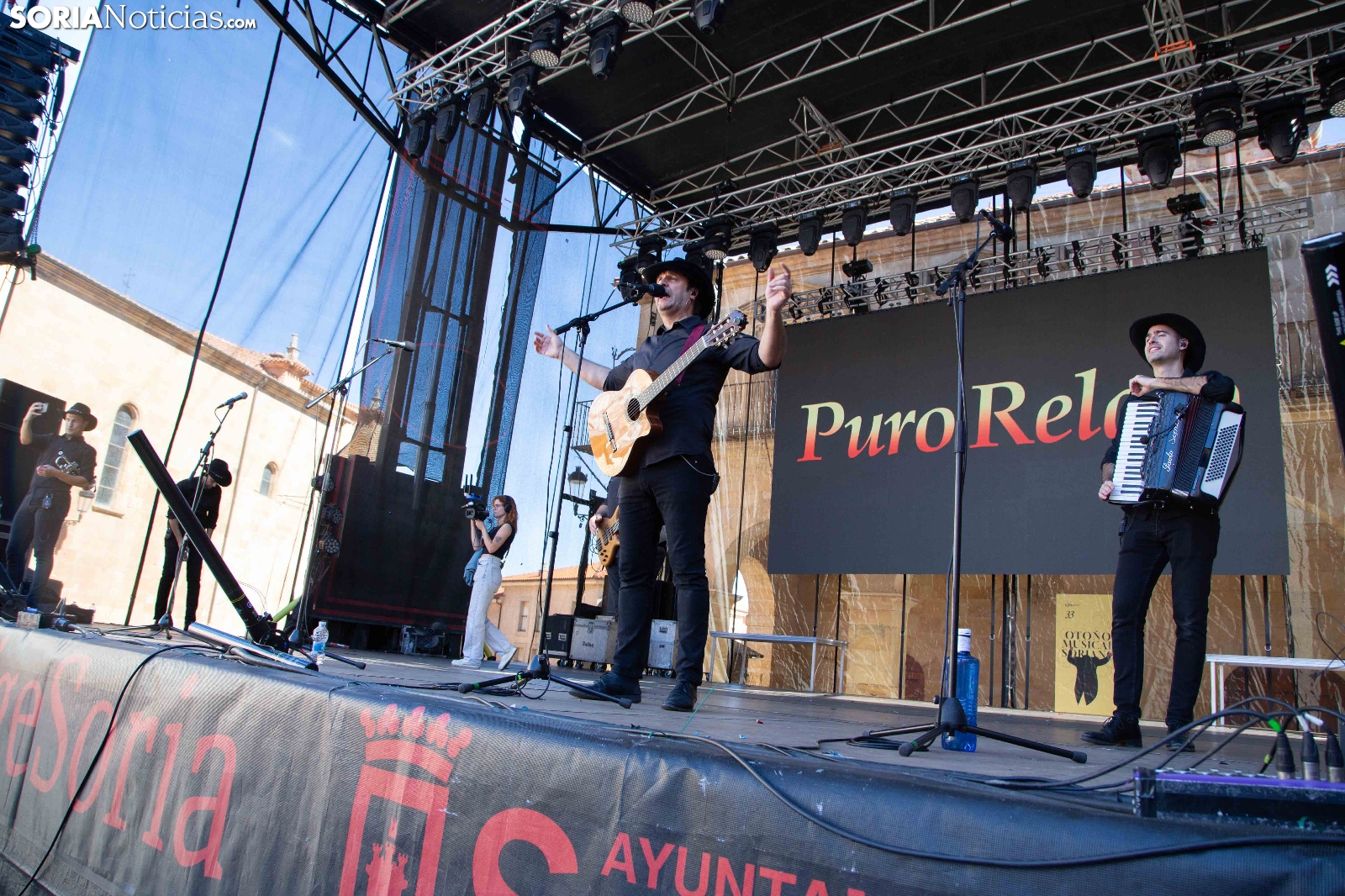 La Plaza Mayor de Soria ha sido el corazón de la celebración de San Saturio durante el mediodía de hoy. El esperado concierto del grupo Puro Relajo ha llenado por completo el céntrico espacio de sorianos y visitantes que no han querido perderse una de las citas musicales más destacadas del programa festivo. Al ritmo de sus conocidas y enérgicas rancheras, la formación ha hecho vibrar al público, que se ha entregado desde el primer momento animándose a cantar los estribillos y a bailar en un ambiente de gran alegría. Este vermú-concierto se consolida como un acto de gran éxito popular que pone la banda sonora al día grande de la capital, demostrando la excelente acogida que la música del grupo tiene entre los asistentes de todas las edades.