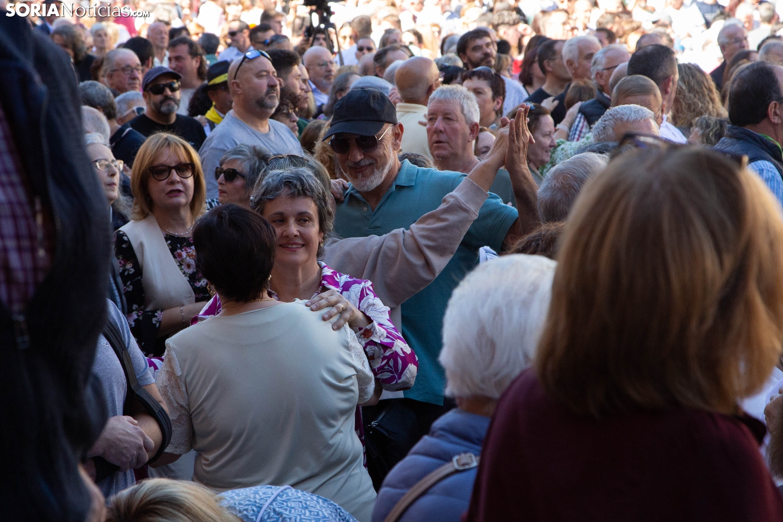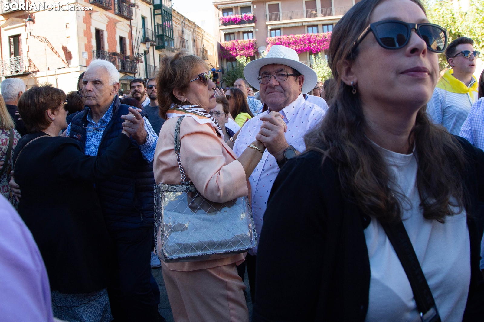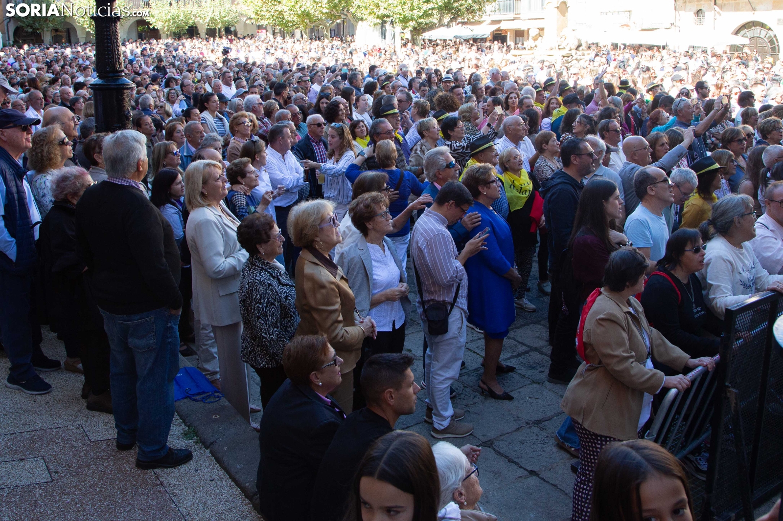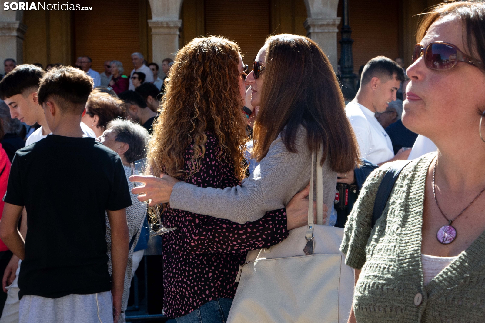 La Plaza Mayor de Soria ha sido el corazón de la celebración de San Saturio durante el mediodía de hoy. El esperado concierto del grupo Puro Relajo ha llenado por completo el céntrico espacio de sorianos y visitantes que no han querido perderse una de las citas musicales más destacadas del programa festivo. Al ritmo de sus conocidas y enérgicas rancheras, la formación ha hecho vibrar al público, que se ha entregado desde el primer momento animándose a cantar los estribillos y a bailar en un ambiente de gran alegría. Este vermú-concierto se consolida como un acto de gran éxito popular que pone la banda sonora al día grande de la capital, demostrando la excelente acogida que la música del grupo tiene entre los asistentes de todas las edades.