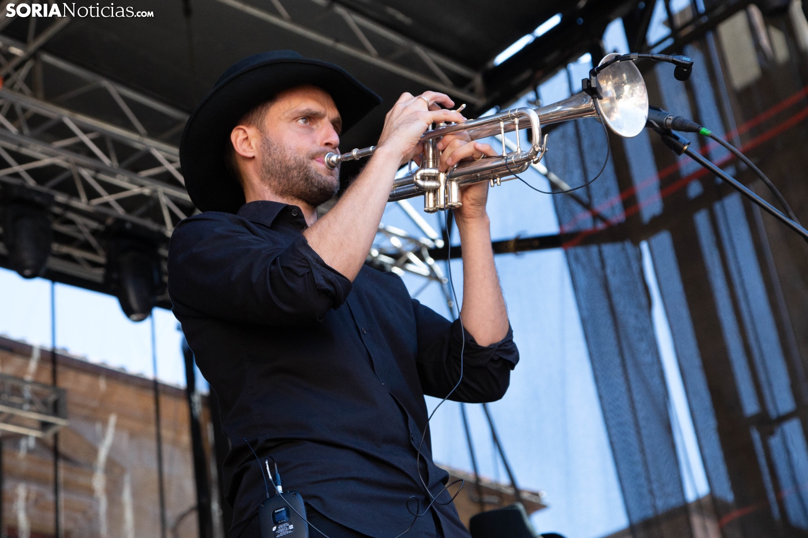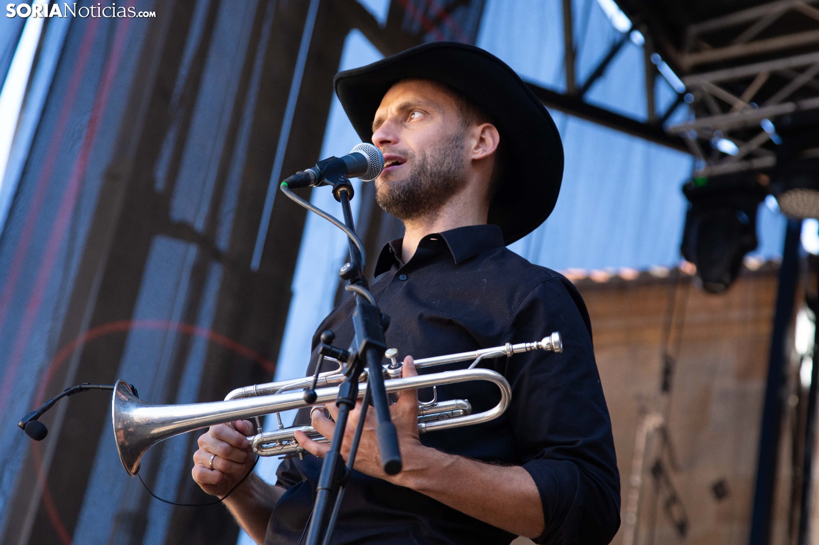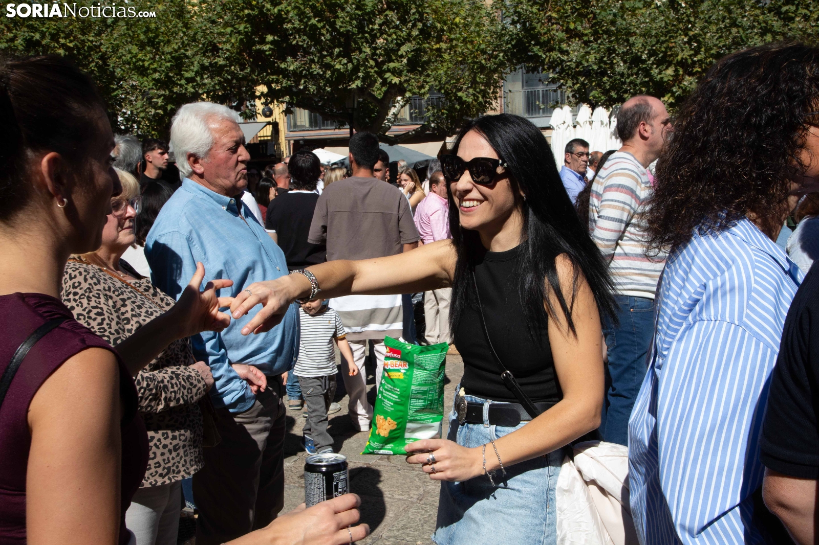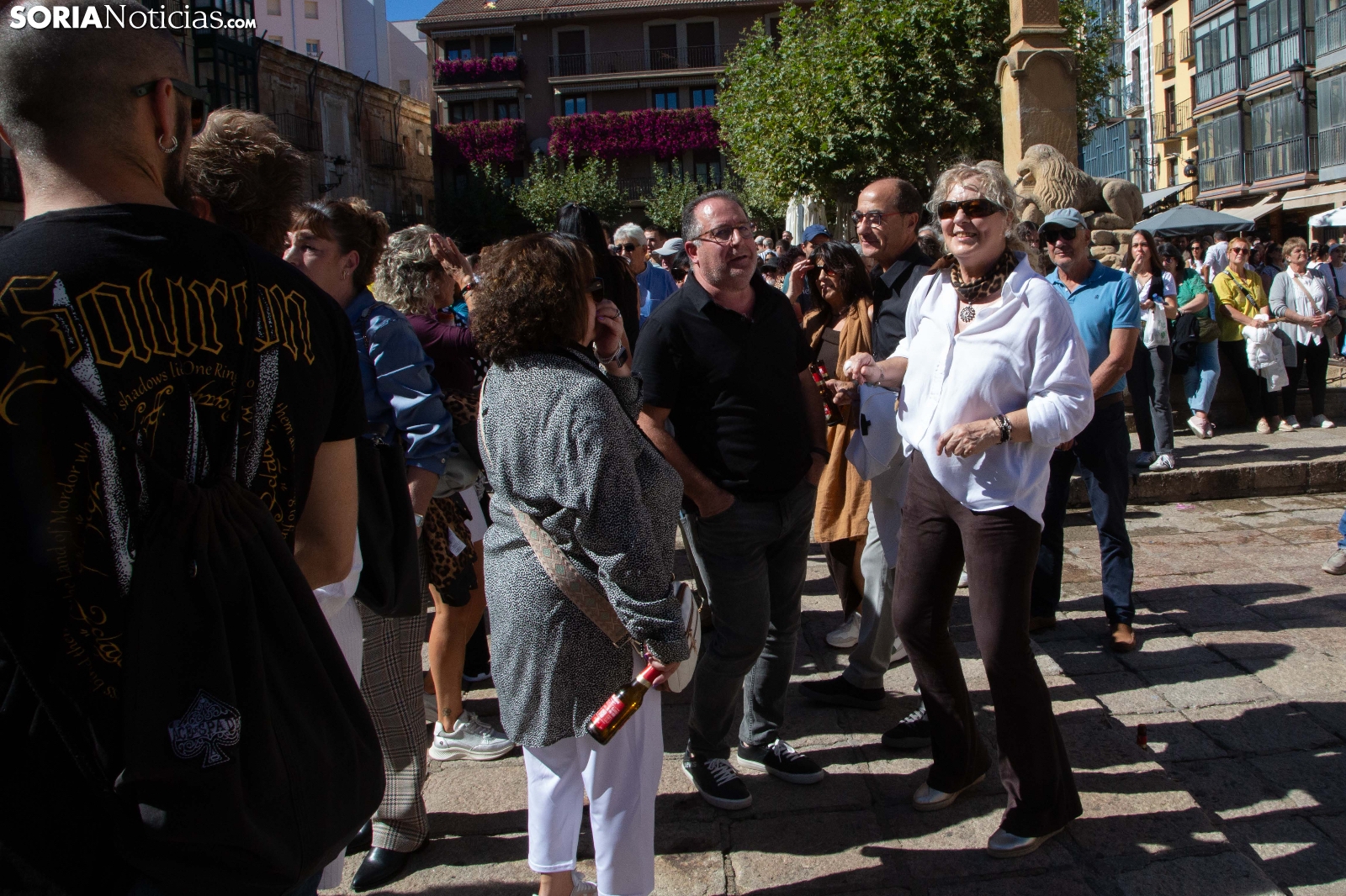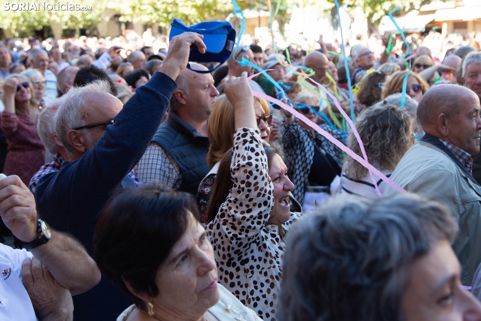 La Plaza Mayor de Soria ha sido el corazón de la celebración de San Saturio durante el mediodía de hoy. El esperado concierto del grupo Puro Relajo ha llenado por completo el céntrico espacio de sorianos y visitantes que no han querido perderse una de las citas musicales más destacadas del programa festivo. Al ritmo de sus conocidas y enérgicas rancheras, la formación ha hecho vibrar al público, que se ha entregado desde el primer momento animándose a cantar los estribillos y a bailar en un ambiente de gran alegría. Este vermú-concierto se consolida como un acto de gran éxito popular que pone la banda sonora al día grande de la capital, demostrando la excelente acogida que la música del grupo tiene entre los asistentes de todas las edades.