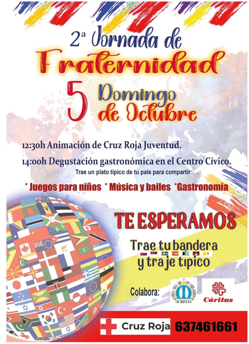 Al día siguiente, el domingo 5 de octubre, la propuesta cambia de registro para centrarse en la convivencia y el intercambio cultural. El Salón del Centro Cívico será el escenario, a partir de las 12:30 horas, de la II Jornada de Fraternidad, un evento diseñado para fomentar la unión entre los vecinos. La jornada contará con una variada programación que incluye juegos, música, baile y gastronomía. Además, la animación correrá a cargo de Cruz Roja Juventud, garantizando un ambiente festivo para todas las edades. Desde la organización se ha lanzado una invitación especial a los asistentes para que acudan con su bandera, traje típico y un plato de comida para compartir, enriqueciendo así el encuentro.