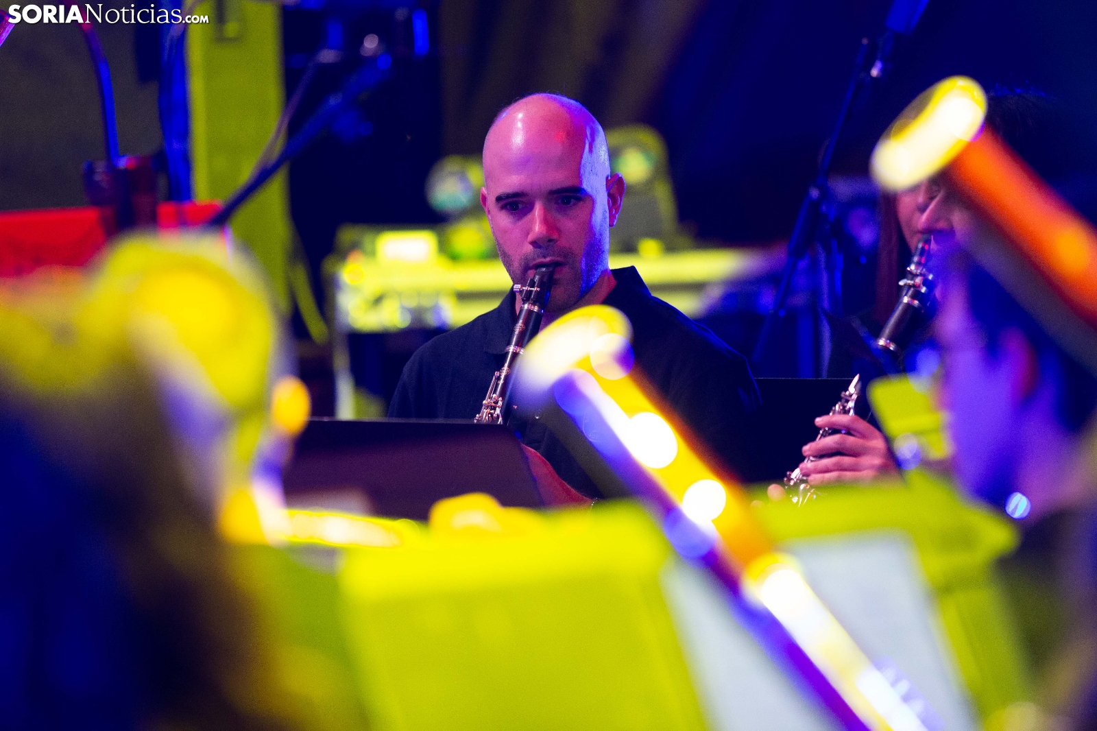 El concierto de la Banda con artista invitado por San Saturio ha ido este año un poco más lejos, explorando los límites de la lógica y el sentido común con un resultado sorprendente. ¡Qué invento el poliespán! Cientos de soriano han abarrotado la plaza Mayor, no en vano, ambas formaciones cuentan con fans incondicionales en la ciudad del Duero. Junto a ellos, curiosos y amigos de la cultura gratis se han congregado para presenciar un espectáculo diferente.