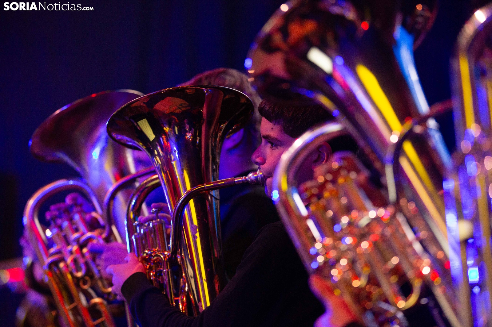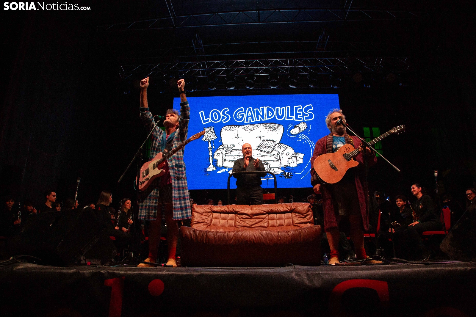 Dun Gandul, Tobo Gandul y José Manuel Aceña. La elegancia y la pulcritud junto a la comunidad y la rebeldía. El atril junto al sofá y la partitura junto a su enemiga, la improvisación. Dos formas muy distintas y, aparentemente incompatibles, de entender la música juntas. Soria ha seguido hoy los pasos de Teruel y ha puesto a su Banda Municipal de Música a tocar junto a Los Gandules.