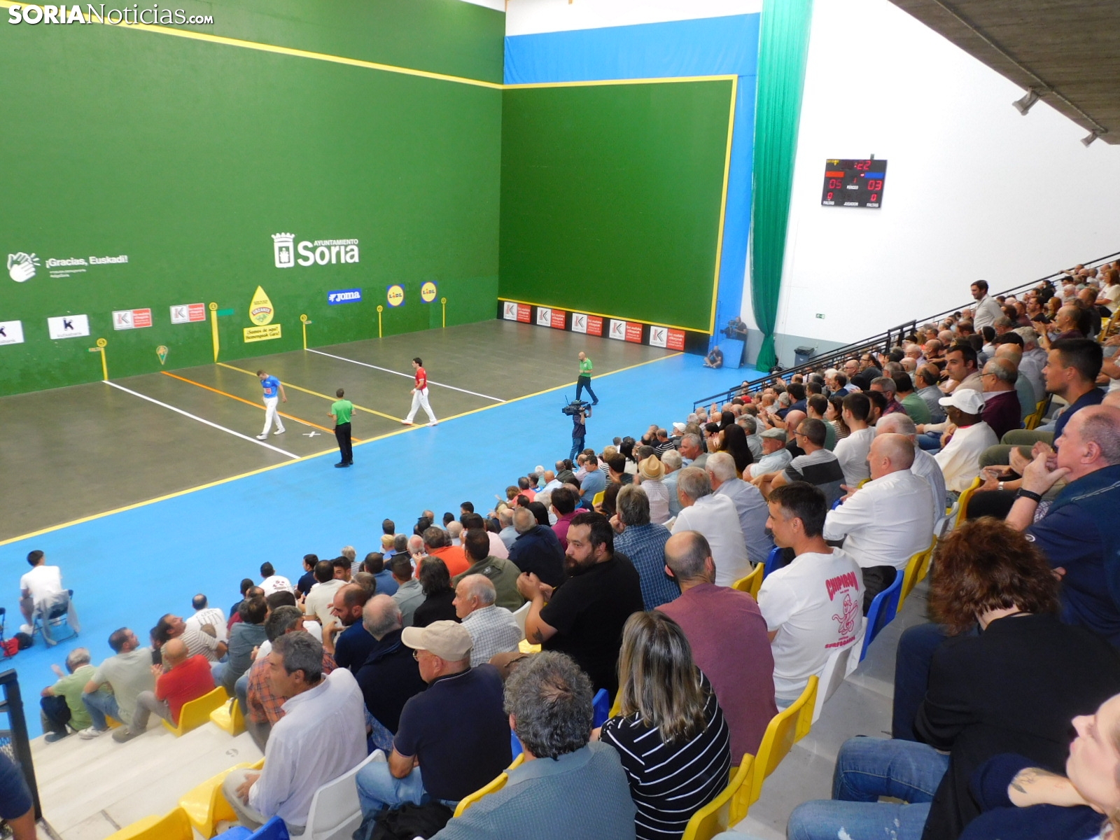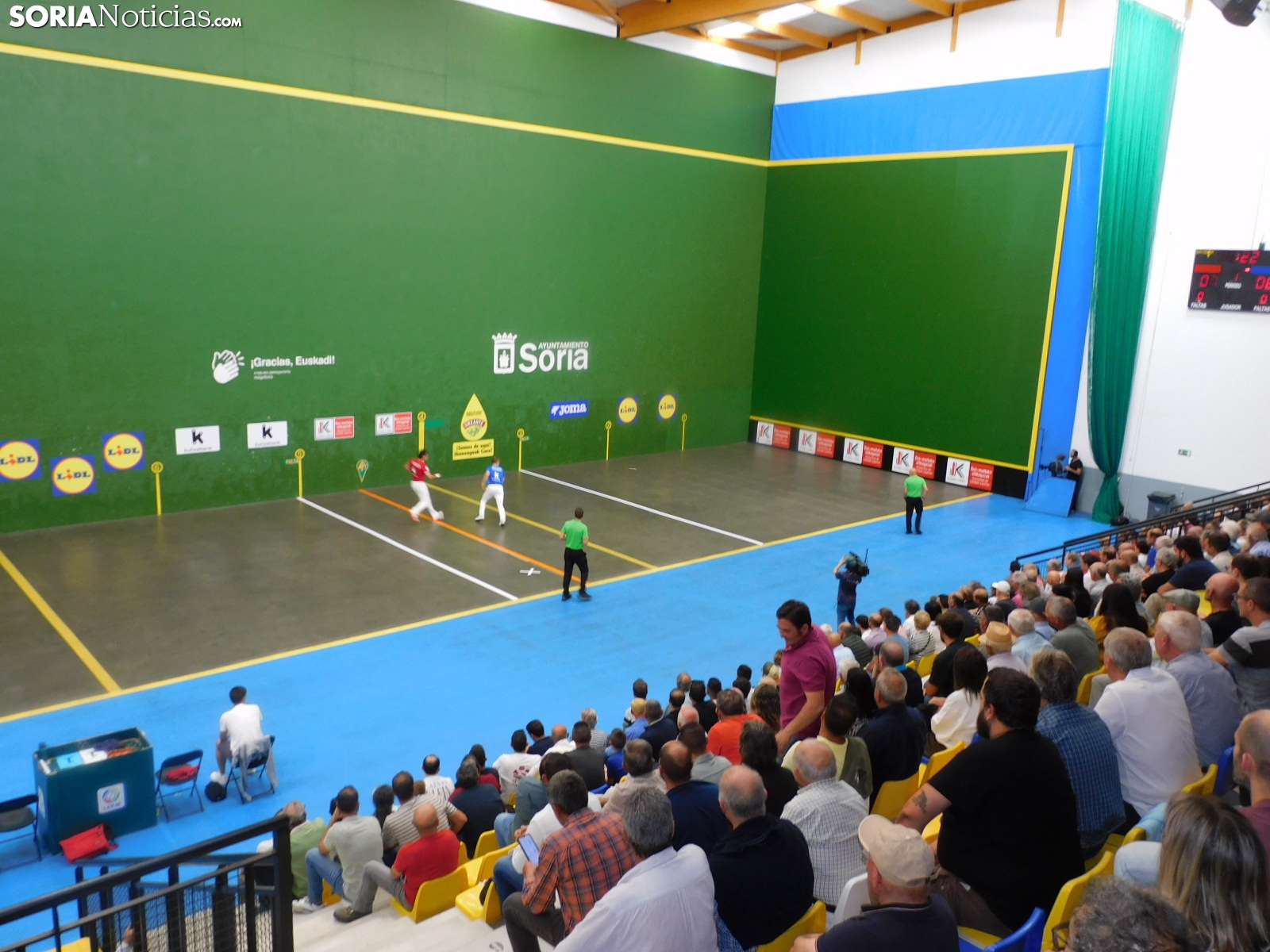 El trofeo de San Saturio de pelota mano se ha celebrado con un enorme éxito esta tarde en el frontón de la Juventud. Con unas gradas llenas hasta la bandera, la pista soriana ha acogido a alguno de los mejores pelotaris del panorama nacional. El ambiente durante toda la jornada ha sido espectacular con gente de todas las edades, dándolo todo por una práctica con enorme arraigo en la provincia.