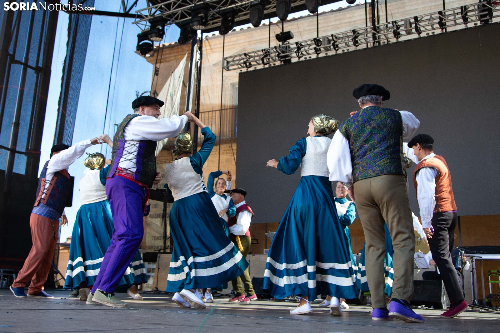 La XXVIII edición del Festival de Música y Danza Tradicional ha llevado al centro de Soria durante las fiestas de San Saturio los mejores bailes regionales del País Vasco y de Valencia. Mendi Alde Euskal Dantza Taldea (Santurtzi, Vizcaya) y La Vihuela (Valencia) han acompañado al Grupo de Danzas Sorianas en un desfile que ha comenzado en la plaza Mariano Granados y que ha finalizado en la plaza Mayor.