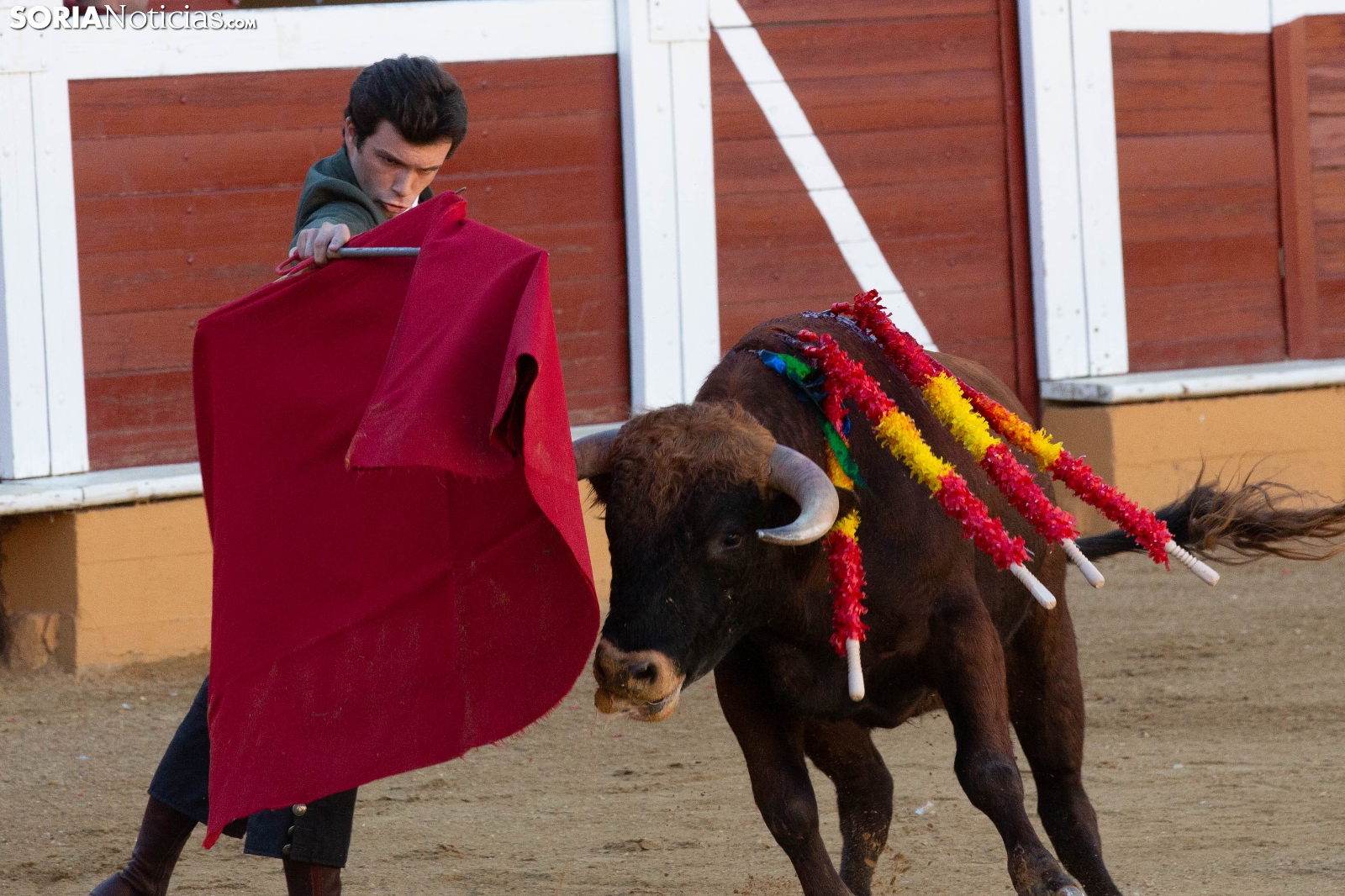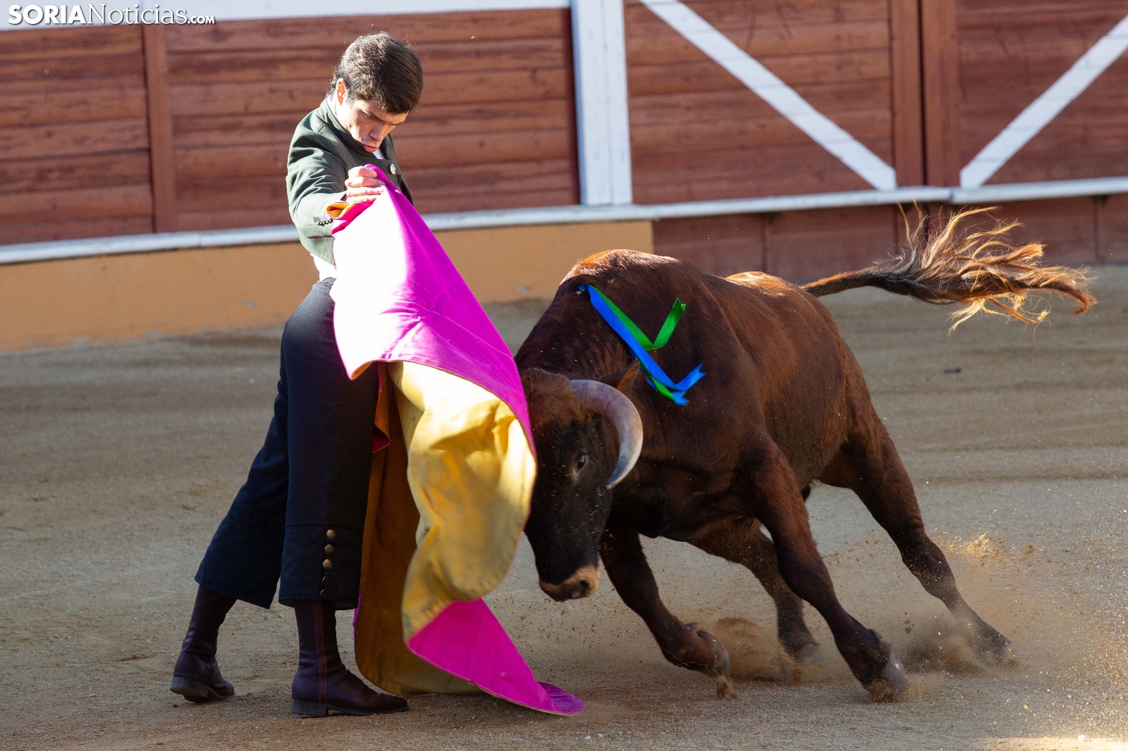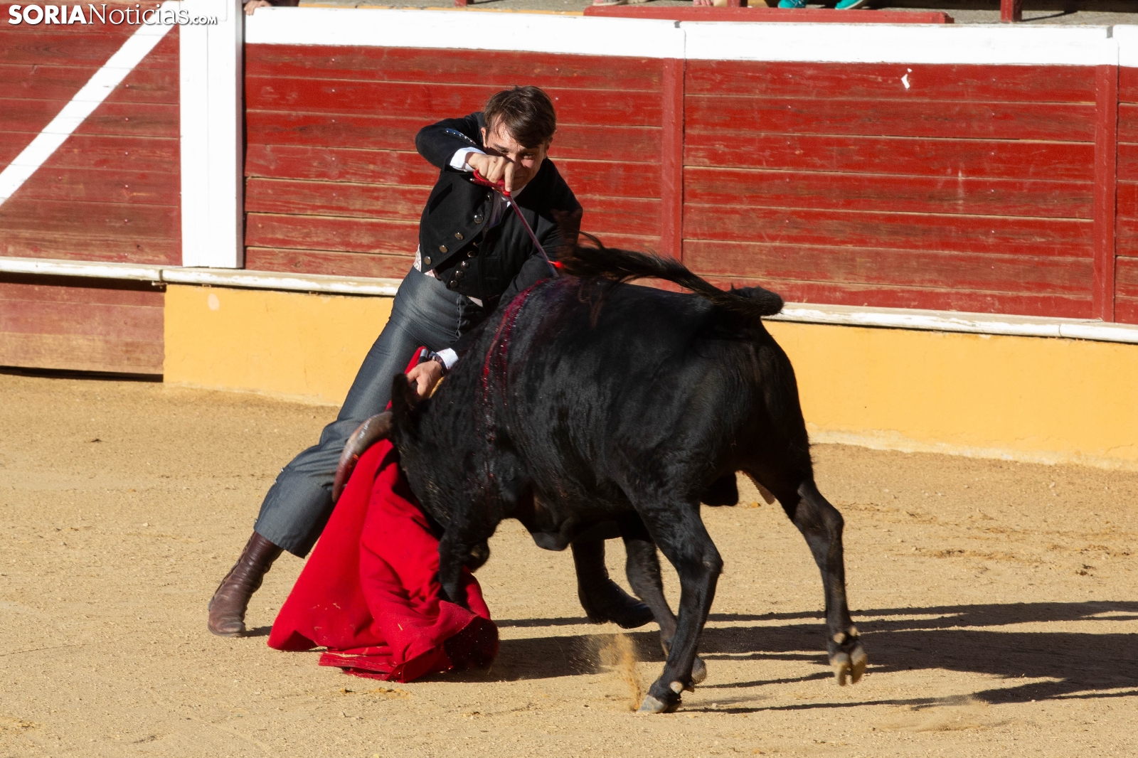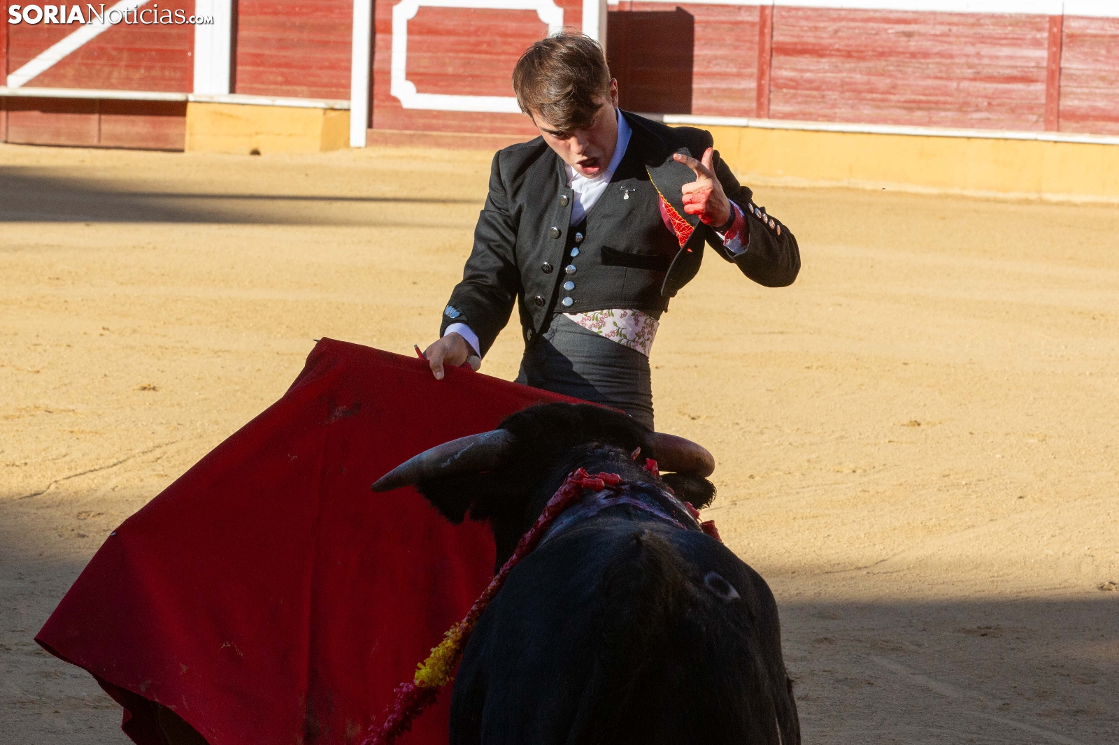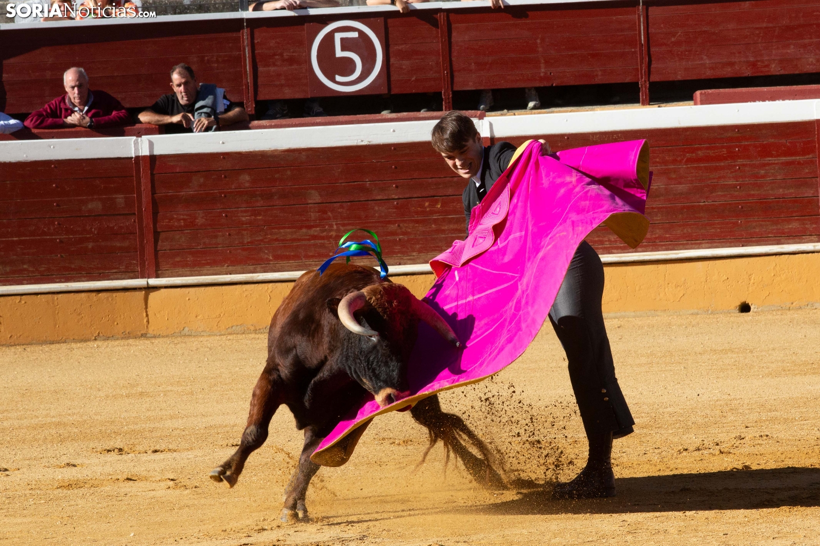 El coso de San Benito ha acogido esta tarde una novillada en clase práctica en la que han participado varias promesas del mundo del toreo nacional. Con un tercio de entrada en la plaza soriana, los futuros toreros han dado muestras de su proyección delante de un público entregado.