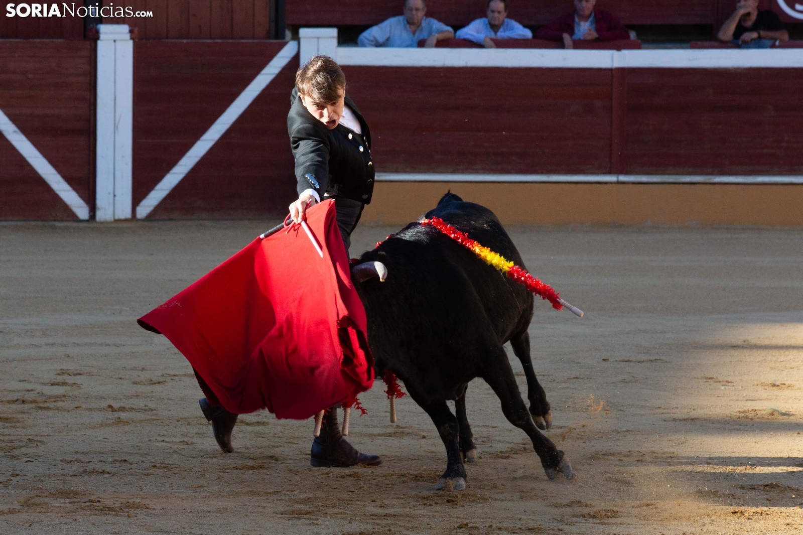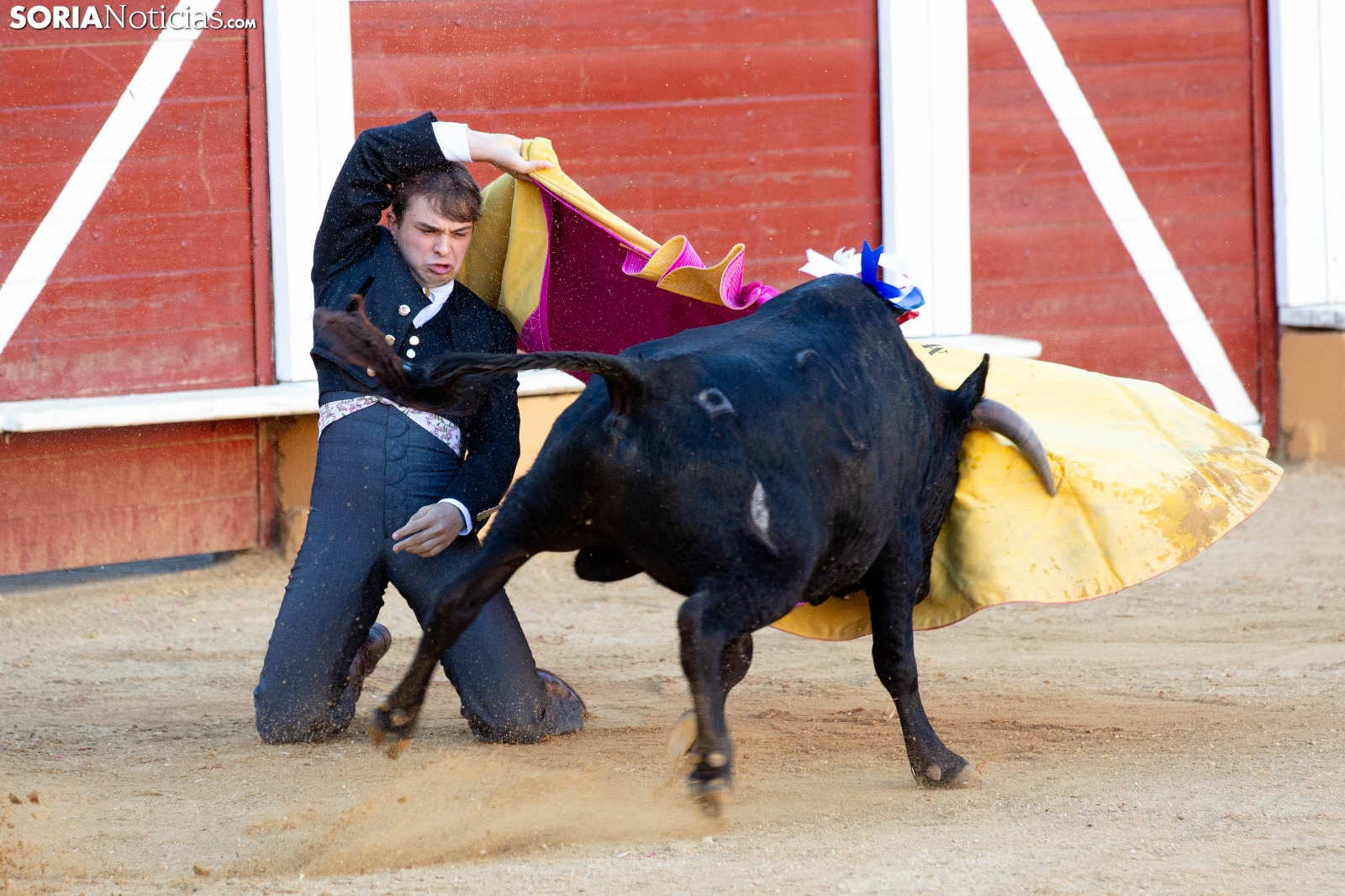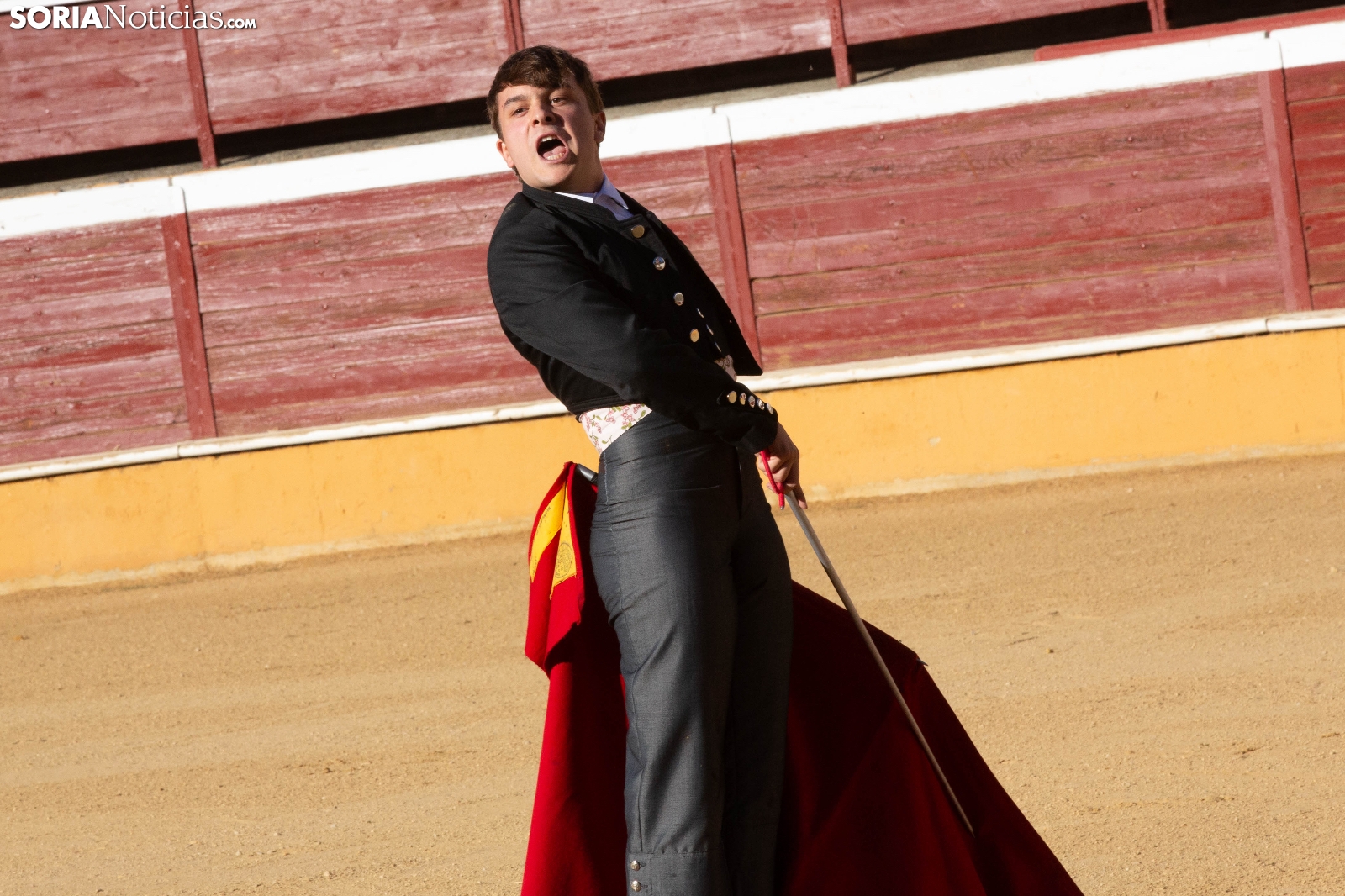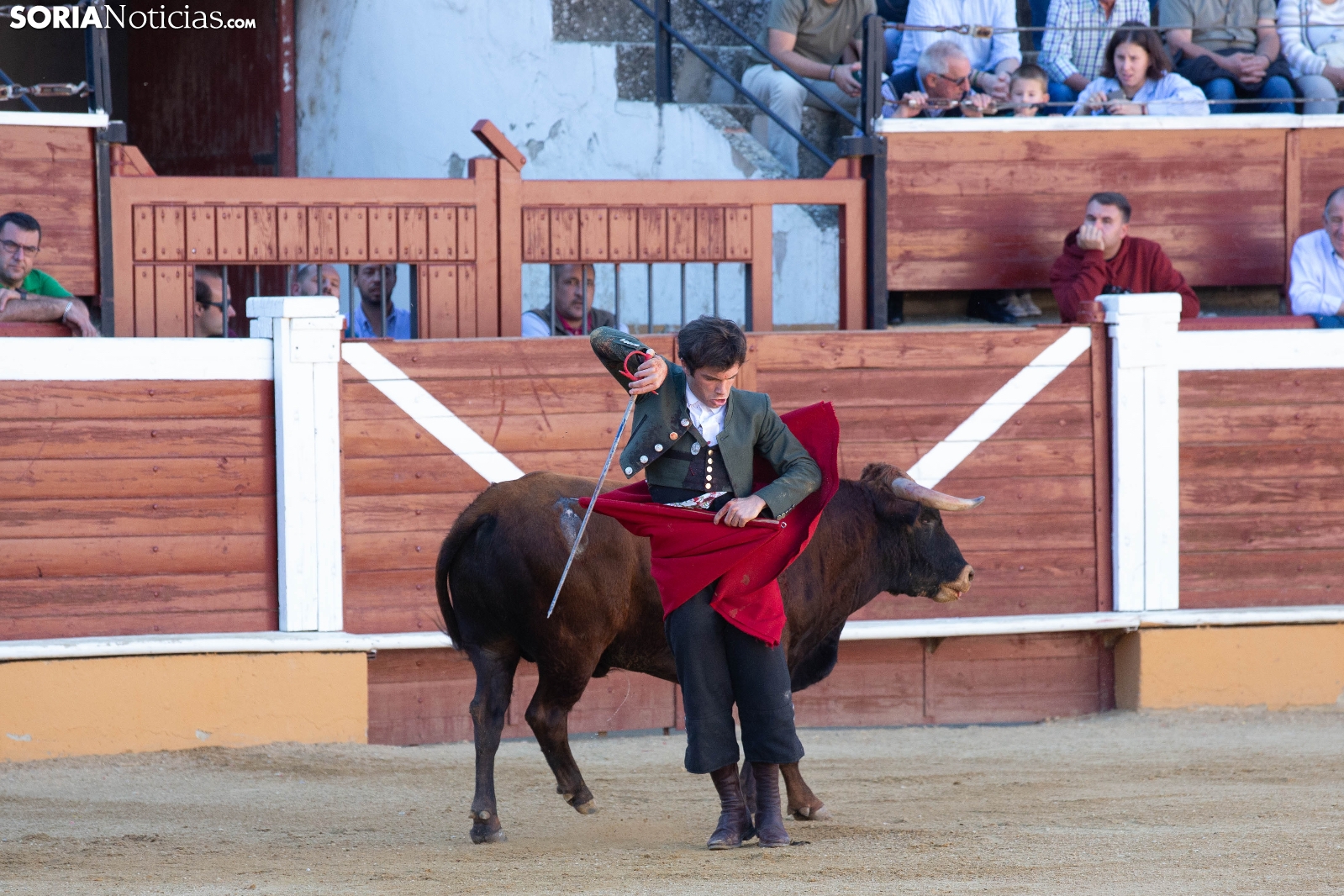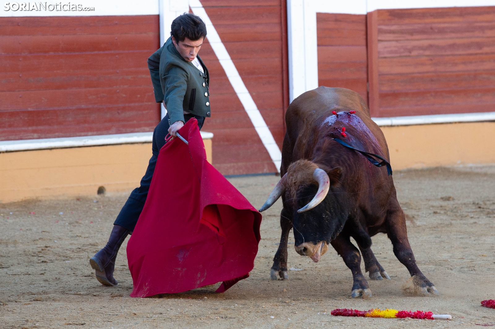 El coso de San Benito ha acogido esta tarde una novillada en clase práctica en la que han participado varias promesas del mundo del toreo nacional. Con un tercio de entrada en la plaza soriana, los futuros toreros han dado muestras de su proyección delante de un público entregado.