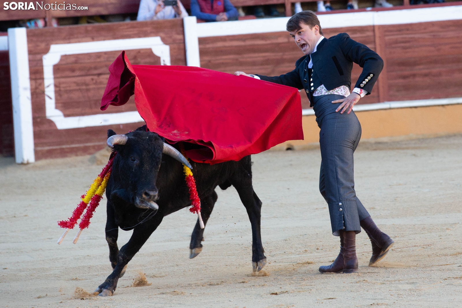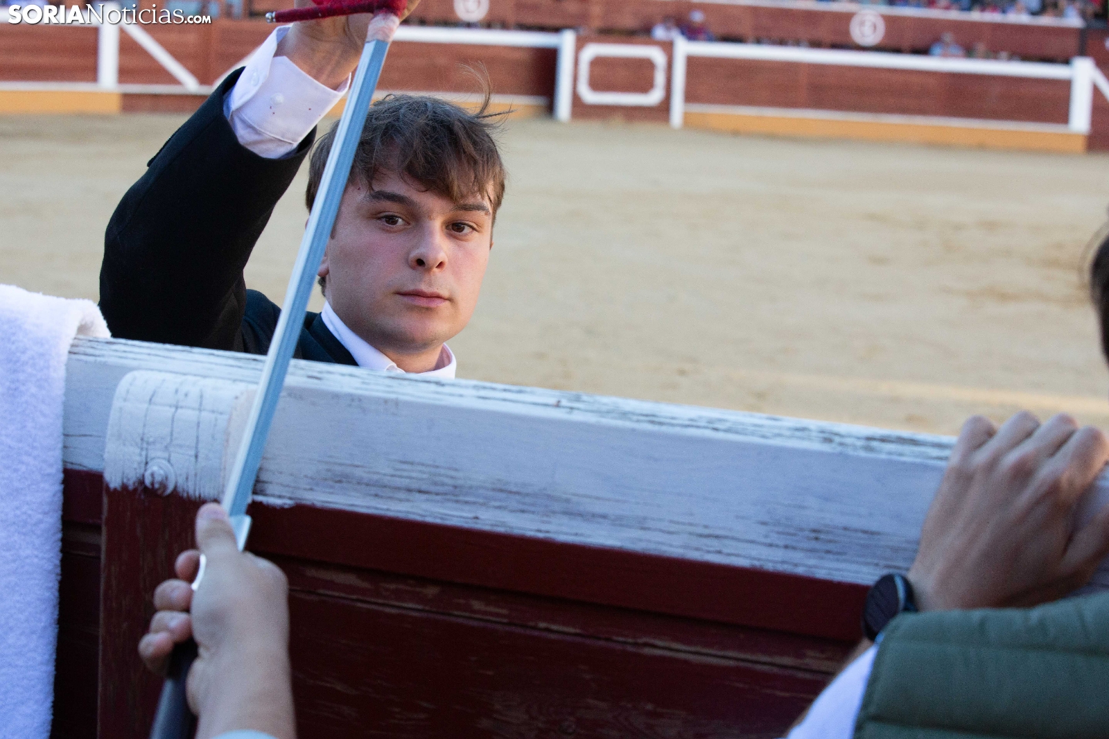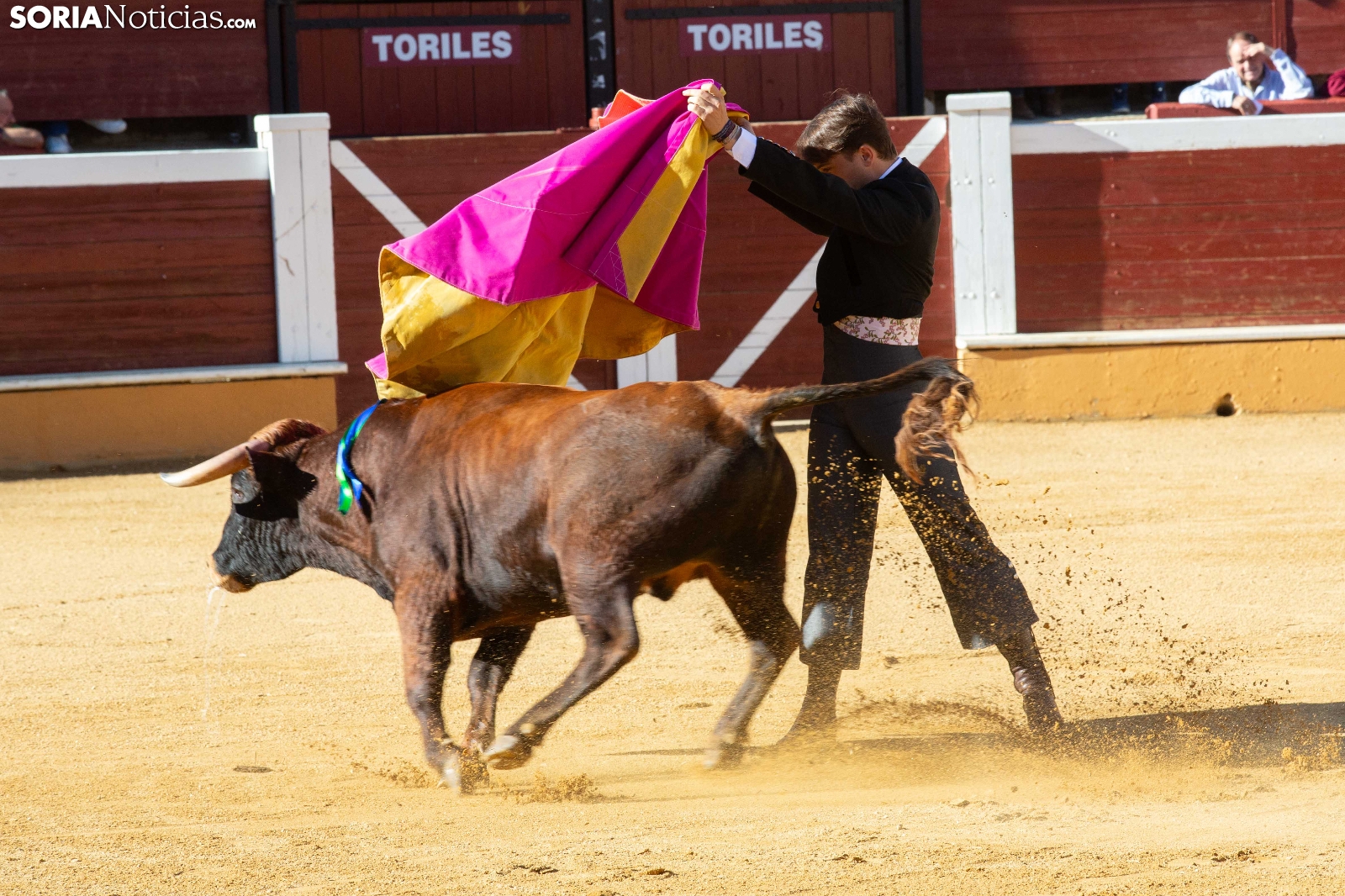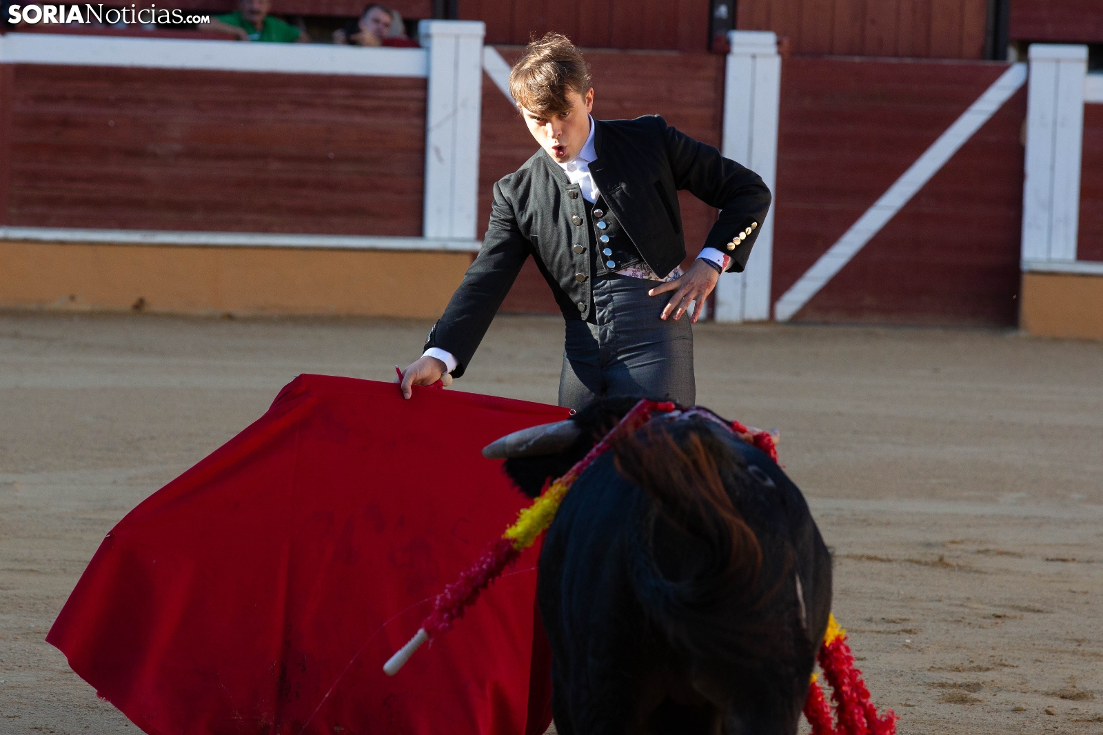 El coso de San Benito ha acogido esta tarde una novillada en clase práctica en la que han participado varias promesas del mundo del toreo nacional. Con un tercio de entrada en la plaza soriana, los futuros toreros han dado muestras de su proyección delante de un público entregado.