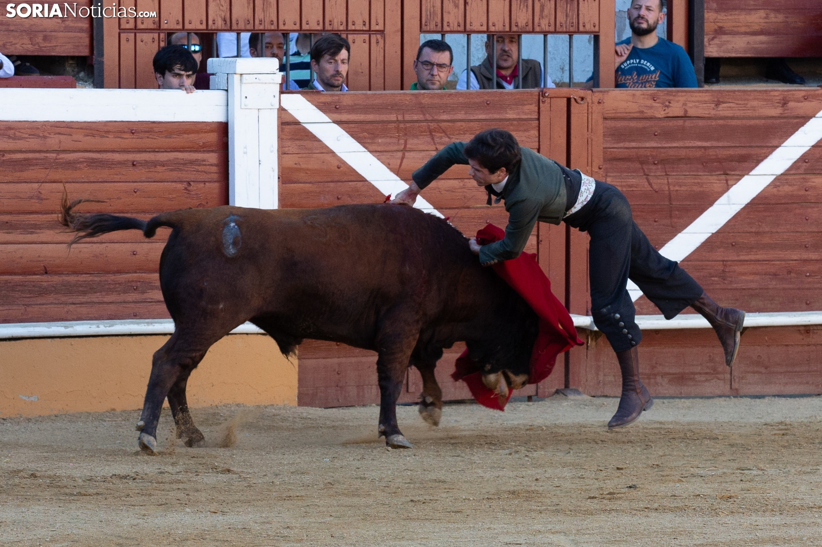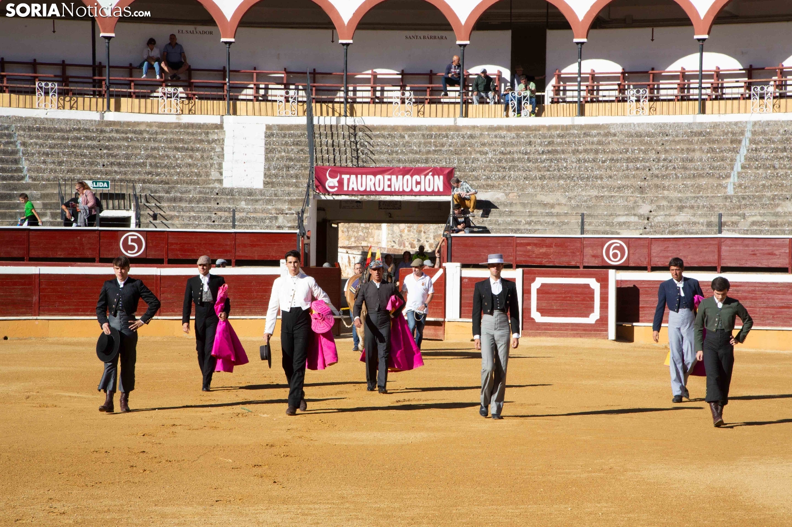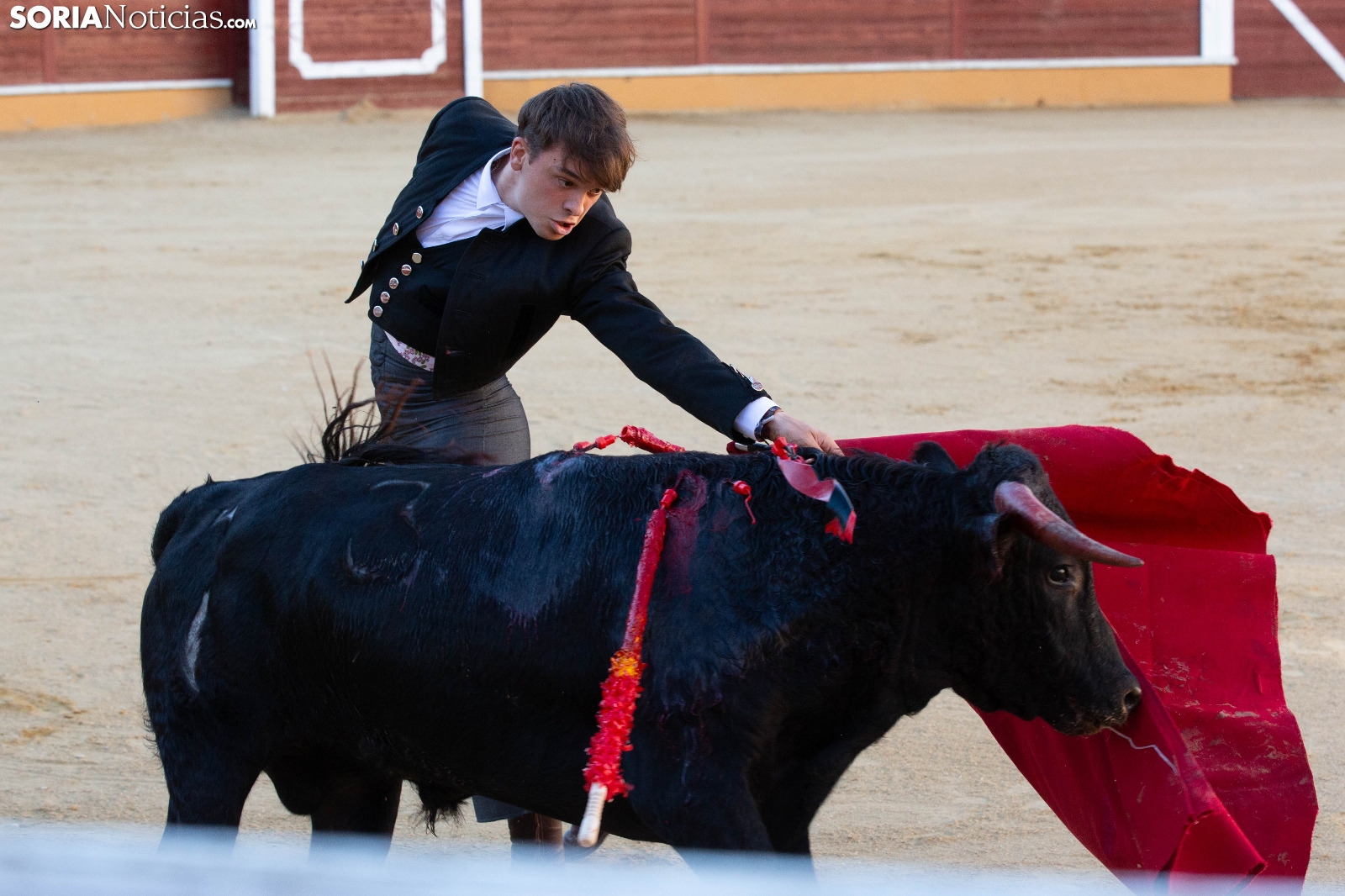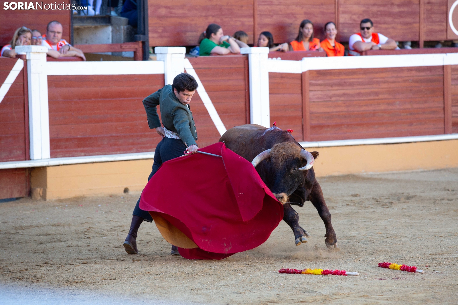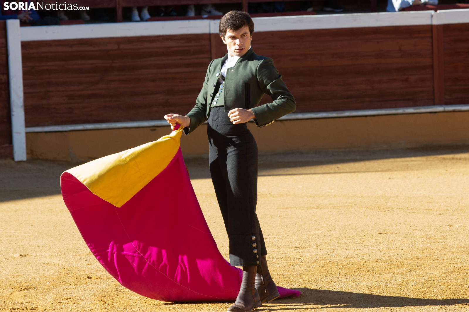El coso de San Benito ha acogido esta tarde una novillada en clase práctica en la que han participado varias promesas del mundo del toreo nacional. Con un tercio de entrada en la plaza soriana, los futuros toreros han dado muestras de su proyección delante de un público entregado.
