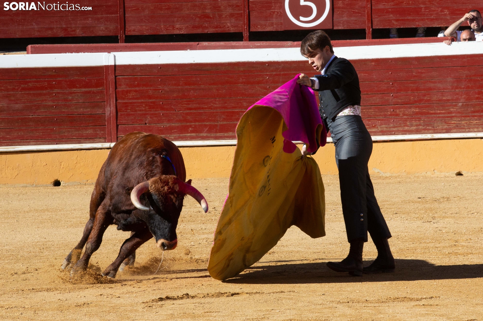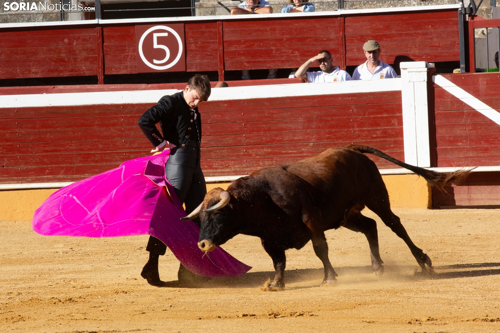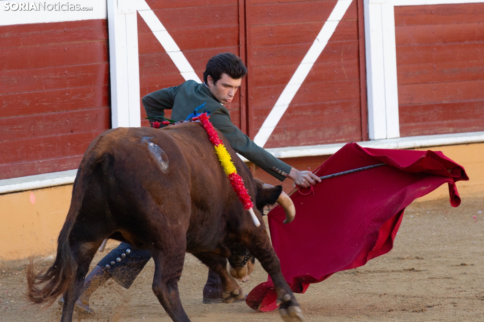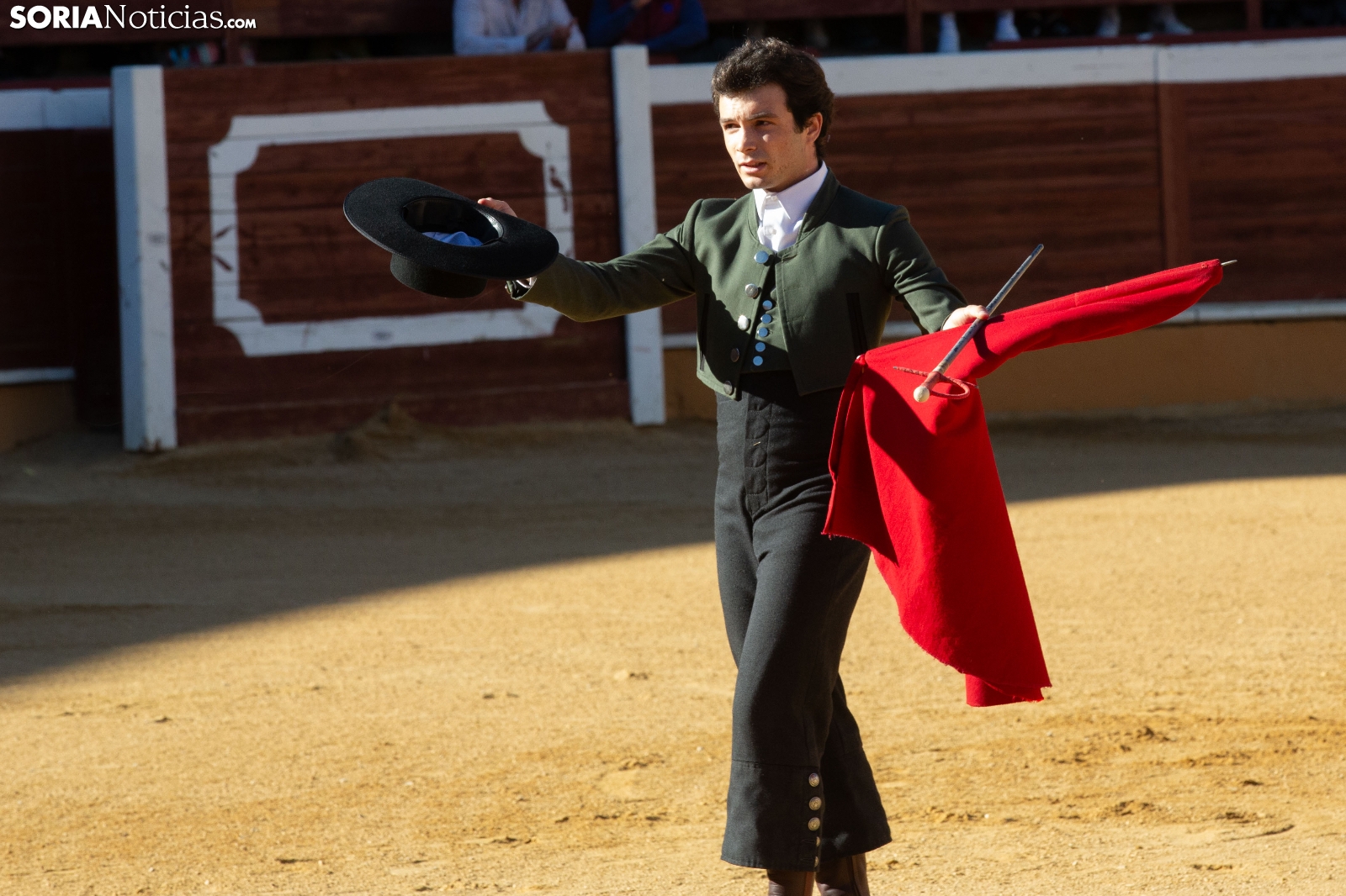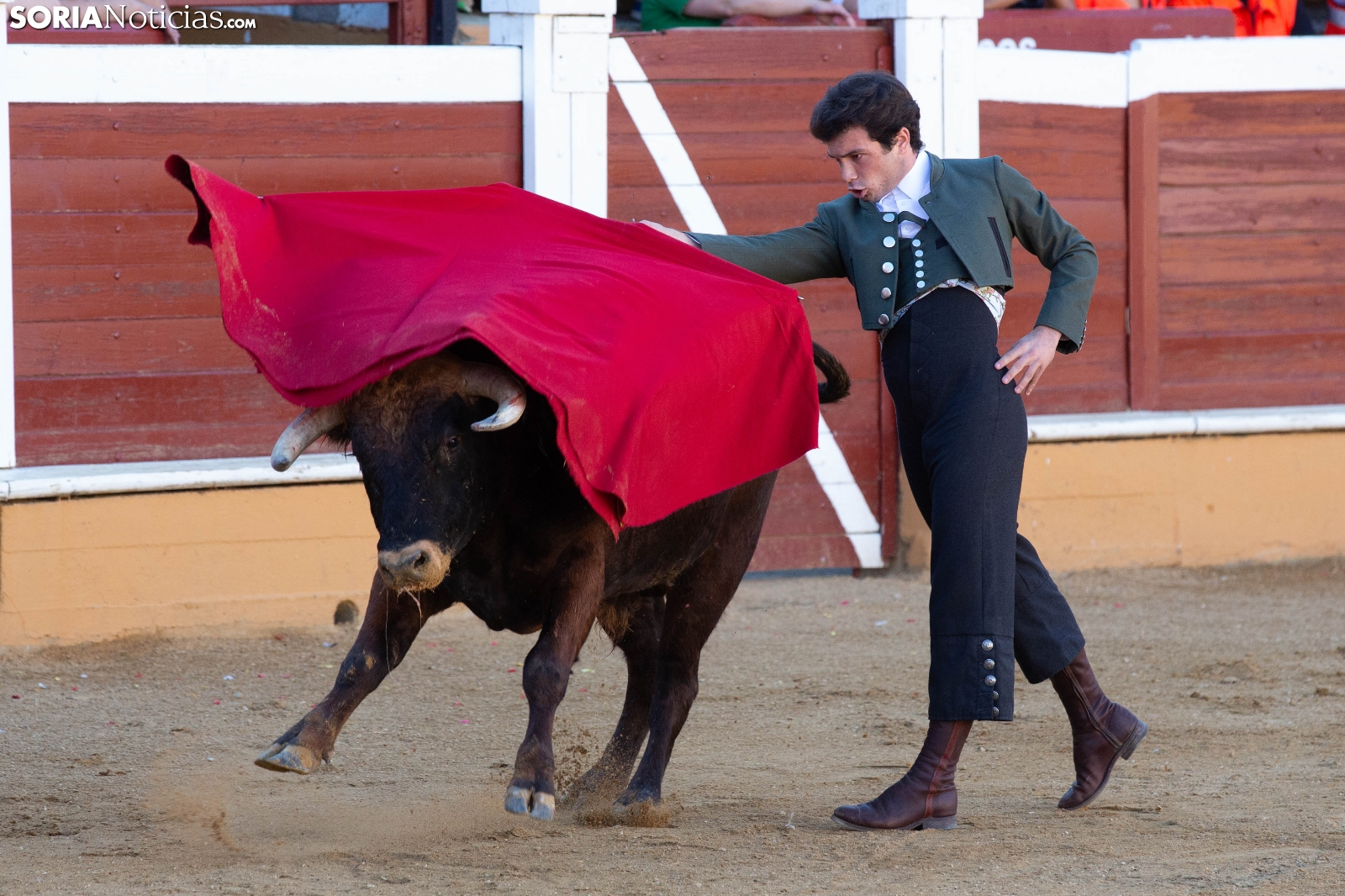 El coso de San Benito ha acogido esta tarde una novillada en clase práctica en la que han participado varias promesas del mundo del toreo nacional. Con un tercio de entrada en la plaza soriana, los futuros toreros han dado muestras de su proyección delante de un público entregado.