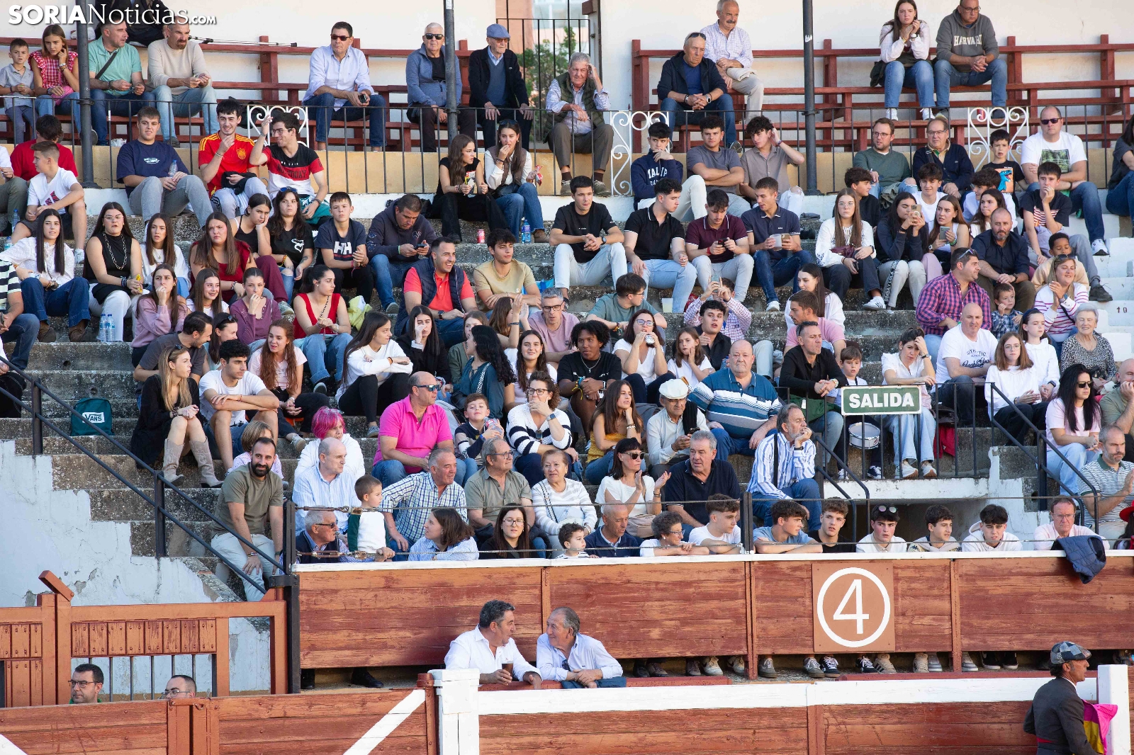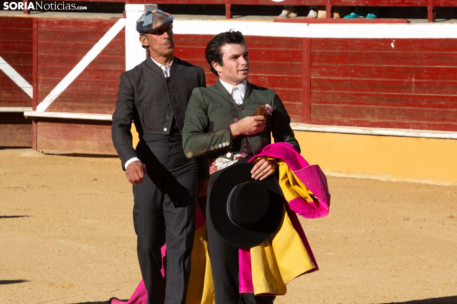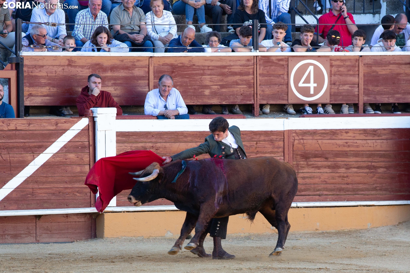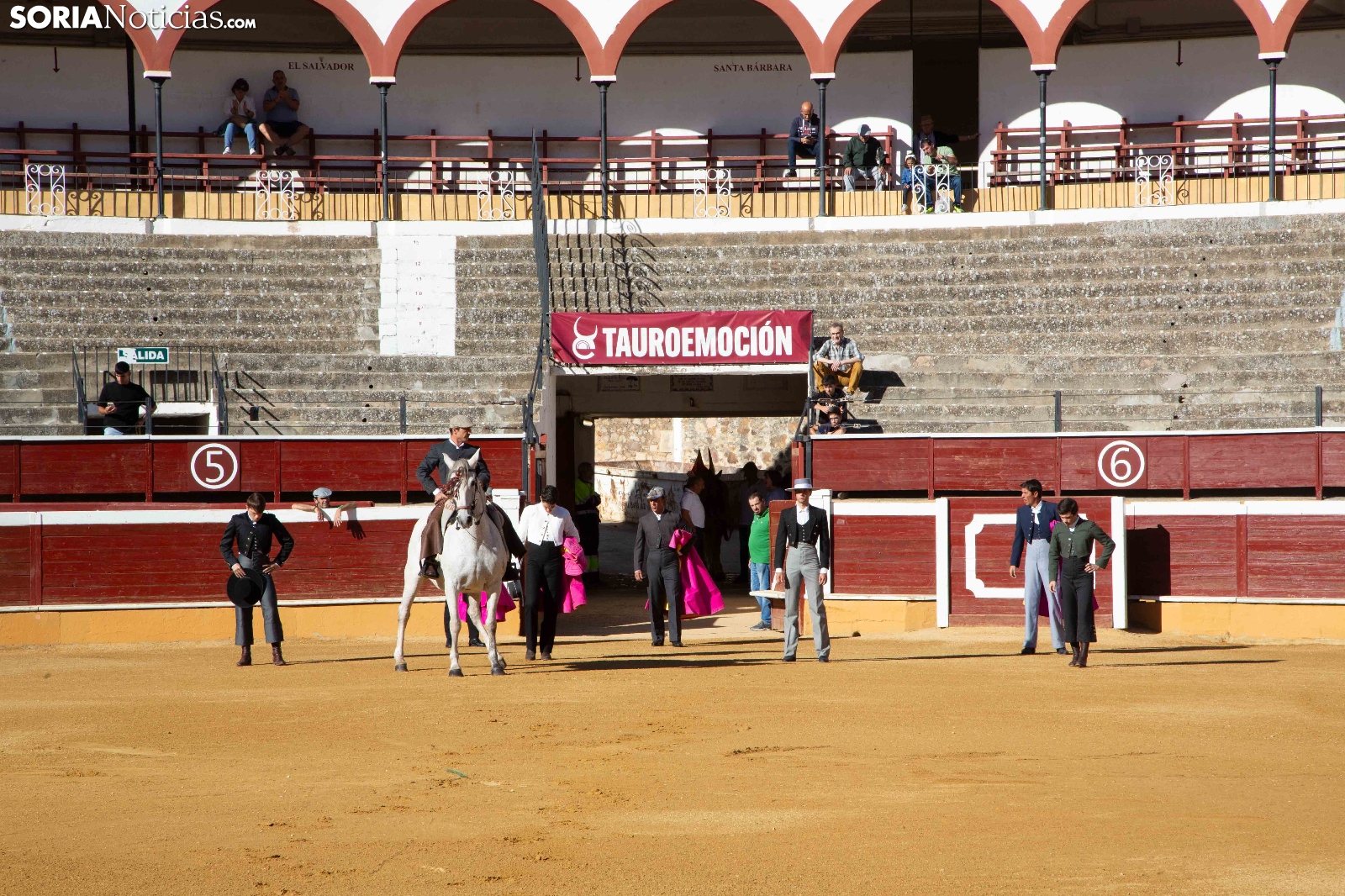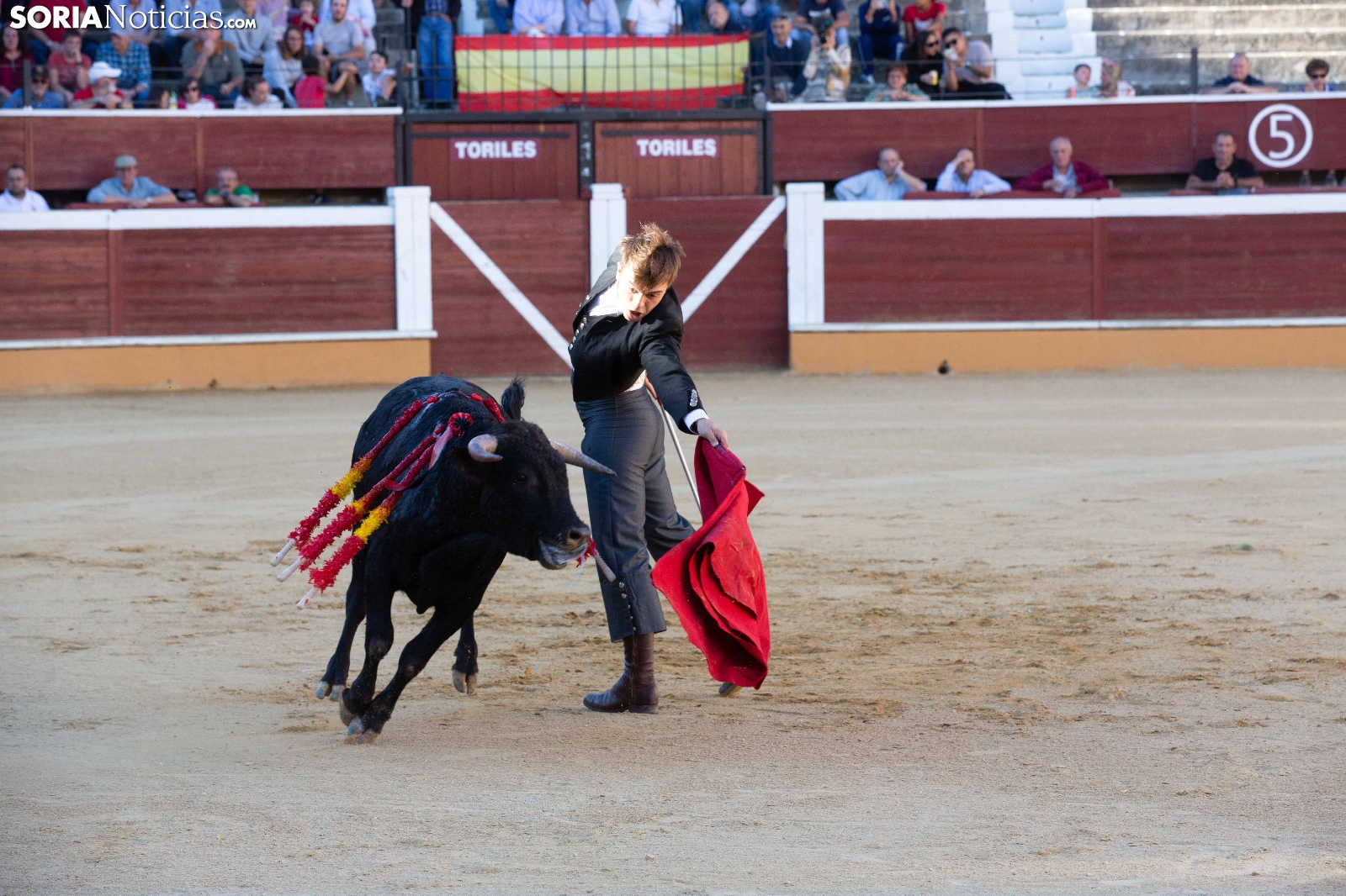 El coso de San Benito ha acogido esta tarde una novillada en clase práctica en la que han participado varias promesas del mundo del toreo nacional. Con un tercio de entrada en la plaza soriana, los futuros toreros han dado muestras de su proyección delante de un público entregado.