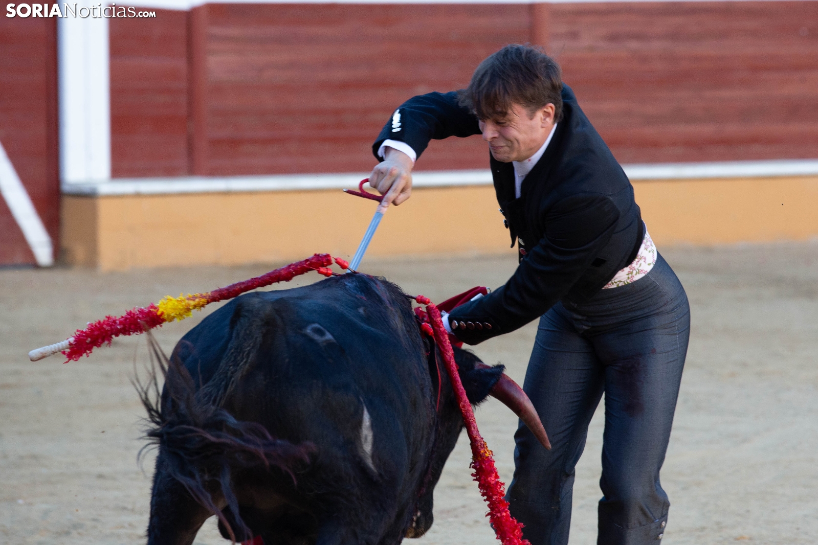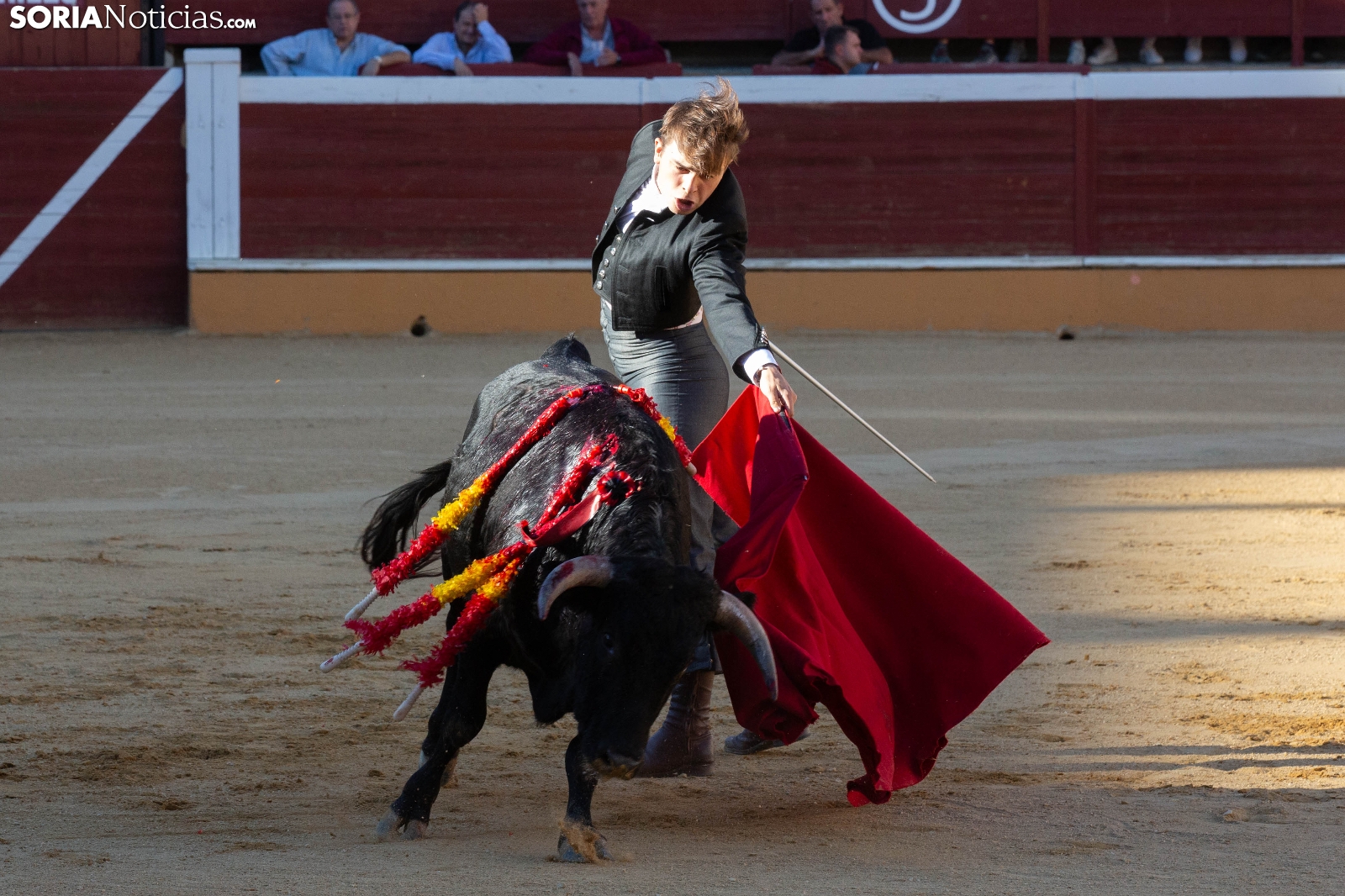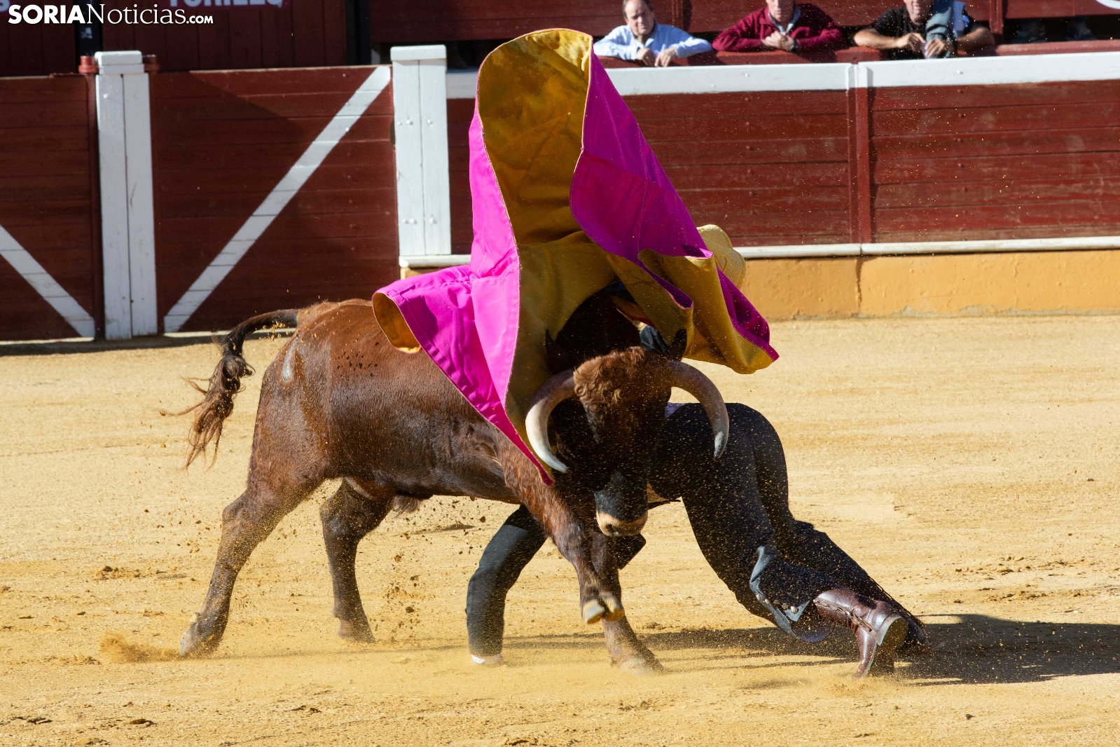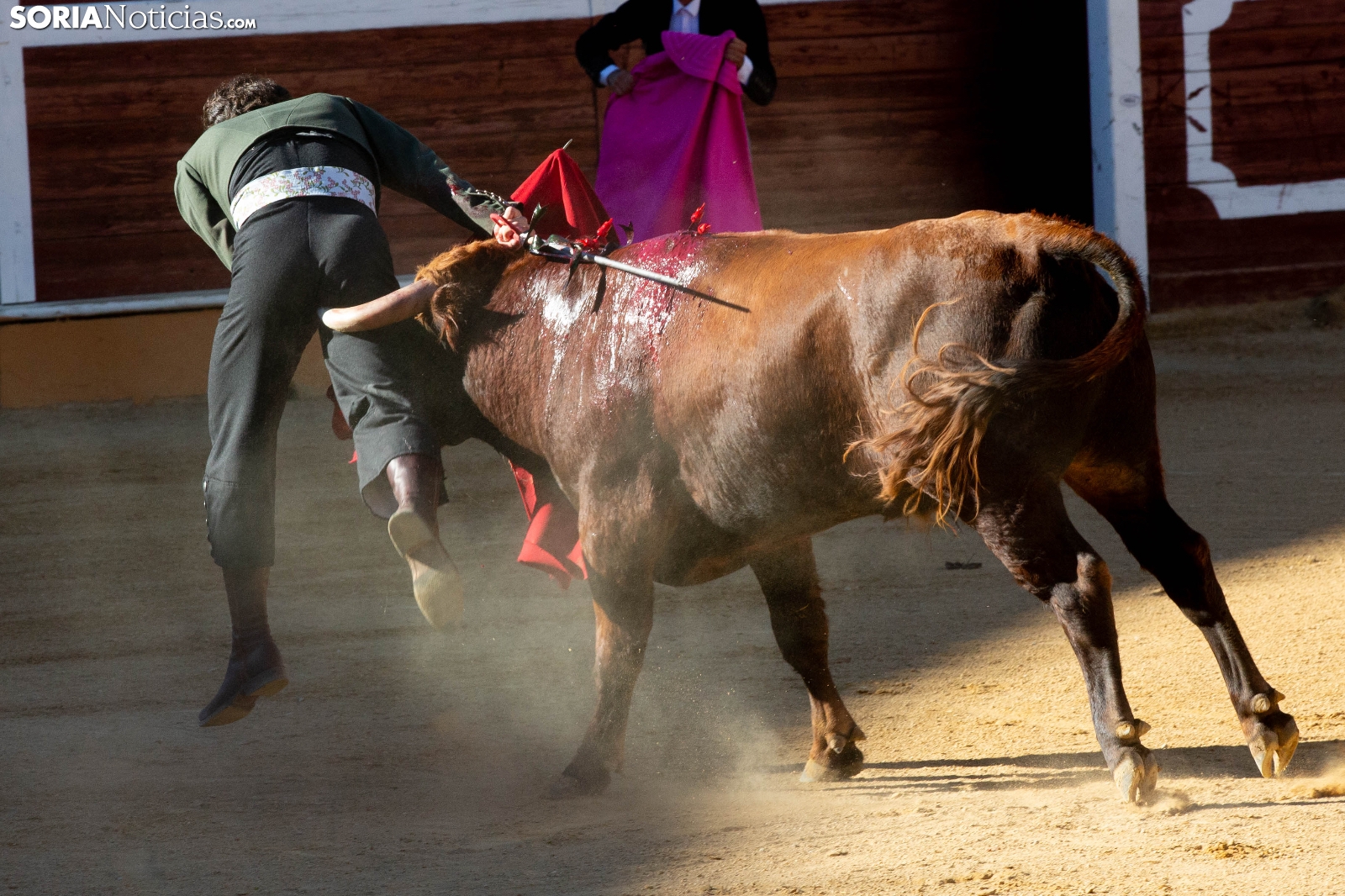 El coso de San Benito ha acogido esta tarde una novillada en clase práctica en la que han participado varias promesas del mundo del toreo nacional. Con un tercio de entrada en la plaza soriana, los futuros toreros han dado muestras de su proyección delante de un público entregado.