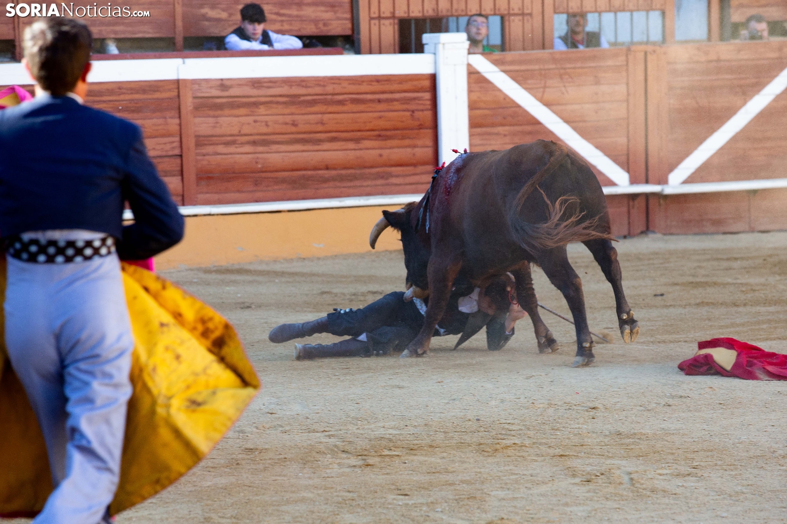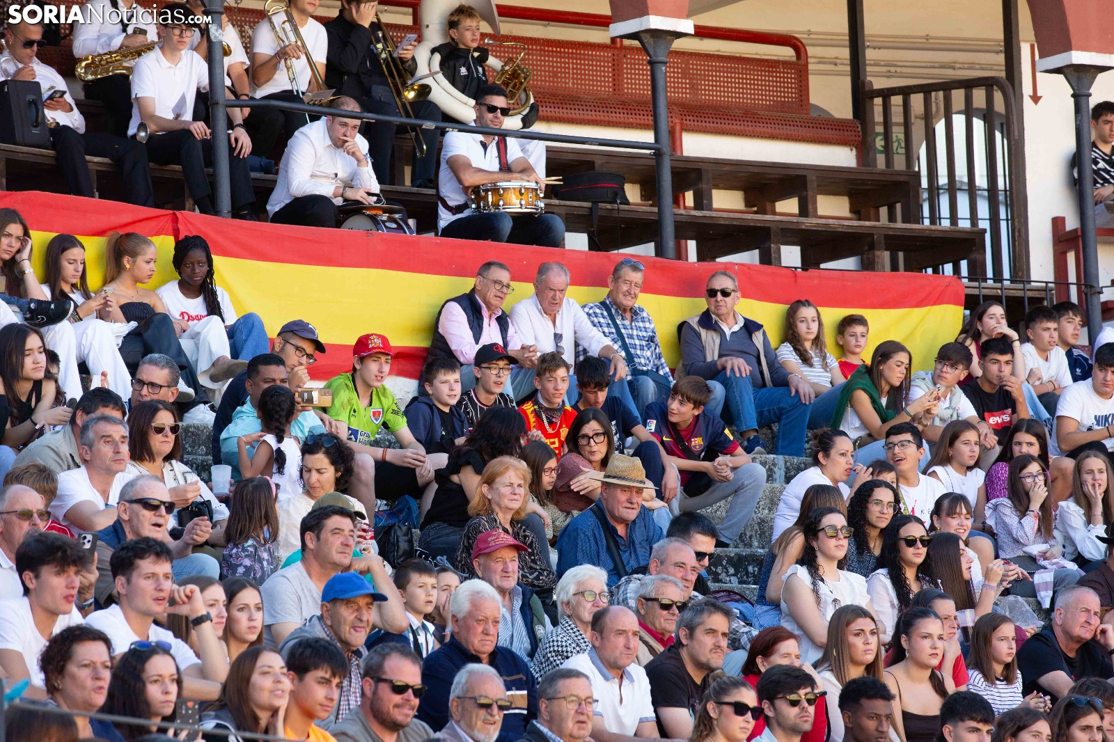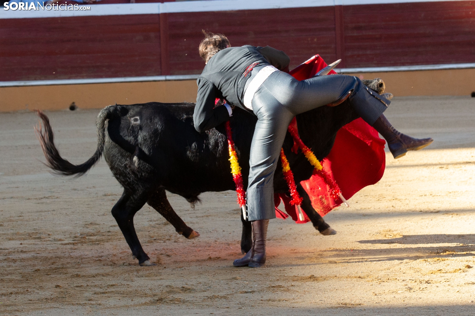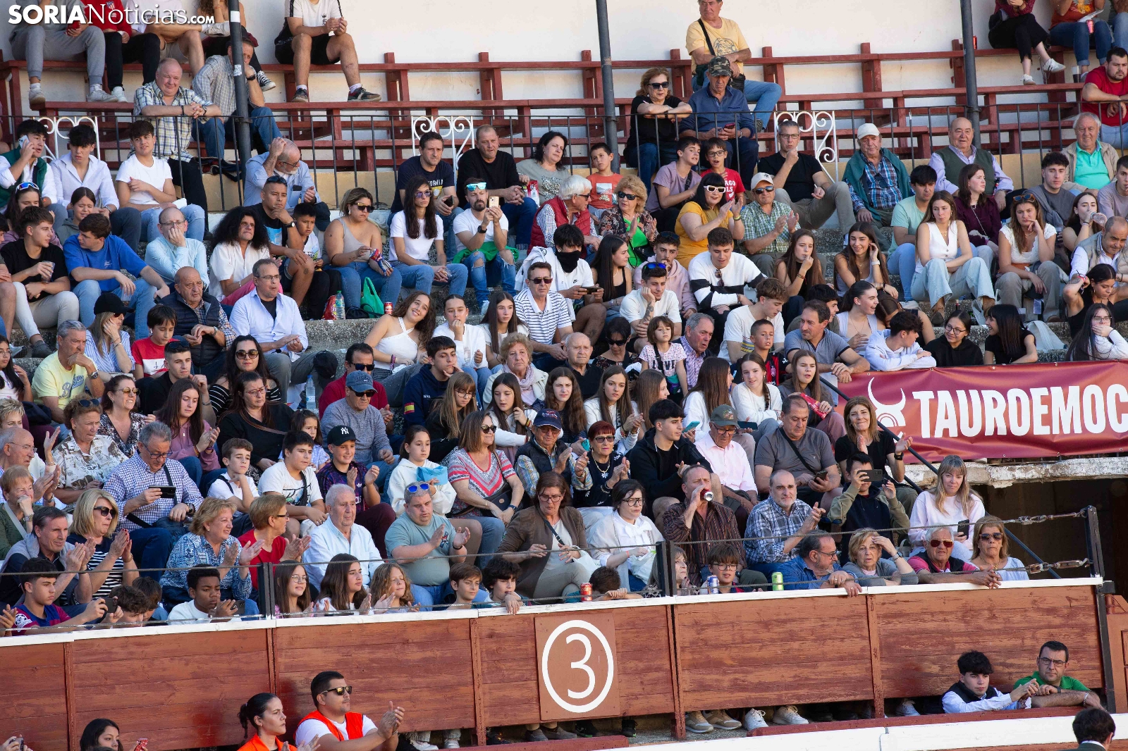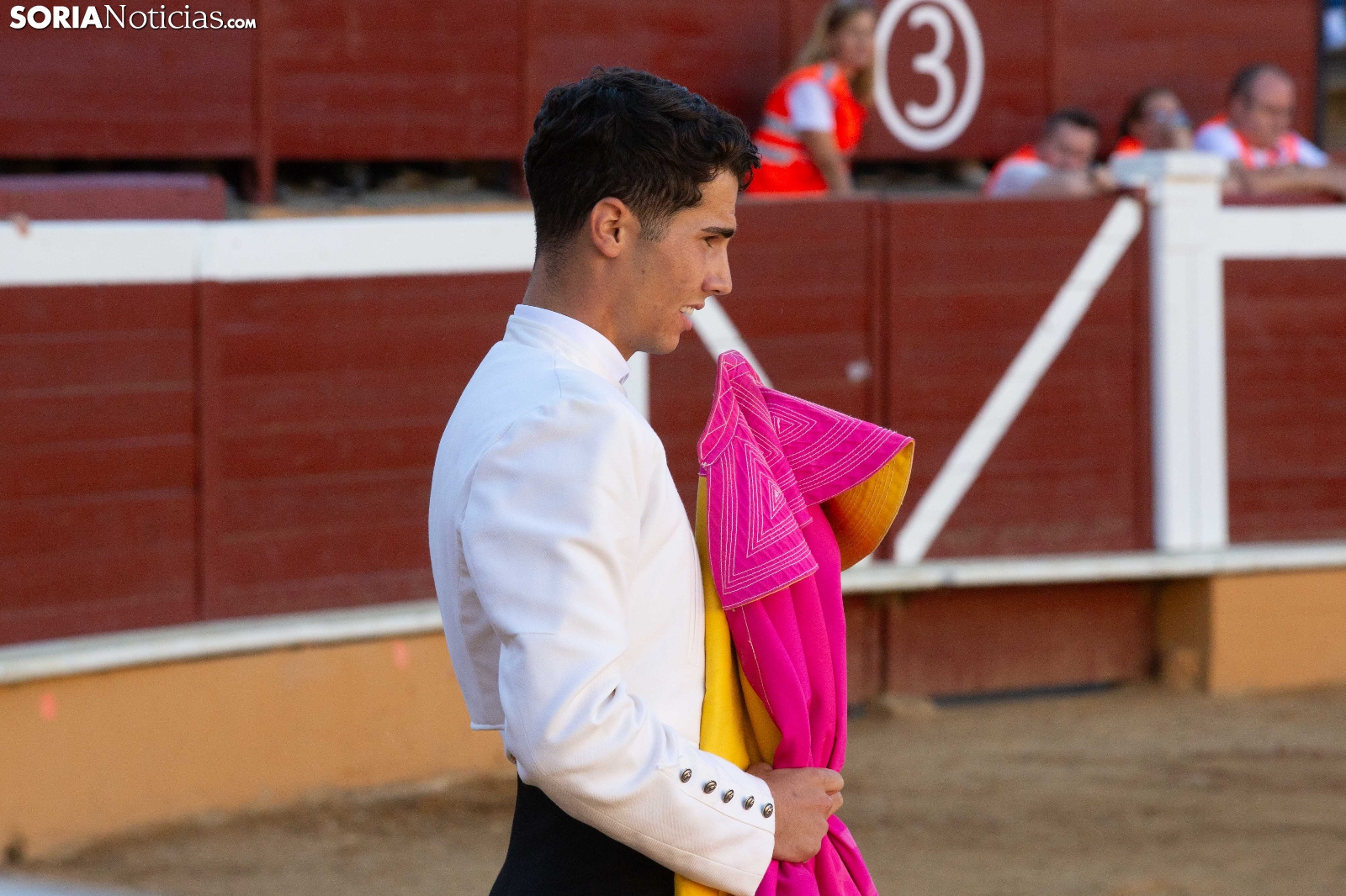 El coso de San Benito ha acogido esta tarde una novillada en clase práctica en la que han participado varias promesas del mundo del toreo nacional. Con un tercio de entrada en la plaza soriana, los futuros toreros han dado muestras de su proyección delante de un público entregado.