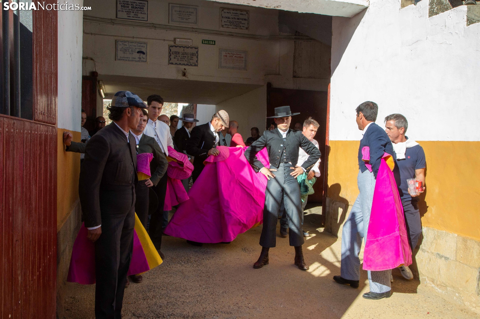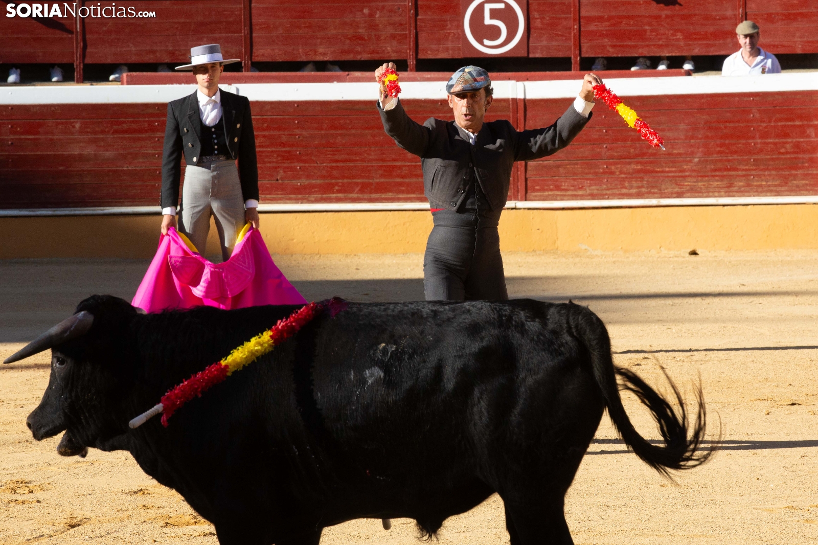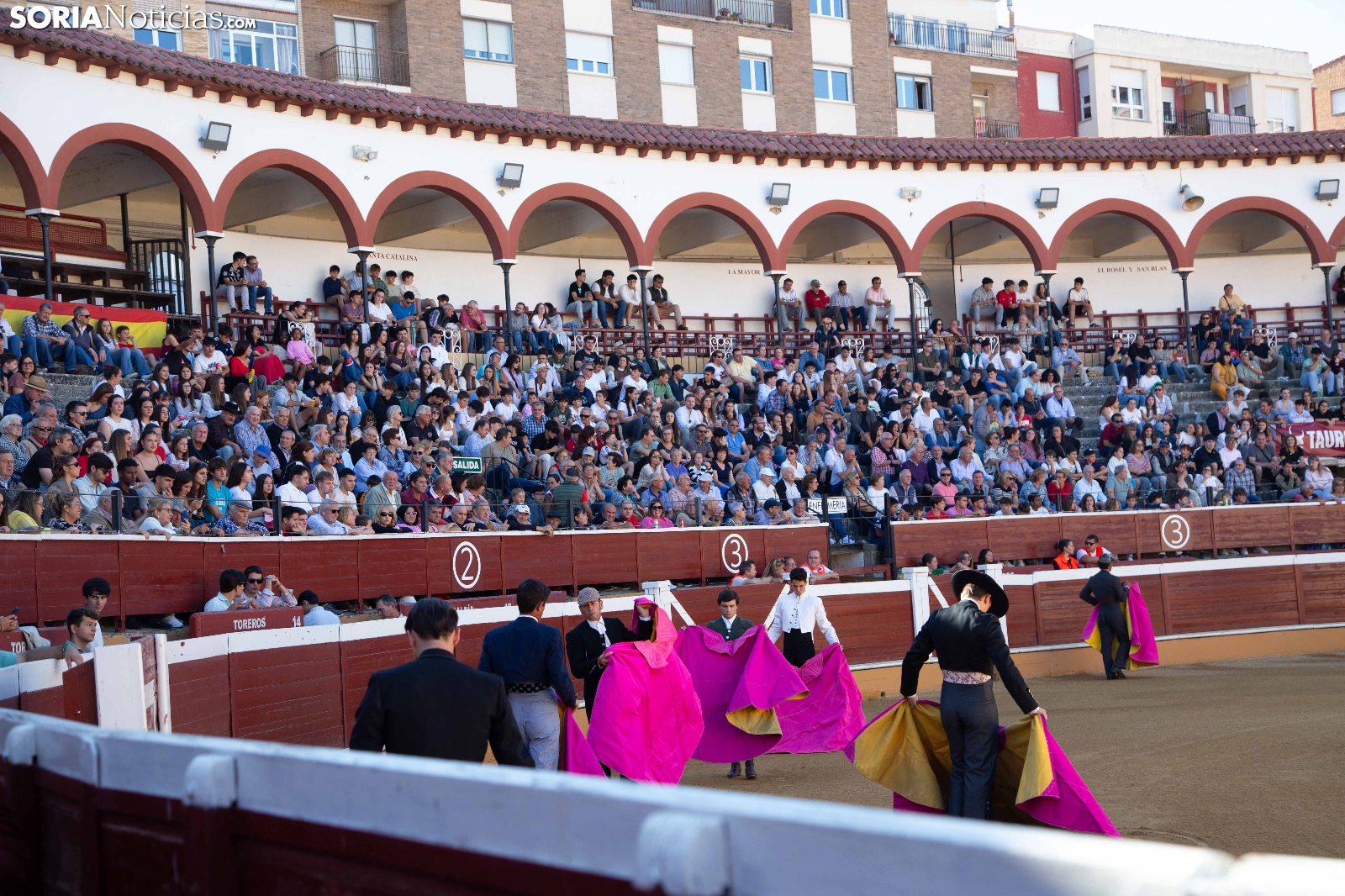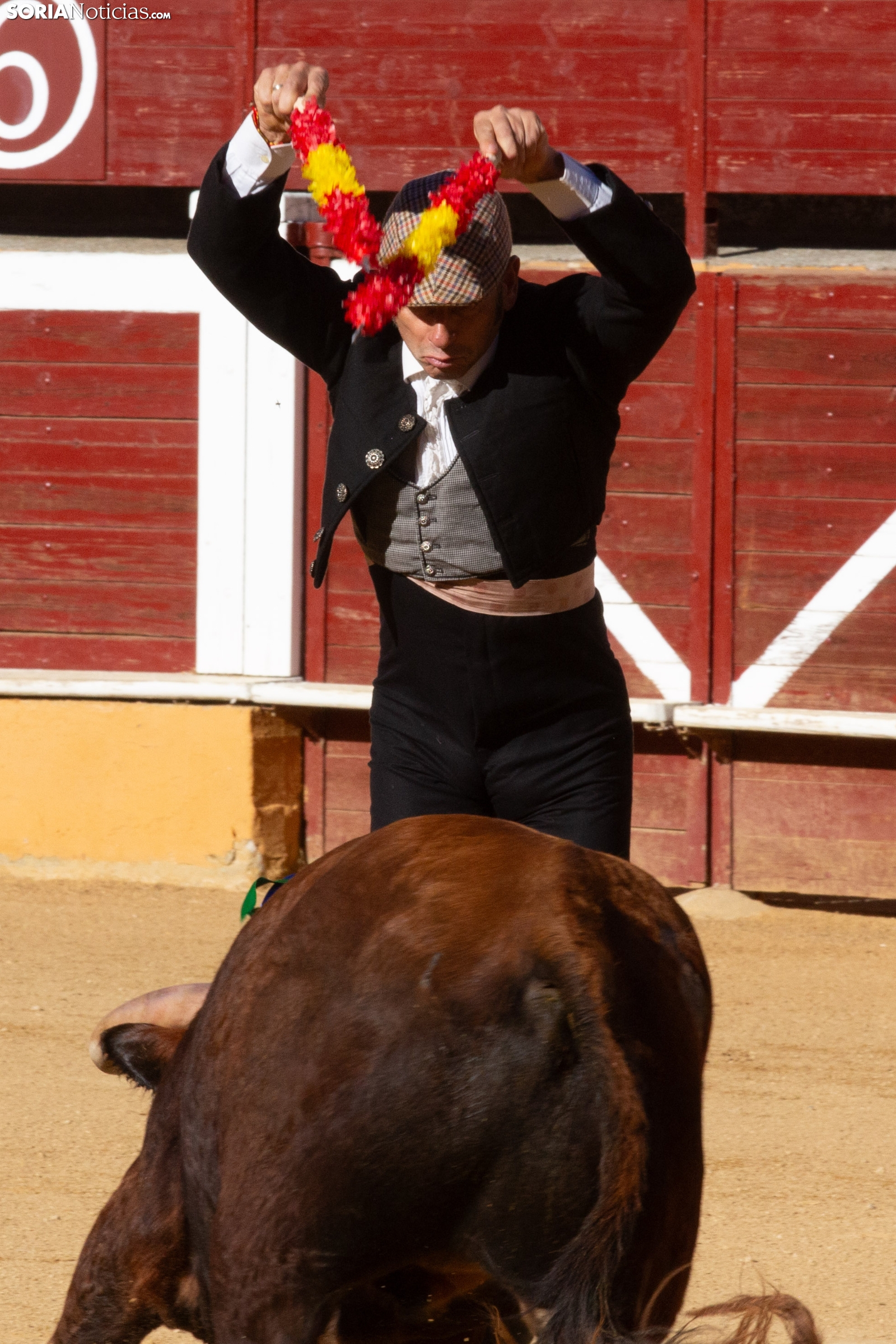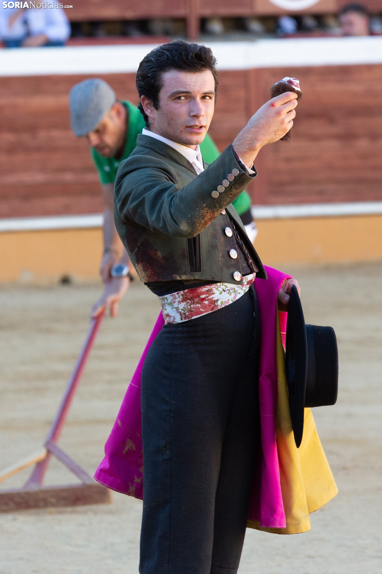 El coso de San Benito ha acogido esta tarde una novillada en clase práctica en la que han participado varias promesas del mundo del toreo nacional. Con un tercio de entrada en la plaza soriana, los futuros toreros han dado muestras de su proyección delante de un público entregado.
