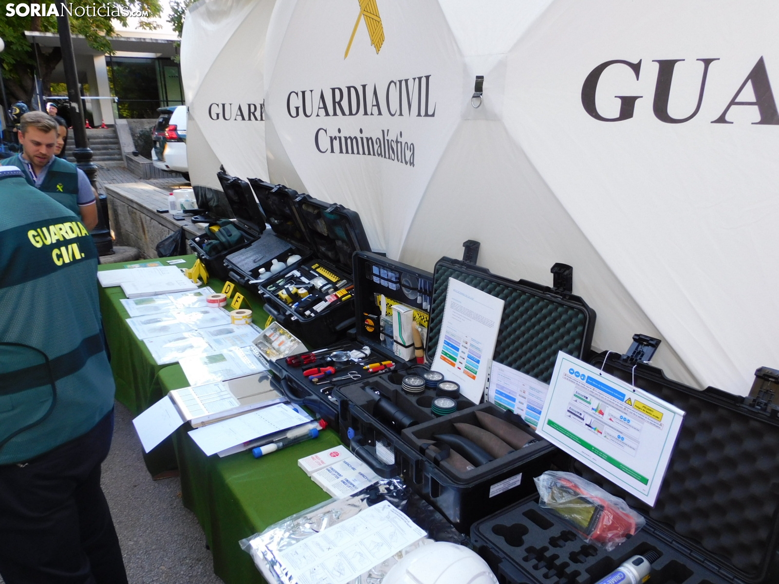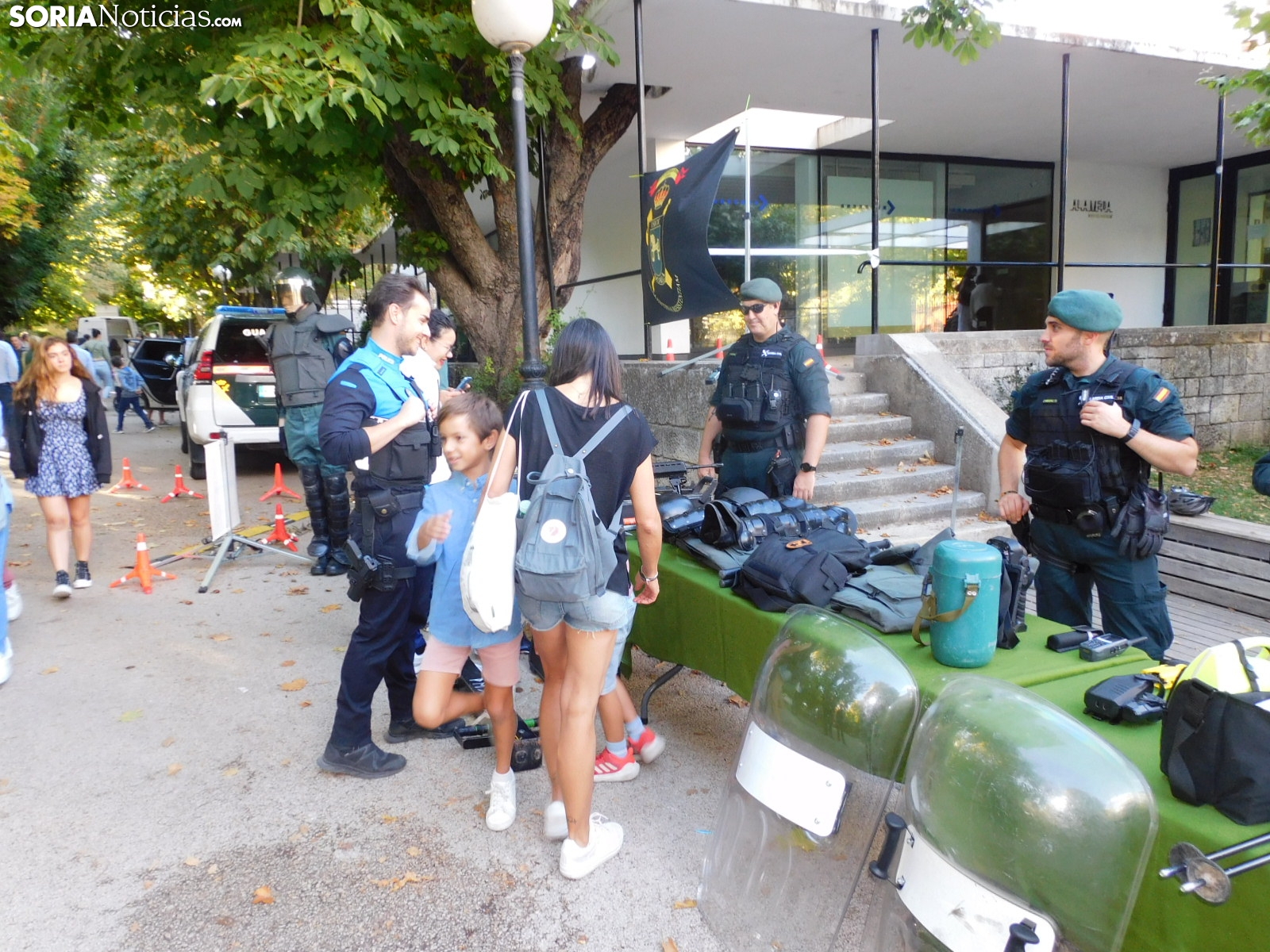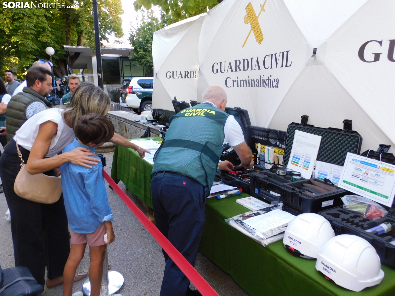Embarcaciones del SEPRONA con las que buscan a los desparecidos en el embalse de la Cuerda del Pozo o en los ríos, el laboratorio de criminalística con las herramientas que emplean para averiguar causas de muerte no naturales, el equipo de seguridad ciudadana con numerosas señales, el de búsqueda y localización de artefactos explosivos, tráfico con sus respectivas motos o el equipo fiscal con la tecnología para detectar falsificaciones y drones han estado expuestos en el parque soriano.