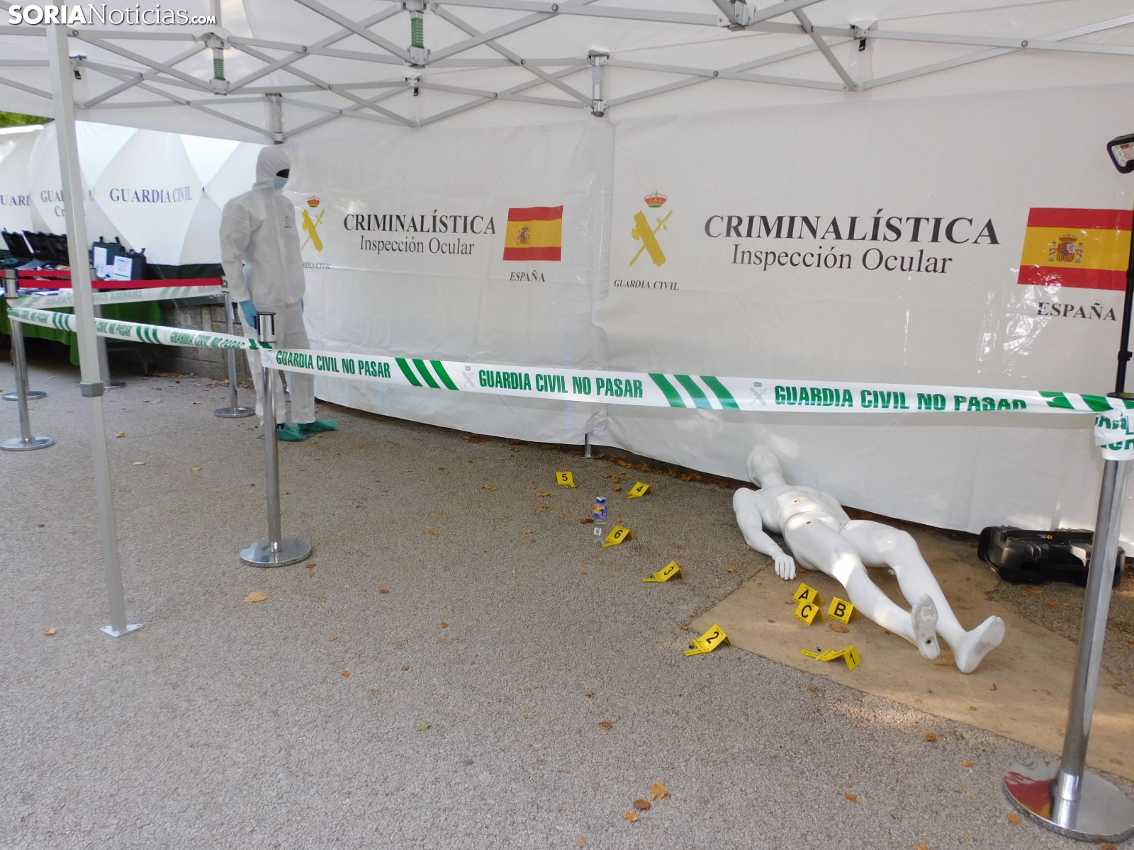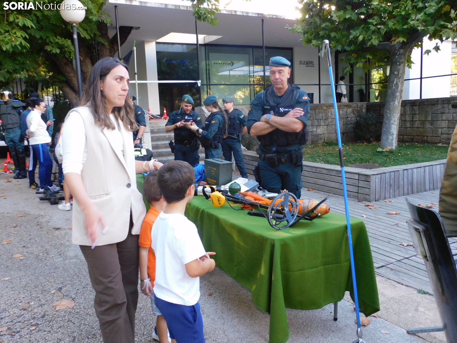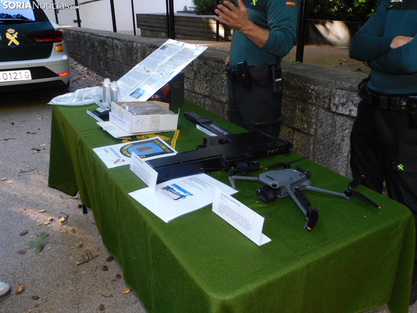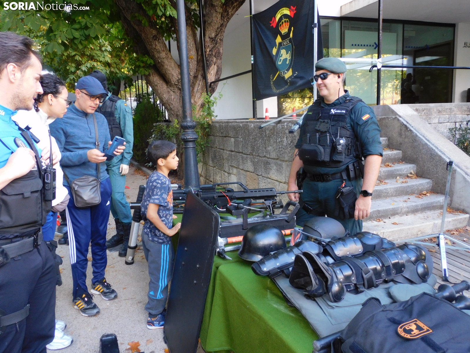 Embarcaciones del SEPRONA con las que buscan a los desparecidos en el embalse de la Cuerda del Pozo o en los ríos, el laboratorio de criminalística con las herramientas que emplean para averiguar causas de muerte no naturales, el equipo de seguridad ciudadana con numerosas señales, el de búsqueda y localización de artefactos explosivos, tráfico con sus respectivas motos o el equipo fiscal con la tecnología para detectar falsificaciones y drones han estado expuestos en el parque soriano.