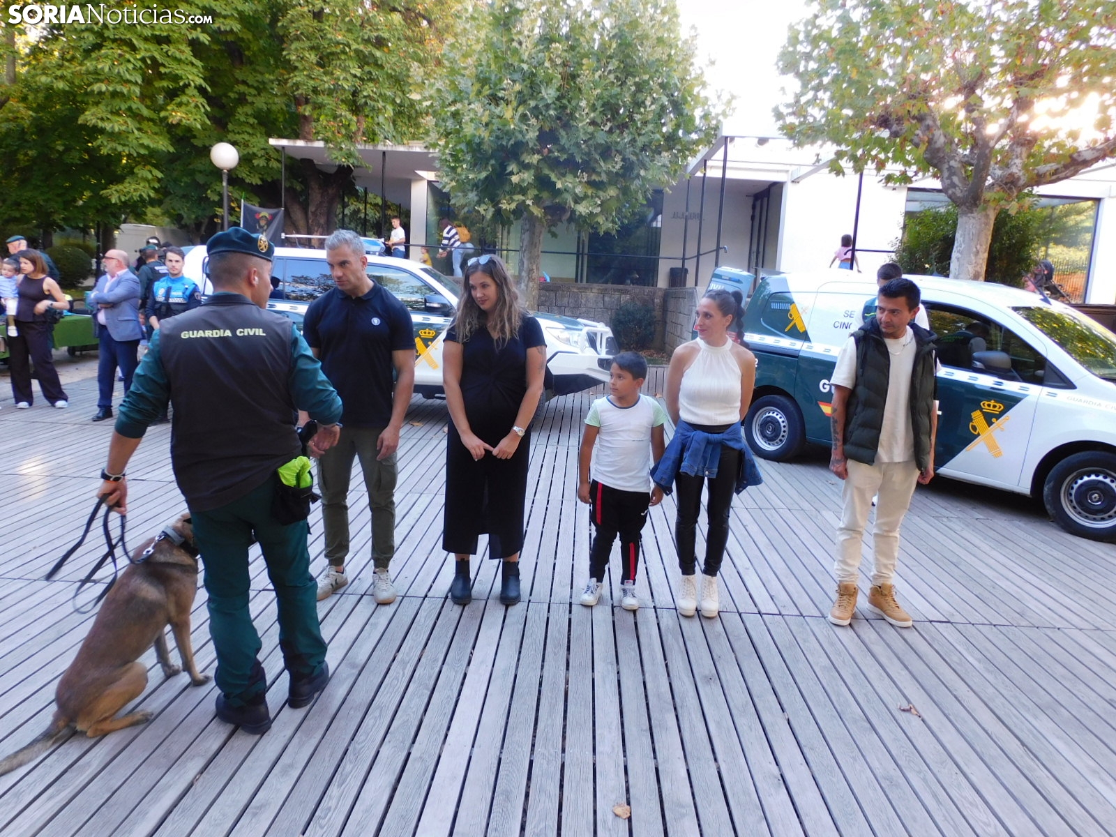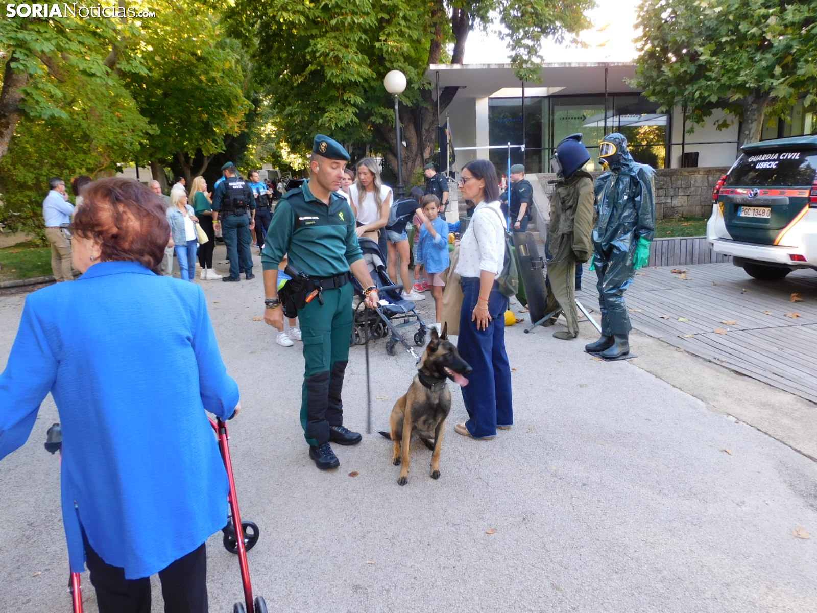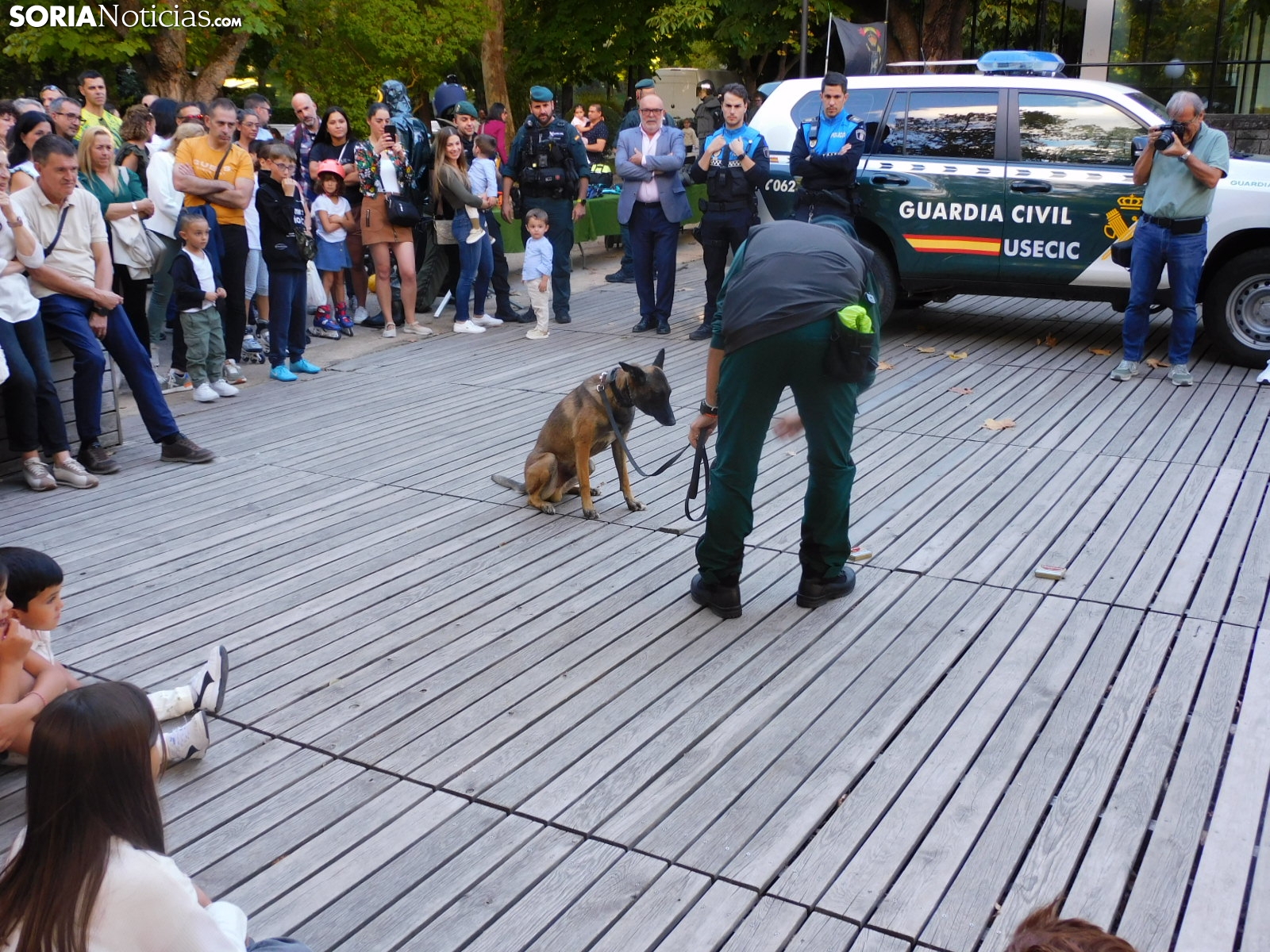 La Guardia Civil de Soria ha llevado a cabo una exhibición esta tarde en el parque de la Dehesa en la que ha mostrado a los sorianos todos los medios con los que cuenta. Con el apoyo de alguna unidad procedente de Burgos, el cuerpo ha deleitado a los más pequeños con los materiales que emplea para los diferentes casos y con diferentes demostraciones con perros.