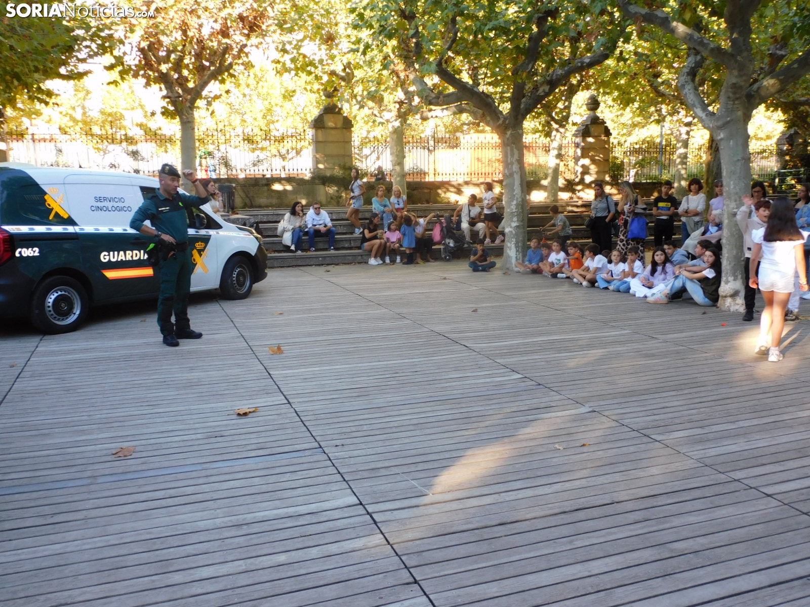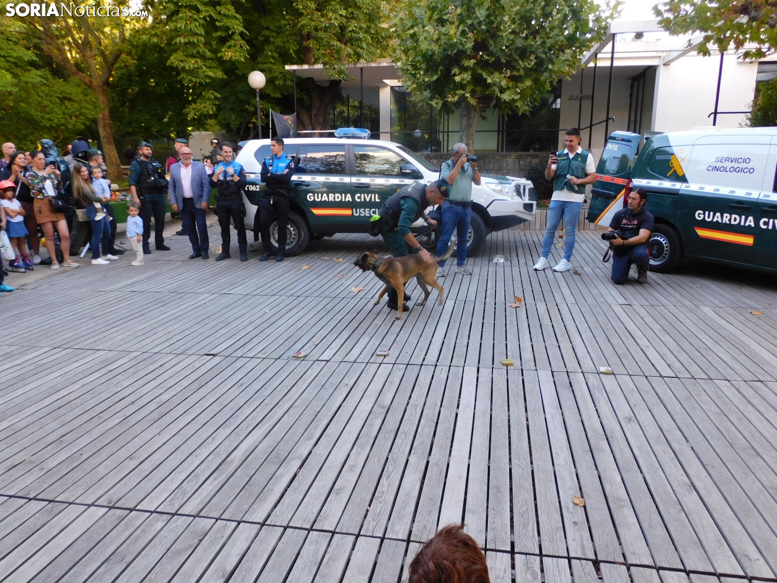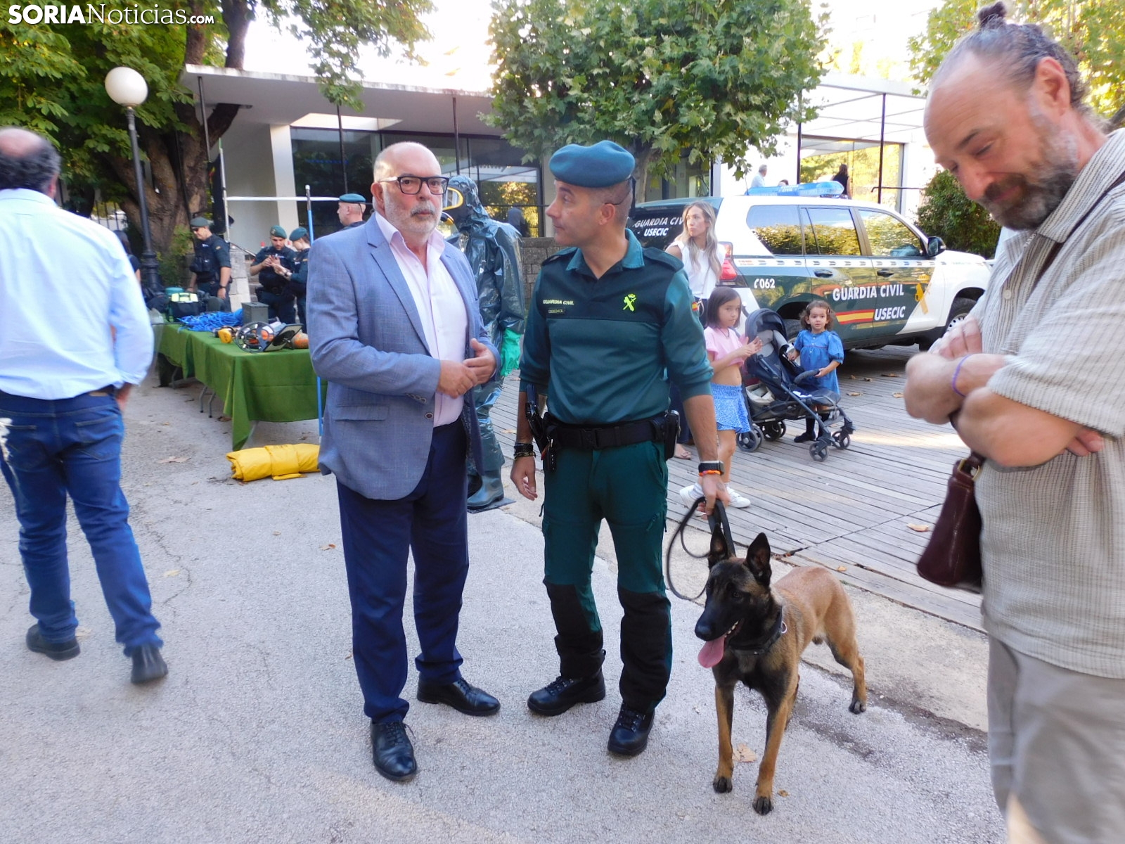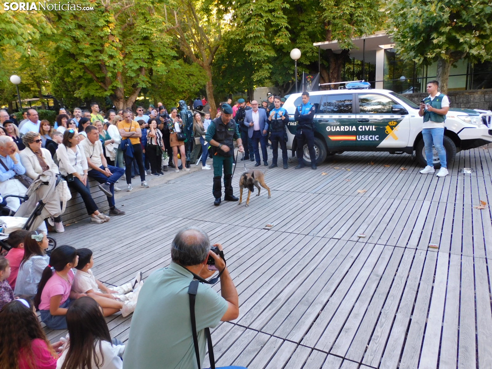 La Guardia Civil de Soria ha llevado a cabo una exhibición esta tarde en el parque de la Dehesa en la que ha mostrado a los sorianos todos los medios con los que cuenta. Con el apoyo de alguna unidad procedente de Burgos, el cuerpo ha deleitado a los más pequeños con los materiales que emplea para los diferentes casos y con diferentes demostraciones con perros.