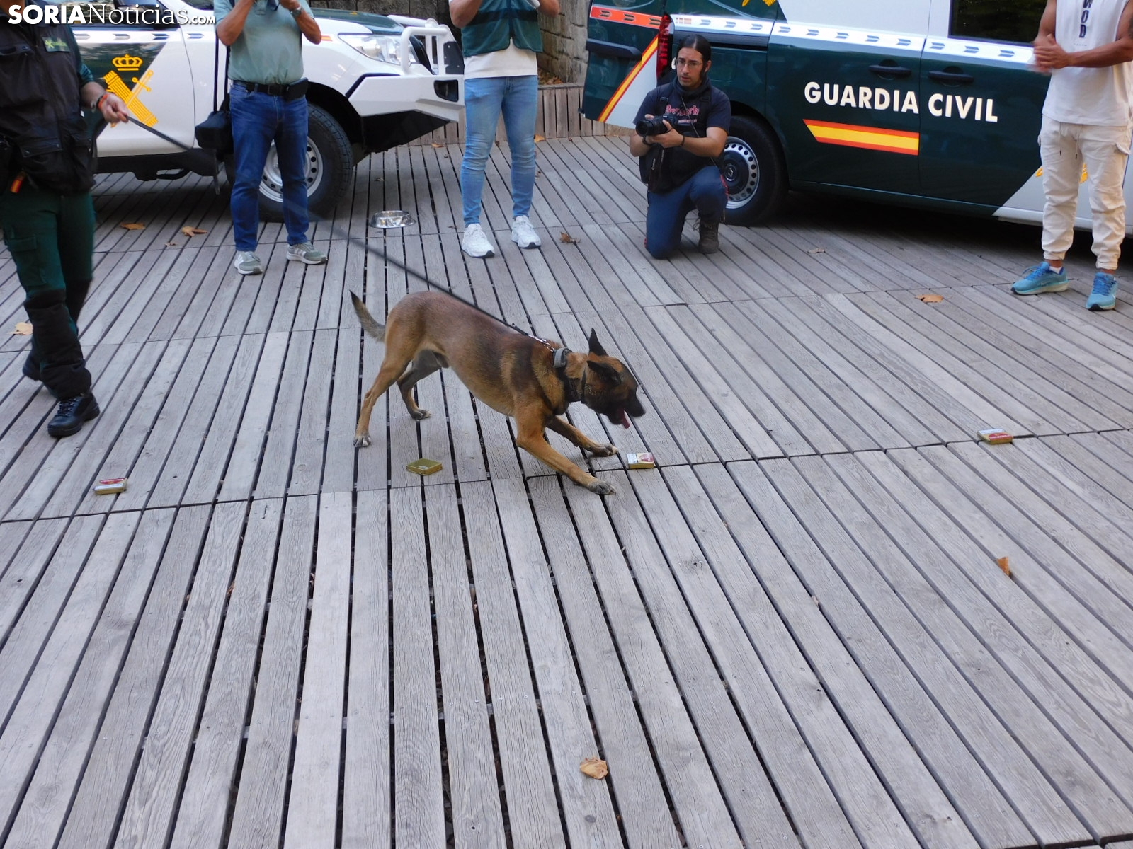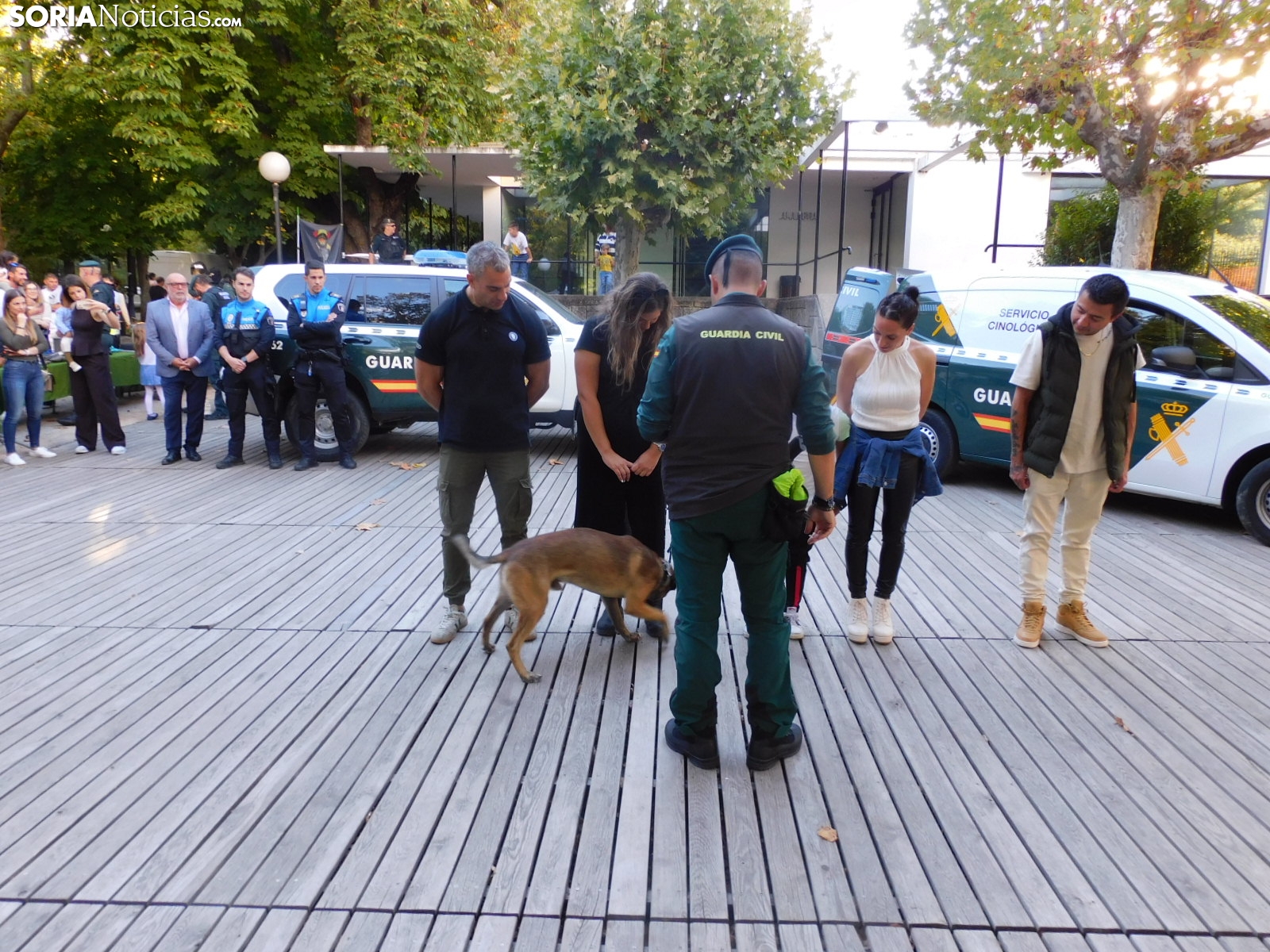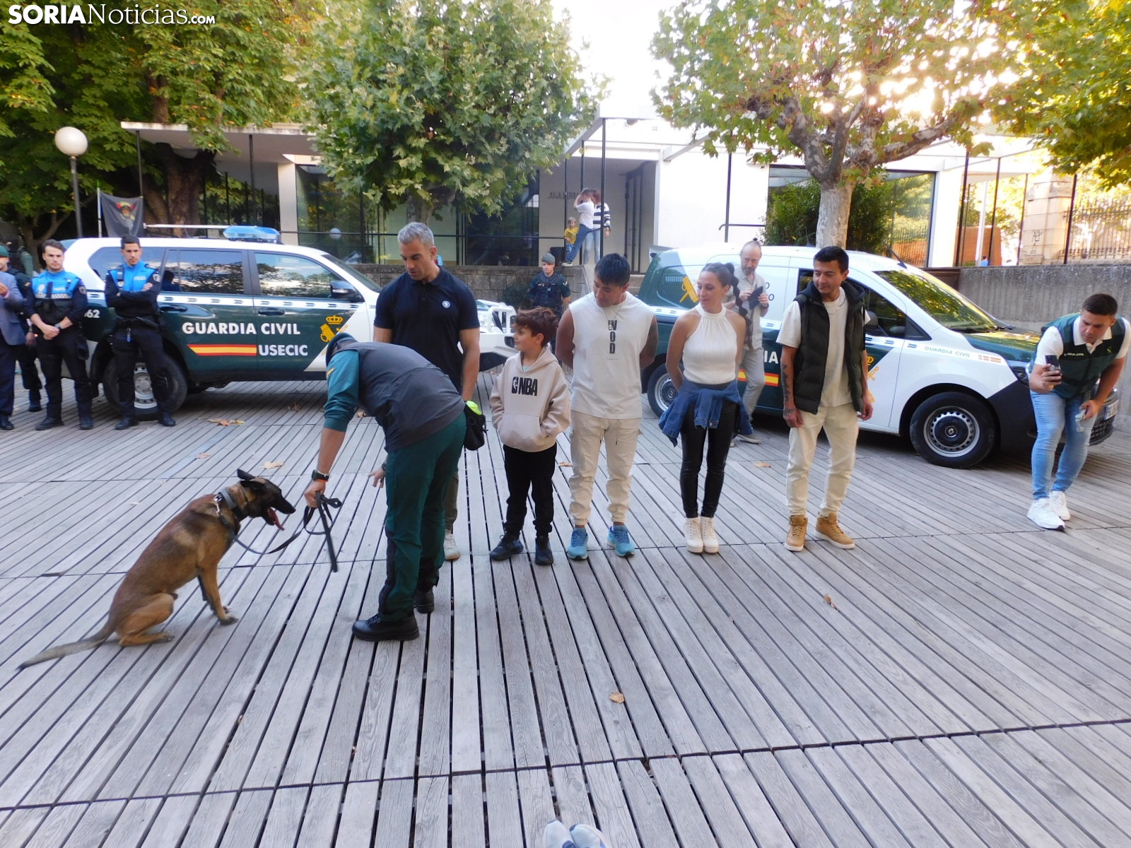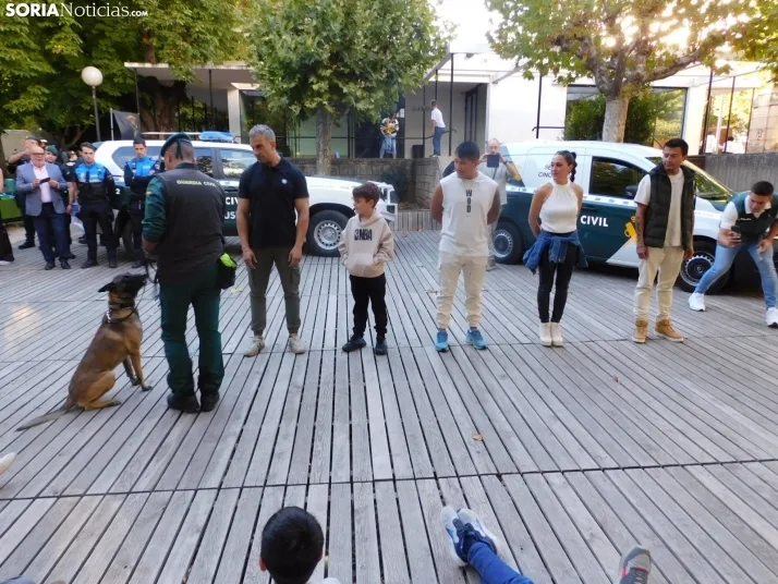 El cuerpo soriano ha hecho una demostración de cómo detectan estupefacientes ocultos tanto en objetos como en personas. Socio, perro experto en estos menesteres, ha exhibido cómo con su olfato puede detectar este tipo de sustancias, primero en unas cajas que contenían diferentes productos y después, en humanos.