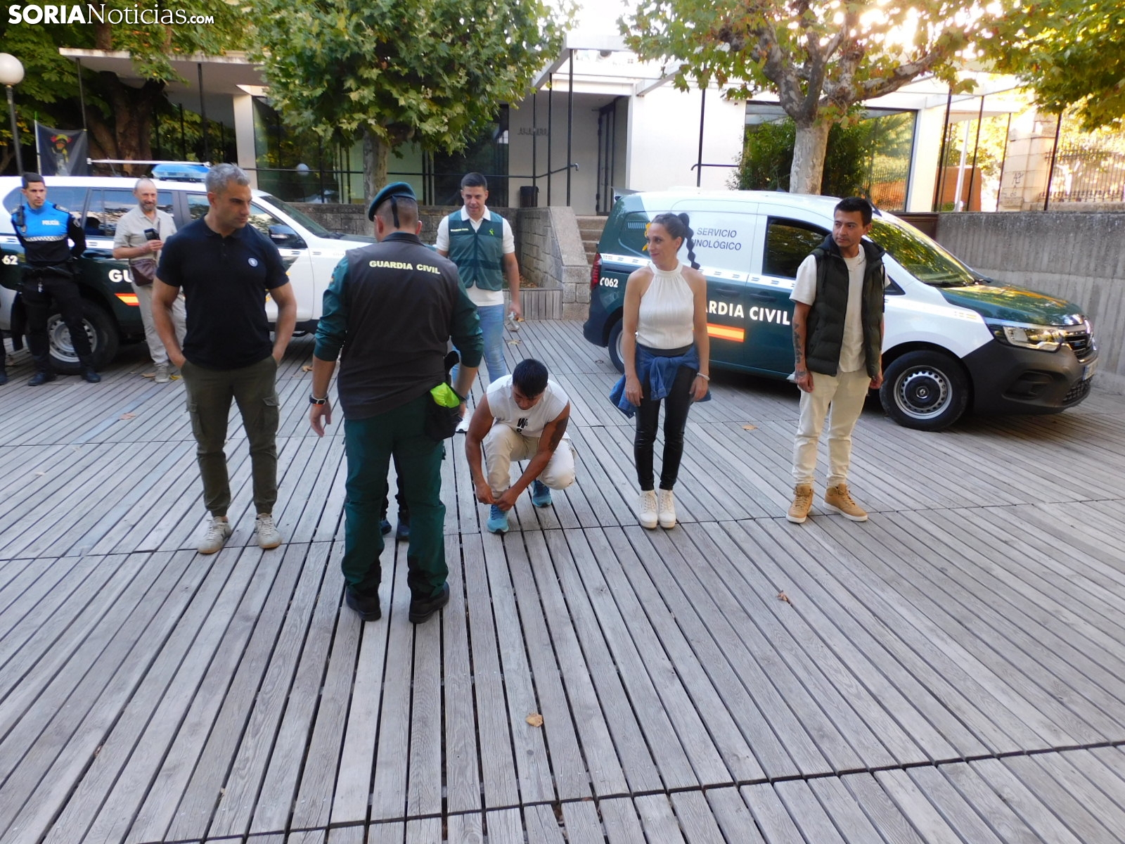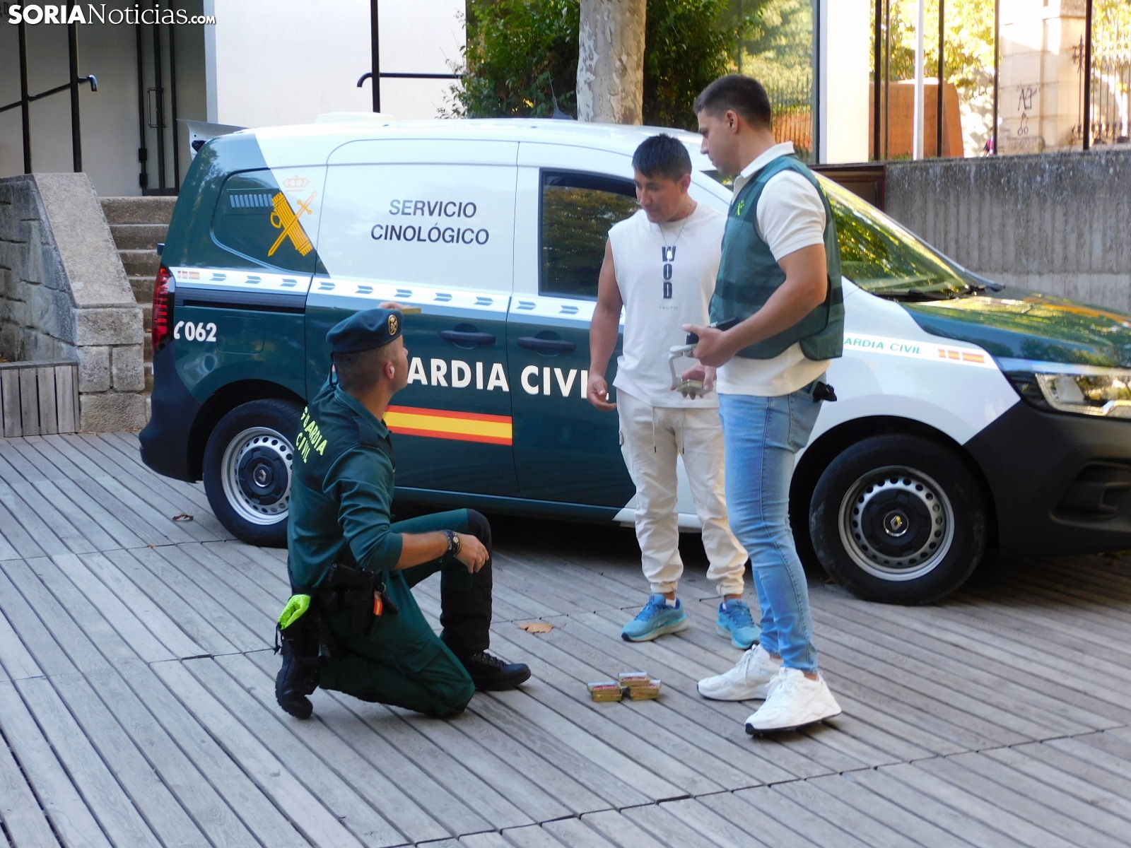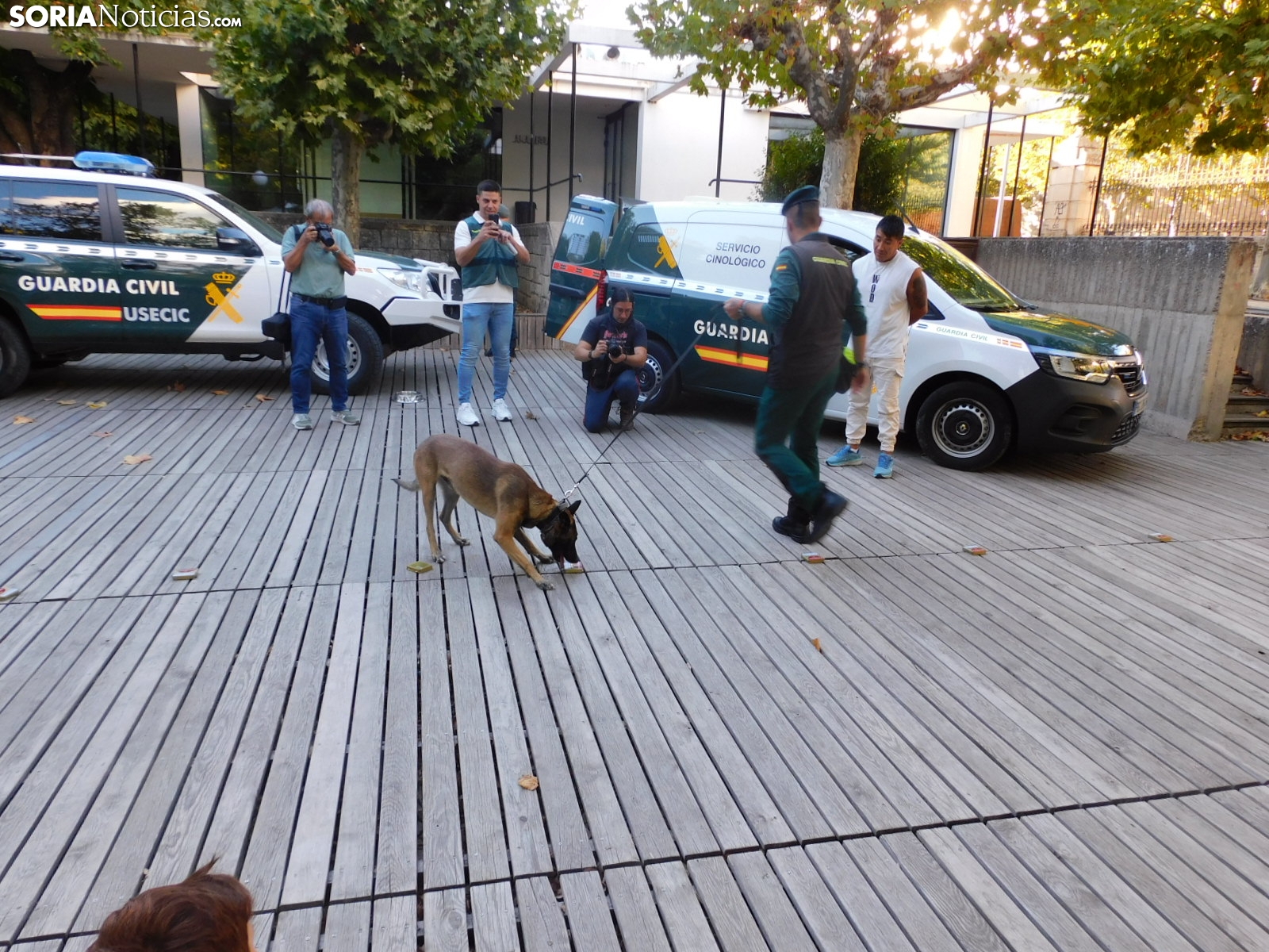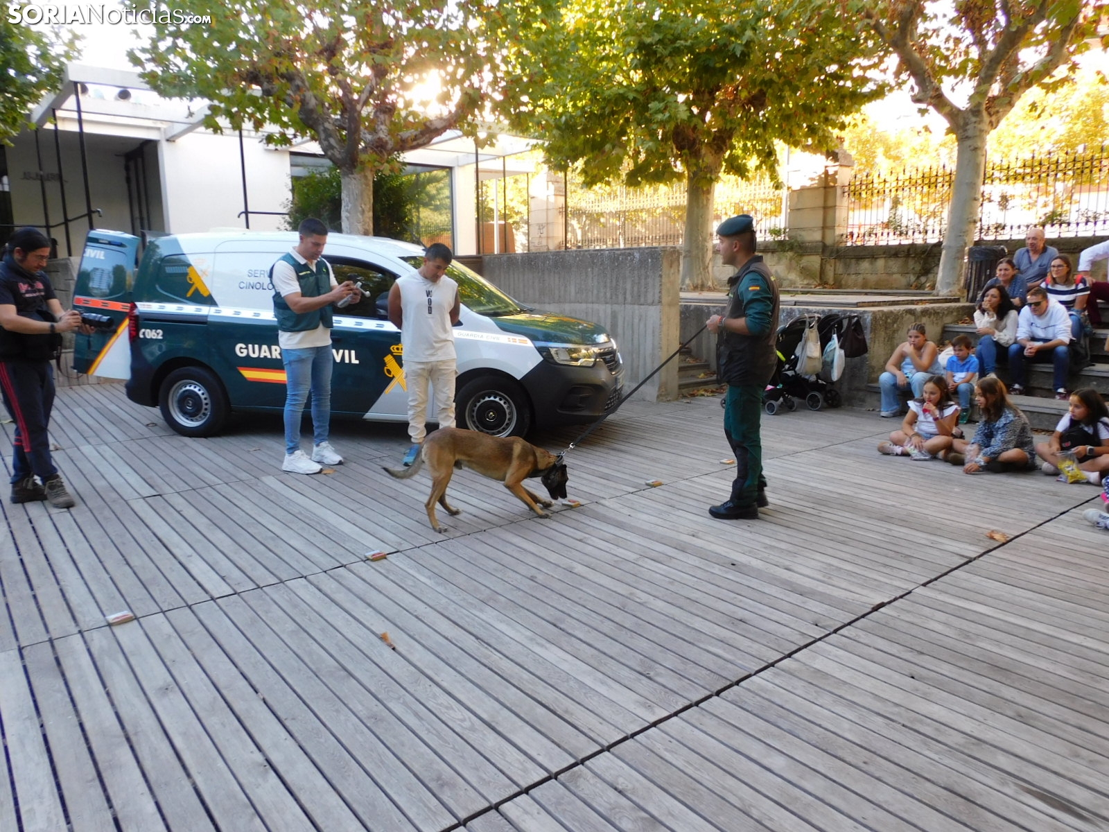 El cuerpo soriano ha hecho una demostración de cómo detectan estupefacientes ocultos tanto en objetos como en personas. Socio, perro experto en estos menesteres, ha exhibido cómo con su olfato puede detectar este tipo de sustancias, primero en unas cajas que contenían diferentes productos y después, en humanos.