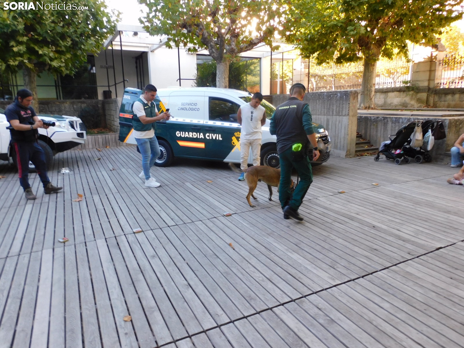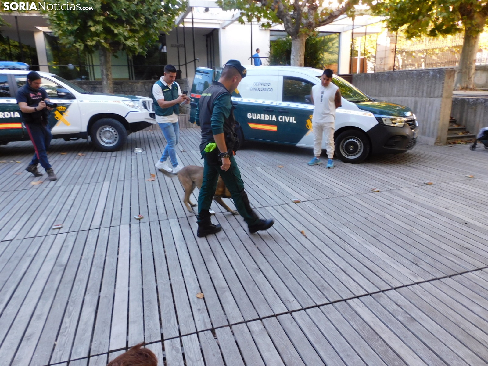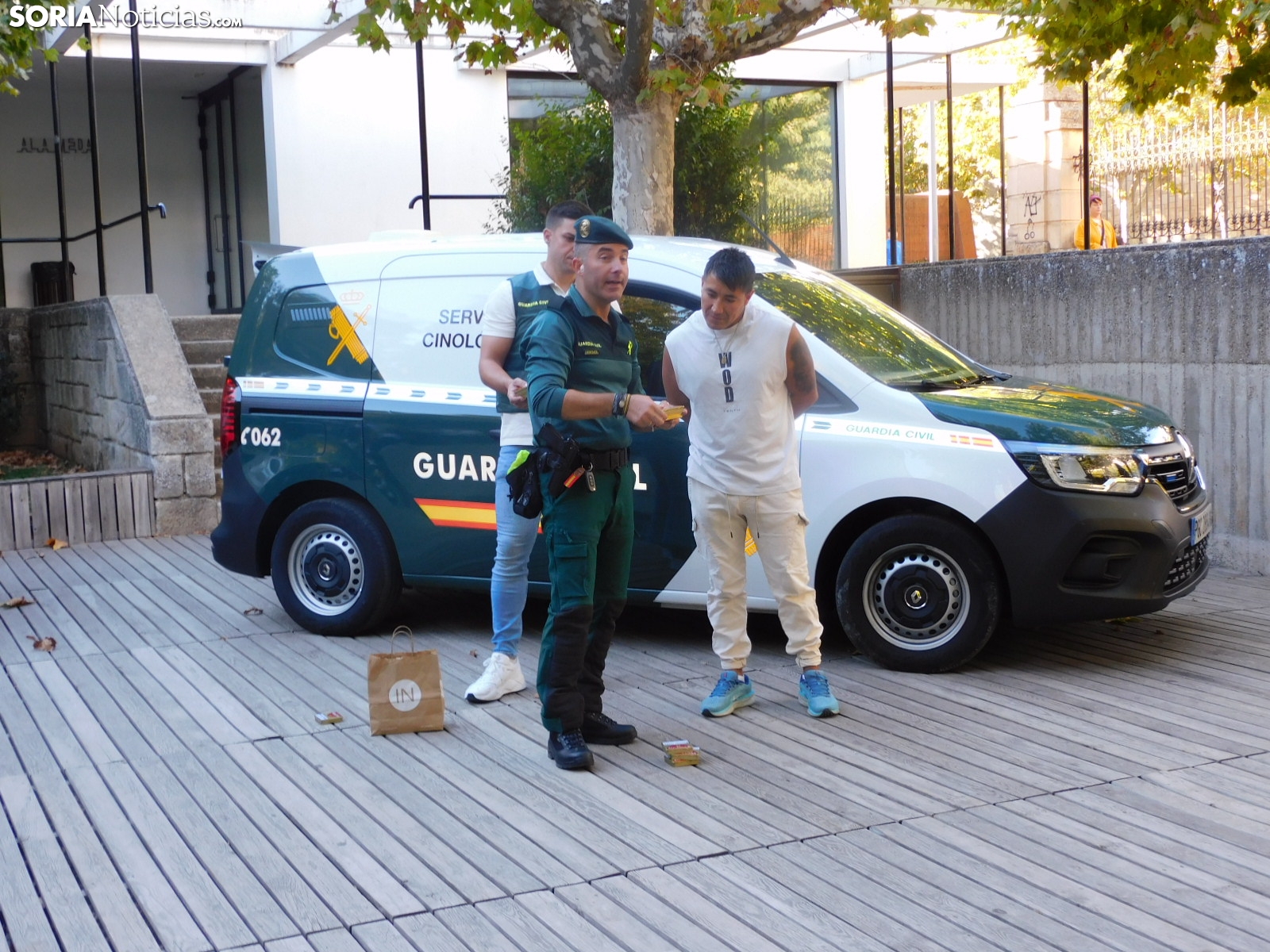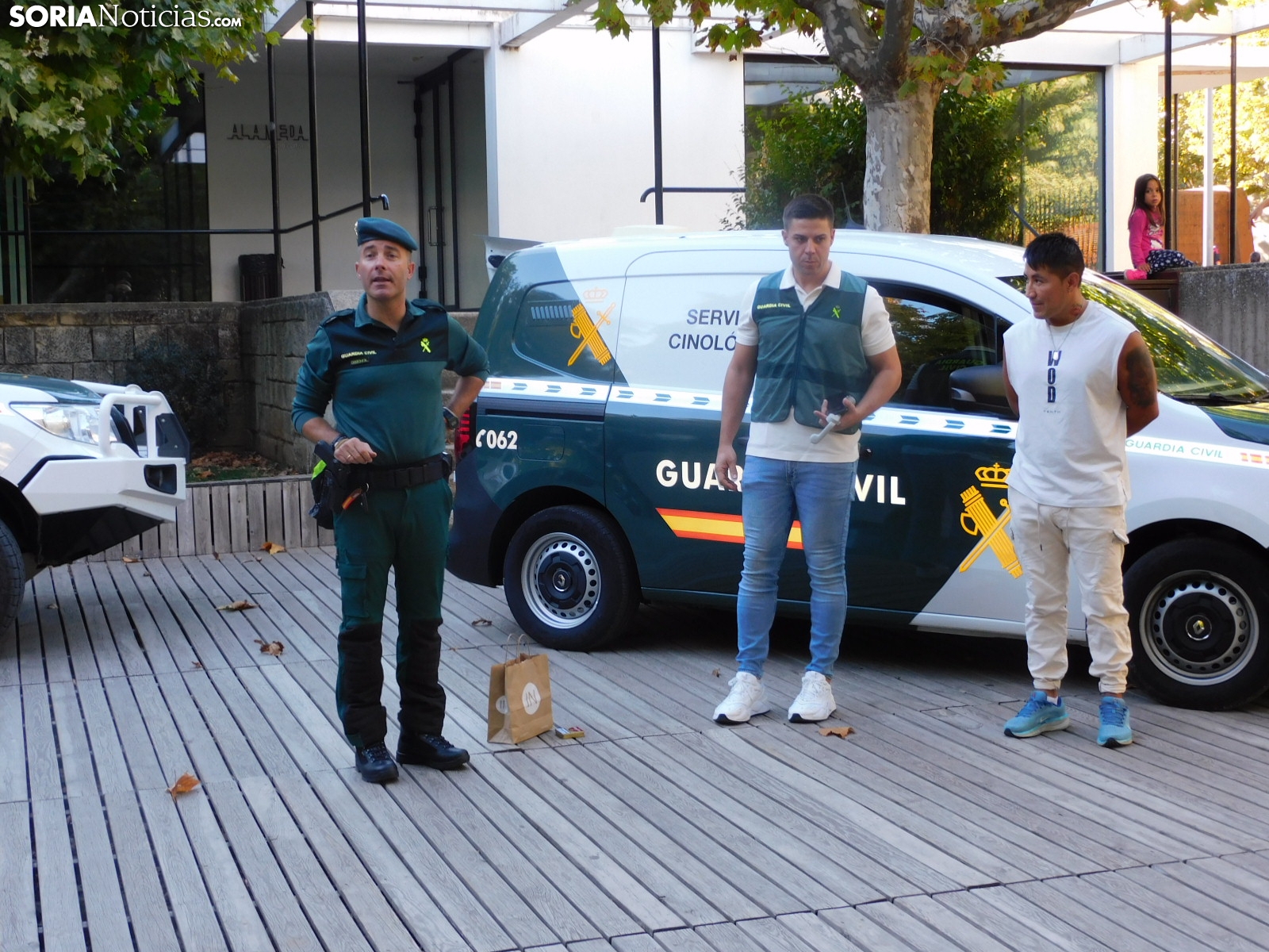El cuerpo soriano ha hecho una demostración de cómo detectan estupefacientes ocultos tanto en objetos como en personas. Socio, perro experto en estos menesteres, ha exhibido cómo con su olfato puede detectar este tipo de sustancias, primero en unas cajas que contenían diferentes productos y después, en humanos.