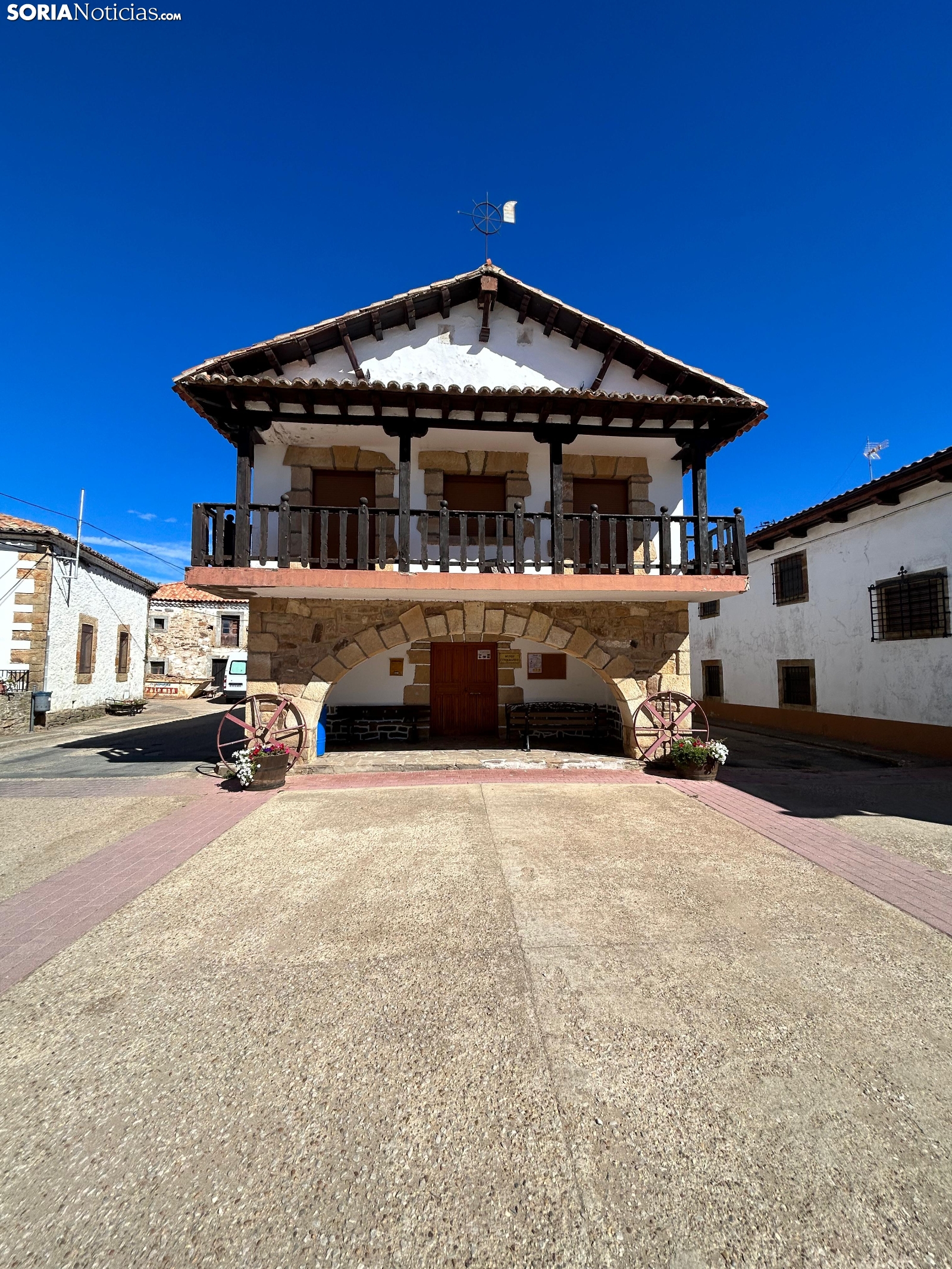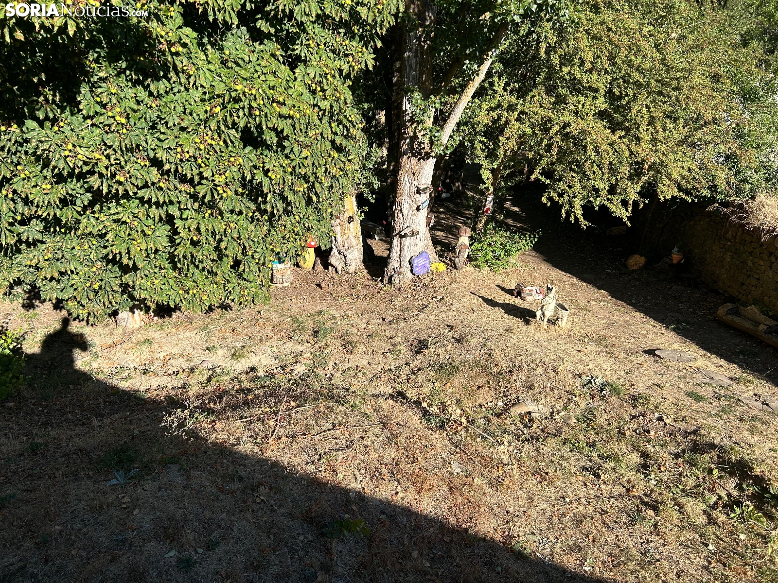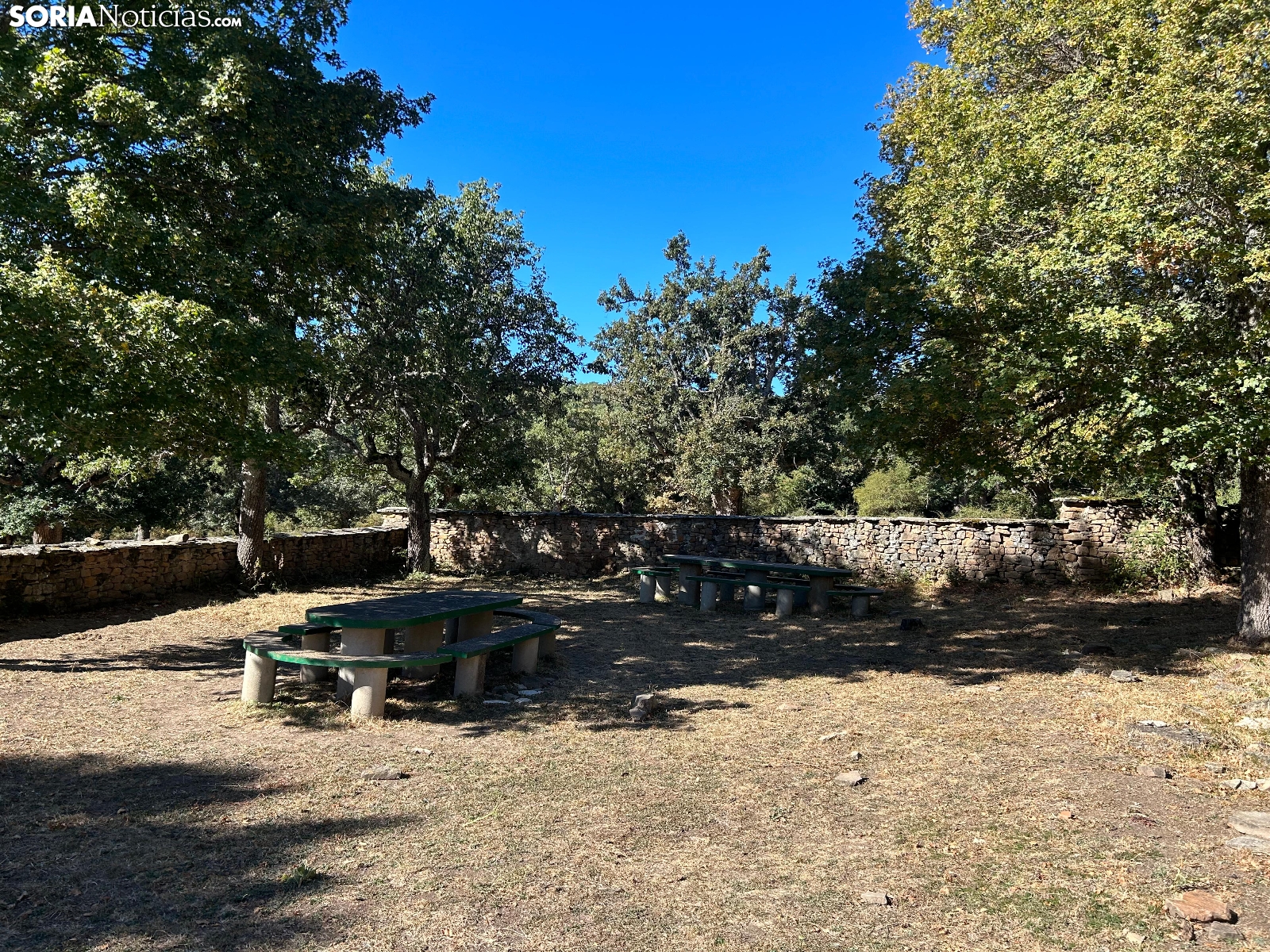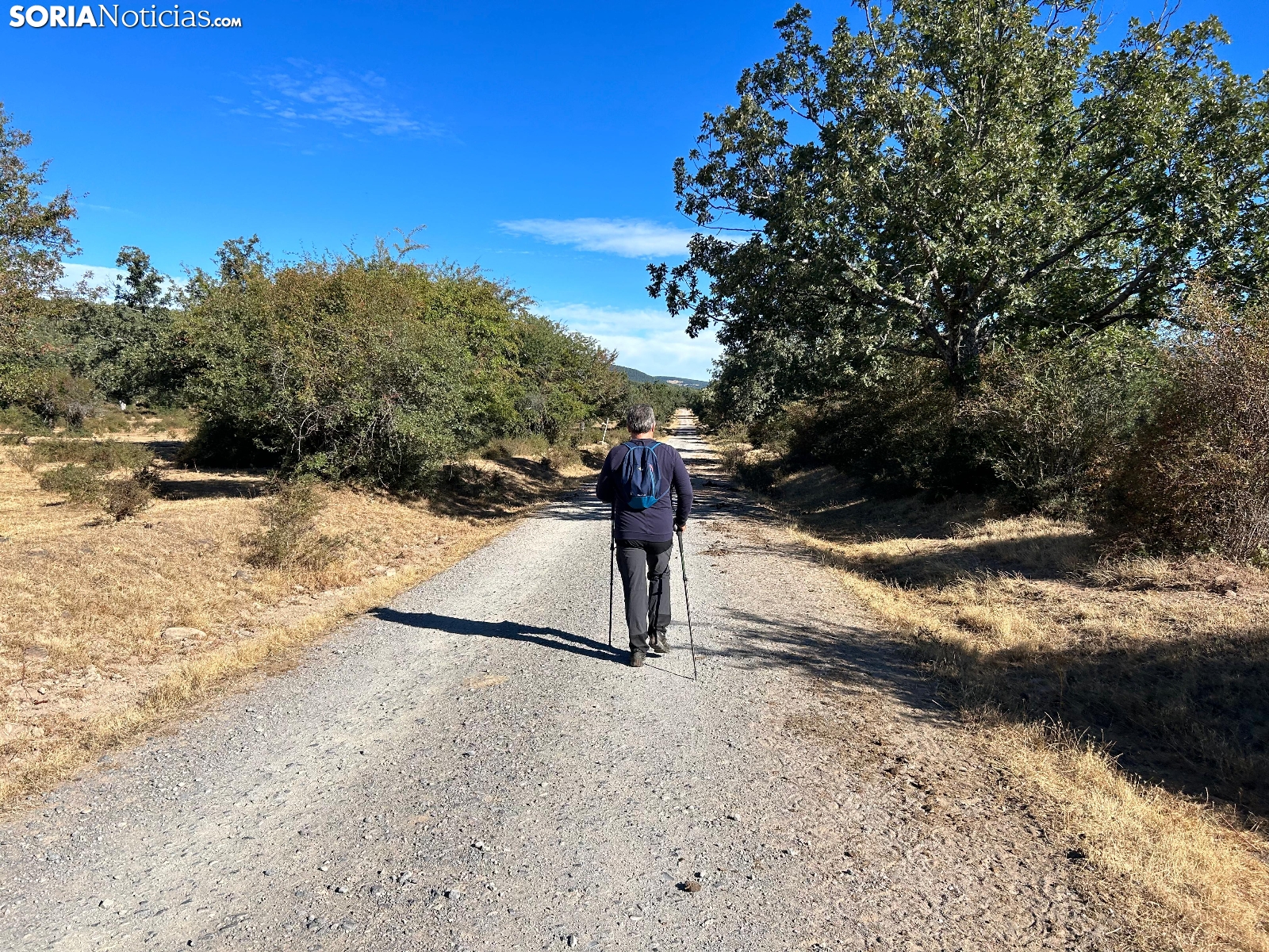 Tras divisar el templo y su entorno (a la izquierda existe un pequeño corral con mesas y sillas de piedra), regresamos sobre nuestros pasos, empleando el camino de la derecha. Volviendo a pasar por la dehesa y por la zona en la que se encuentran las vacas, utilizamos una senda situada a la derecha para encaminarnos hacia el punto limpio de la localidad y hacia su polígono. Si dirigimos nuestra vista hacia la izquierda apreciamos a lo lejos el acebal de Garagüeta. Continuando recto, llegamos hasta San Andrés de Soria, pueblo que atravesamos para llegar a la plaza en la que se sitúa el museo etnográfico. Precisamente, en este lugar se coloca en Navidad uno de los belenes más emblemático de toda la provincia.