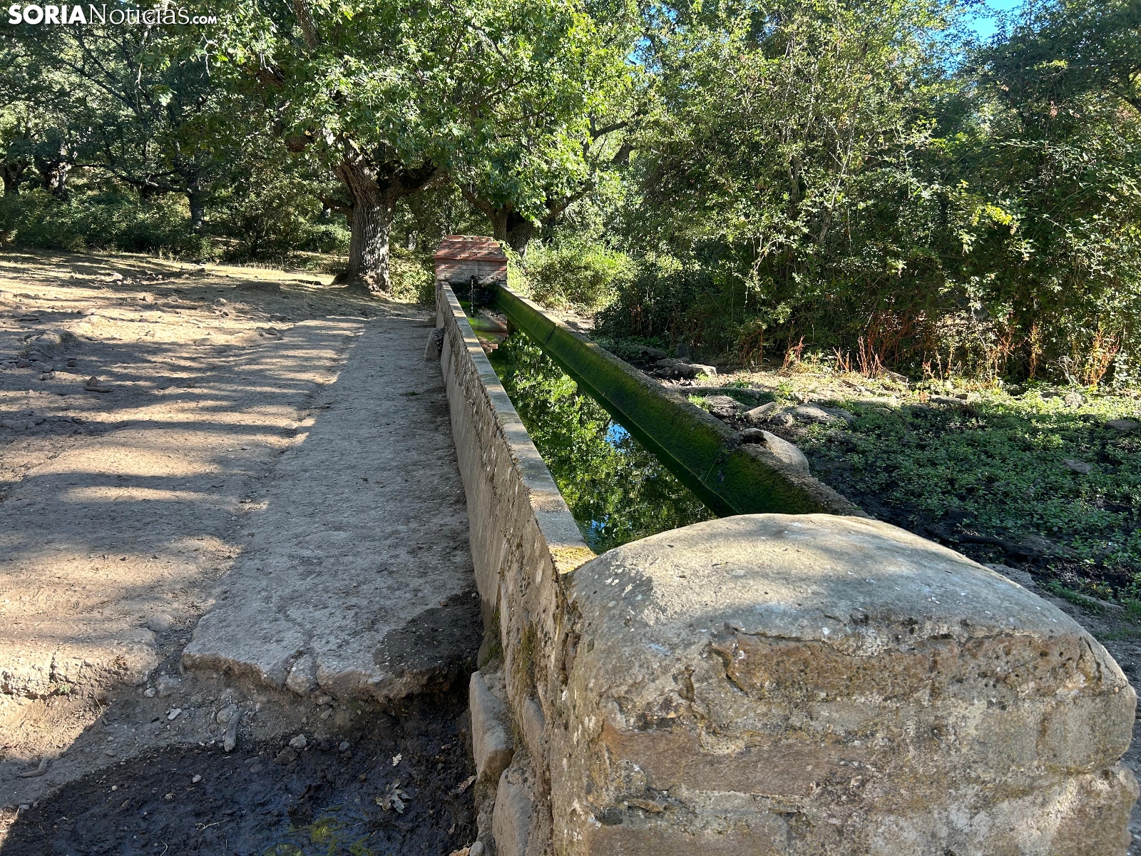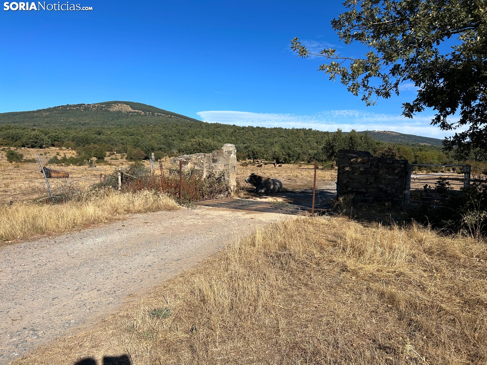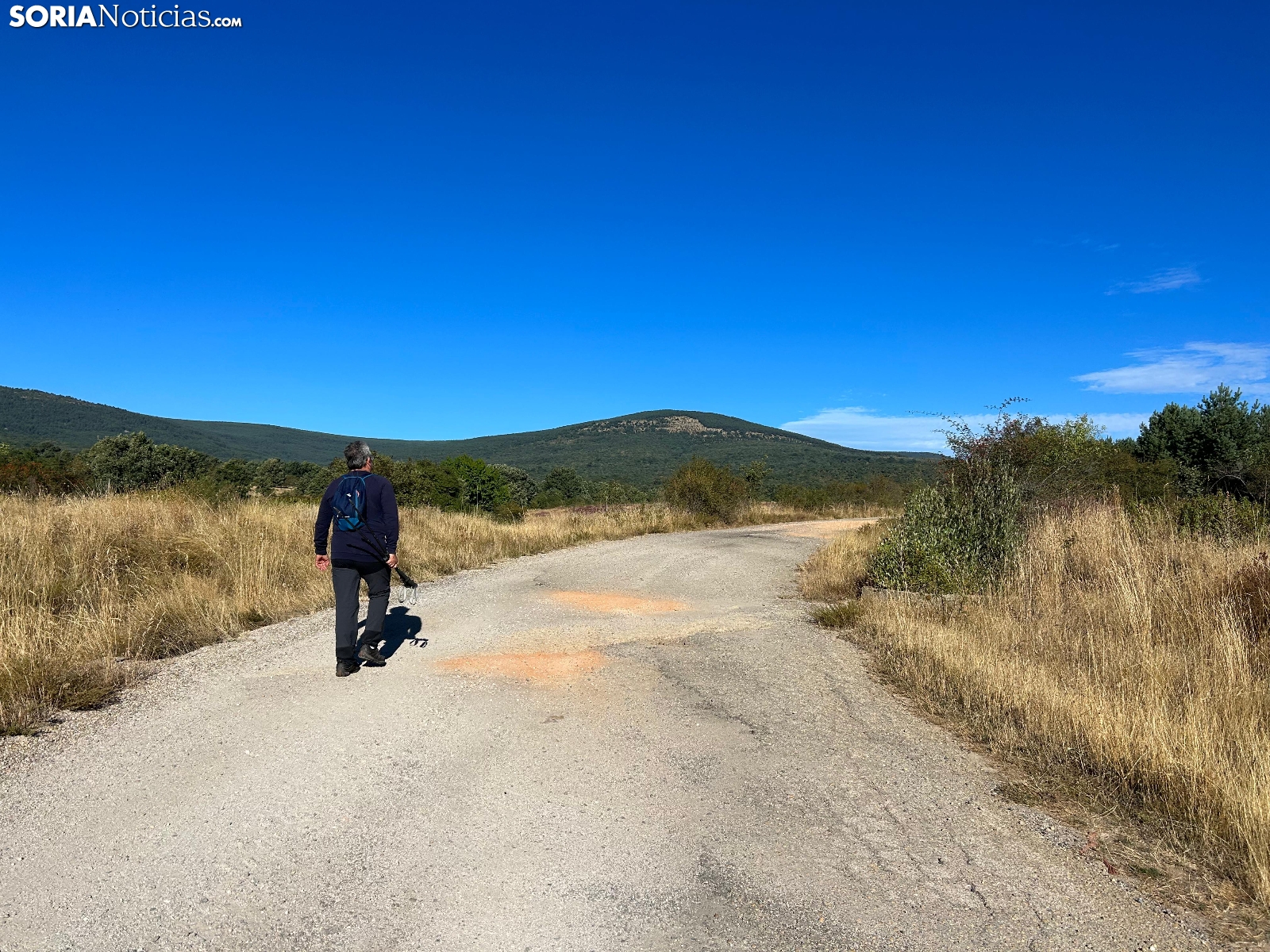 Tras observarla detenidamente, iniciamos la expedición, caminando hacia la carretera de Logroño. Nada más cruzar el puente de piedra, levantado encima del río Tera, utilizamos un camino a la derecha, unos metros antes del cruce que lleva hasta San Andrés de Soria. Durante los primeros metros, pisamos mucha paja, dado que se acaba de cortar la broza. Sin detenernos, seguimos paralelos a la carretera general, escuchando los ladridos de una perrera situada a escasos metros.