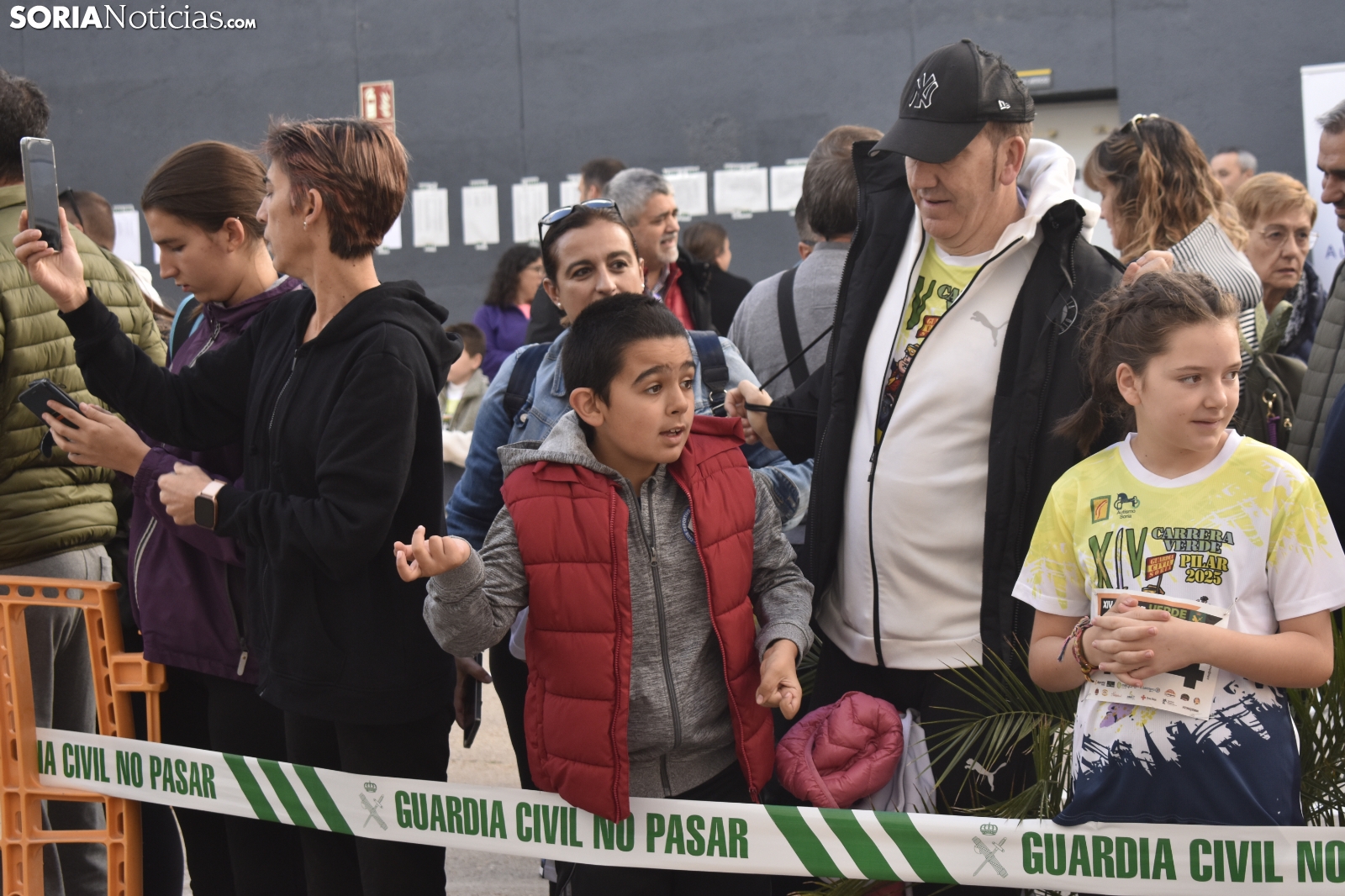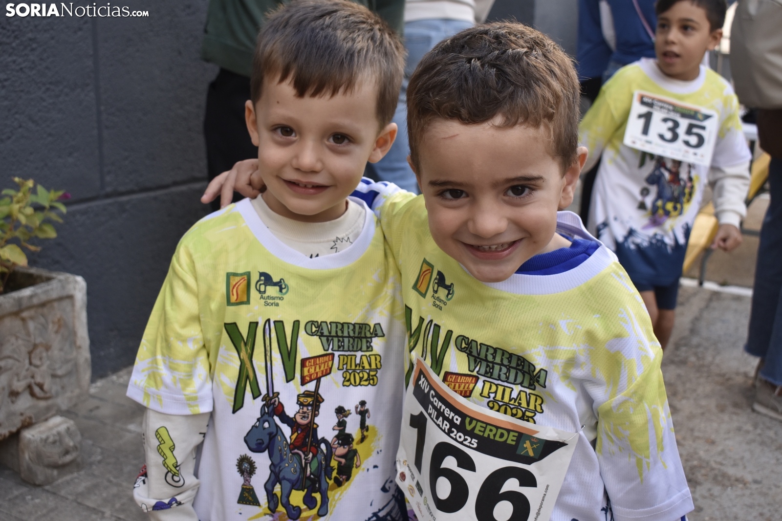 Más de un centenar de jóvenes han participado esta mañana en la XIV Carrera Verde Pilar 2025 en las inmediaciones de la Comandancia de la Guardia Civil en Soria. Ellos han puesto la ilusión y el esfuerzo, sus familiares y amigos los aplausos necesarios para una dosis extra de emoción. Esta prueba se enmarca en los actos de celebración de la Patrona del Cuerpo, la Virgen del Pilar, y mantiene un año más su carácter íntegramente benéfico. En esta edición, todos los fondos recaudados se destinarán a apoyar la labor de la Asociación Autismo de Soria, reforzando el compromiso social del evento.