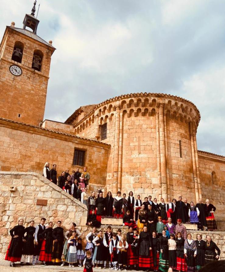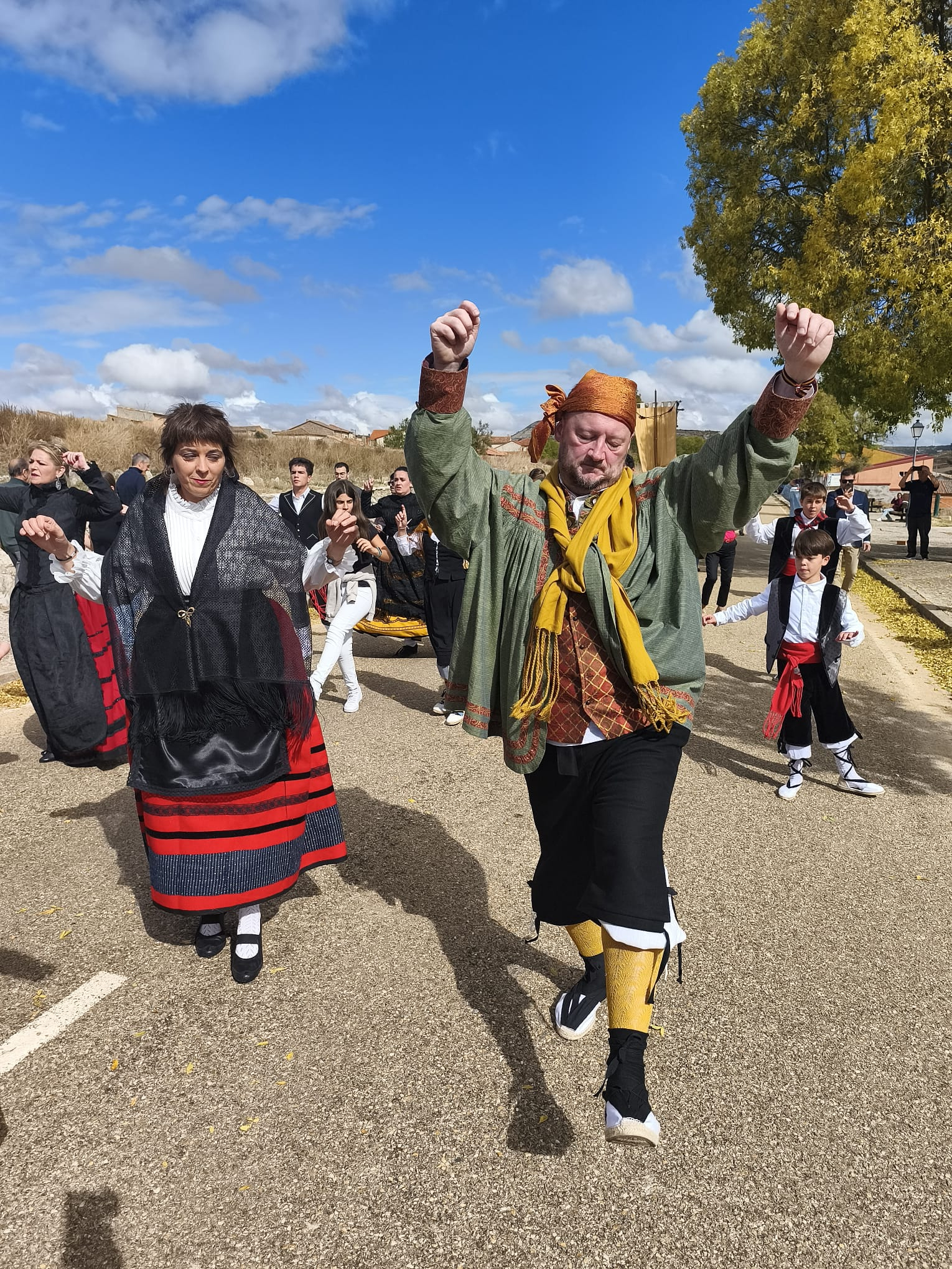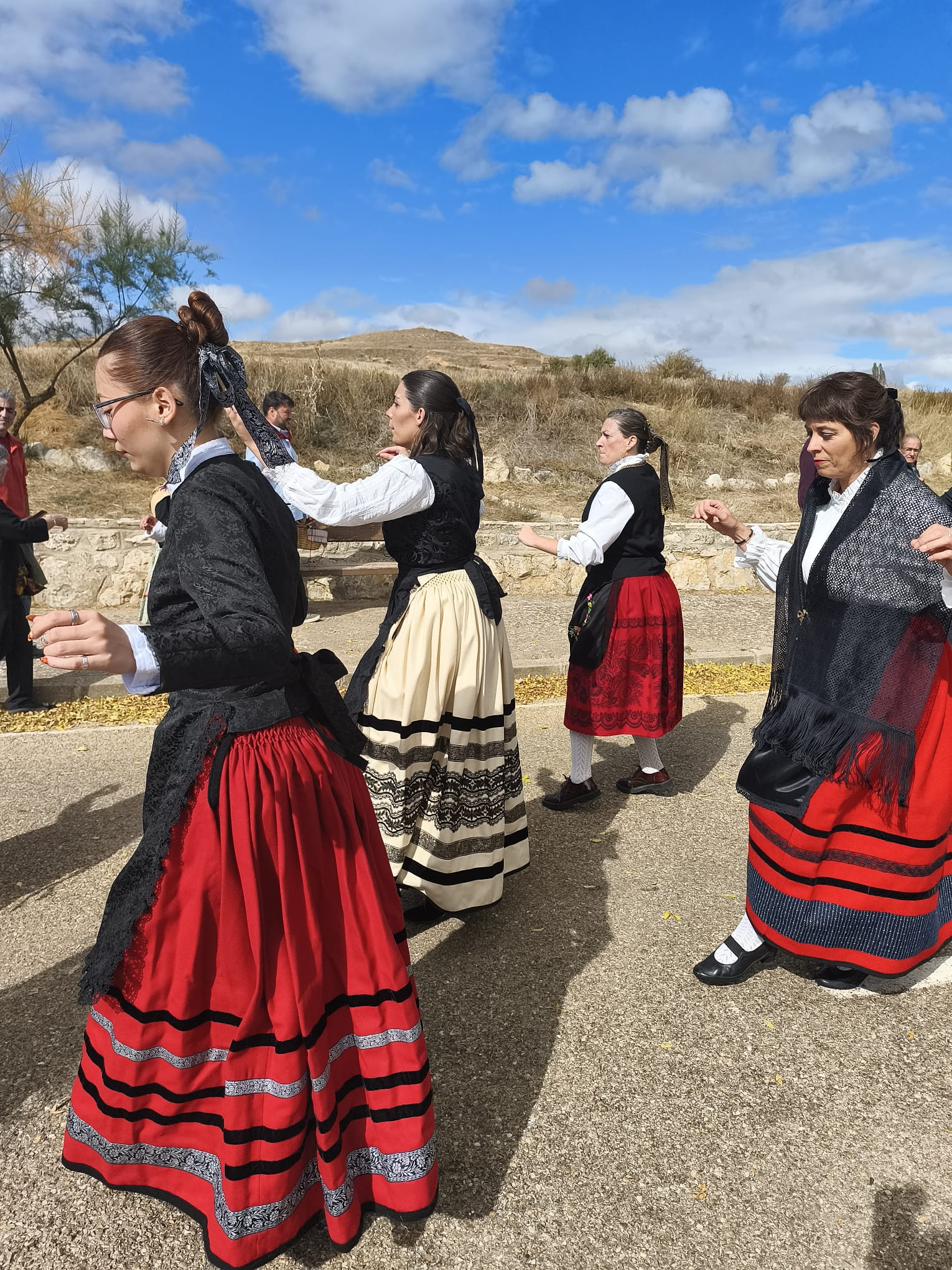 La Virgen del Pilar no solo se celebra en Zaragoza, en la provincia de Soria existe un pueblo que guarda ricas tradiciones en su honor. Este domingo, 66 personas han bailado la jota durante la procesión posterior a la misa de difuntos. La danza guarda una particularidad, se realiza de espaldas para no perder la cara a la patrona del pueblo.