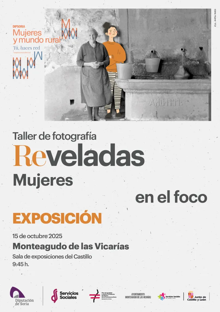 El eje central de la jornada será la inauguración de la exposición fotográfica “Reveladas, mujeres en el foco”. Este proyecto, dirigido por la fotógrafa soriana Blanca Almazán, es el resultado de un proceso participativo desarrollado a través de varios talleres en diversas localidades de la provincia.