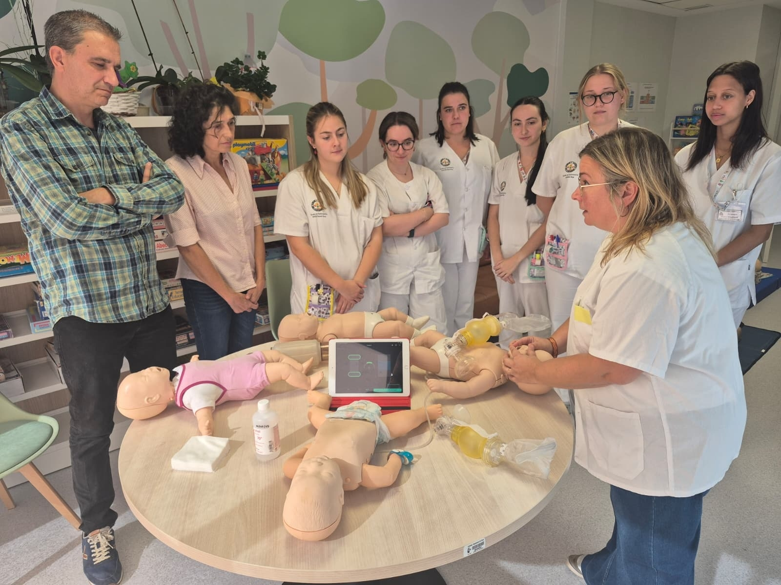 Las actividades se han adaptado a diferentes públicos. En el Servicio de Pediatría se ha impartido un taller específico para padres de niños con patologías cardíacas. “Les enseñamos a hacer bien la ventilación boca a boca, con control de calidad del masaje al lactante y a niños más mayores, y la colocación del desfibrilador”, ha explicado la jefa del Servicio, Marisa Serrano.